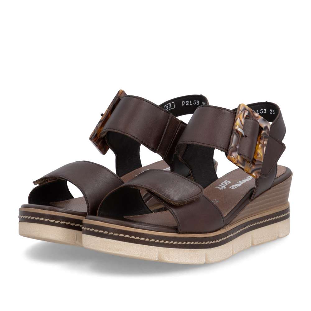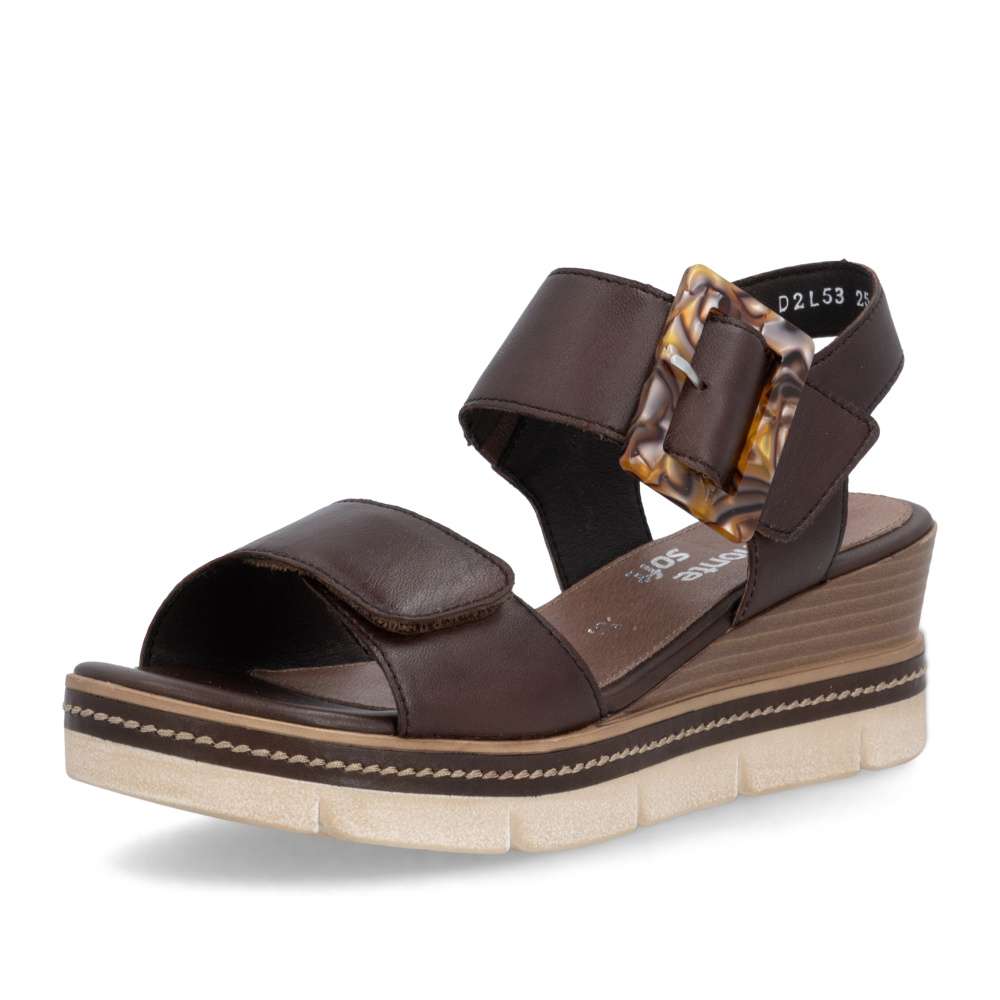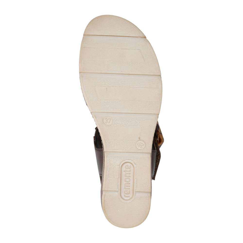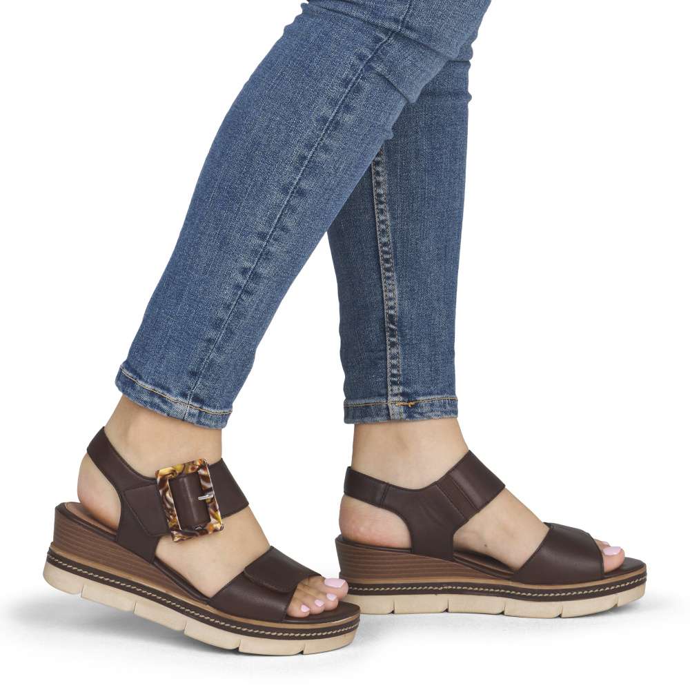 Obuv REMONTE představuje prémiovou řadu značky RIEKER, která se vyznačuje vysokou kvalitou použitých materiálů a precizním zpracováním. Tyto sandály v hnědé kožené variantě představují dokonalou kombinaci nadčasového stylu a maximálního komfortu při nošení. Pásky jsou pečlivě navrženy s důrazem na funkčnost i estetiku – opatřeny praktickými suchými zipy, které umožňují rychlé nazouvání a snadné přizpůsobení obuvi tvaru chodidla, čímž se zaručuje stabilita a komfort během celého dne. Výrazná spona umístěná u kotníku působí jako stylový detail, který okamžitě upoutá pozornost a dodává sandálům jedinečný charakter. Kožená stélka poskytuje měkký a příjemný kontakt s chodidlem, čímž zajišťuje pohodlí i při celodenním nošení. Dokonalý komfort při chůzi poskytne stabilní podešev, která svým atraktivním provedením s jemnými detaily podtrhuje charakter sandálů a činí z nich stylový doplněk k jakémukoli letnímu outfitu.