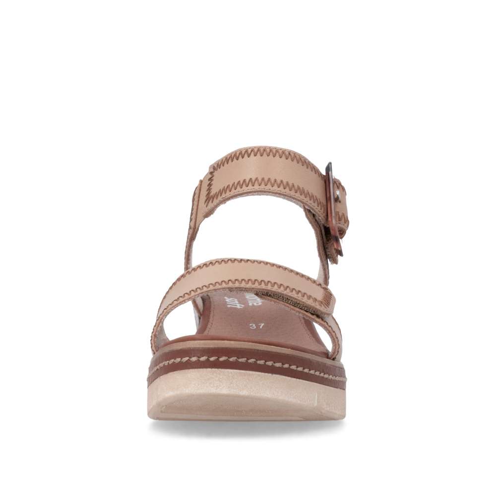 Obuv REMONTE představuje prémiovou řadu značky RIEKER, která se vyznačuje vysokou kvalitou použitých materiálů a precizním zpracováním. Tyto sandály v hnědé kožené variantě představují dokonalou kombinaci nadčasového stylu a maximálního komfortu při nošení. Pásky jsou pečlivě navrženy s důrazem na funkčnost i estetiku – opatřeny praktickými suchými zipy, které umožňují rychlé nazouvání a snadné přizpůsobení obuvi tvaru chodidla, čímž se zaručuje stabilita a komfort během celého dne. Výrazná spona umístěná u kotníku a linie prošitého vzoru působí jako stylový detail, který okamžitě upoutá pozornost a dodává sandálům jedinečný charakter. Kožená stélka poskytuje měkký a příjemný kontakt s chodidlem, čímž zajišťuje pohodlí i při celodenním nošení. Dokonalý komfort při chůzi poskytne stabilní podešev, která svým atraktivním provedením s jemnými detaily podtrhuje charakter sandálů a činí z nich stylový doplněk k jakémukoli letnímu outfitu. Tento model pojí módní design s praktickými vlastnostmi, takže vaše nohy budou vypadat dobře a zároveň se budete cítit pohodlně během celého dne.