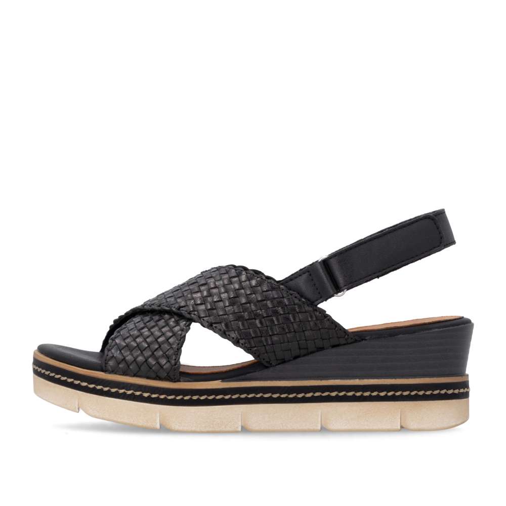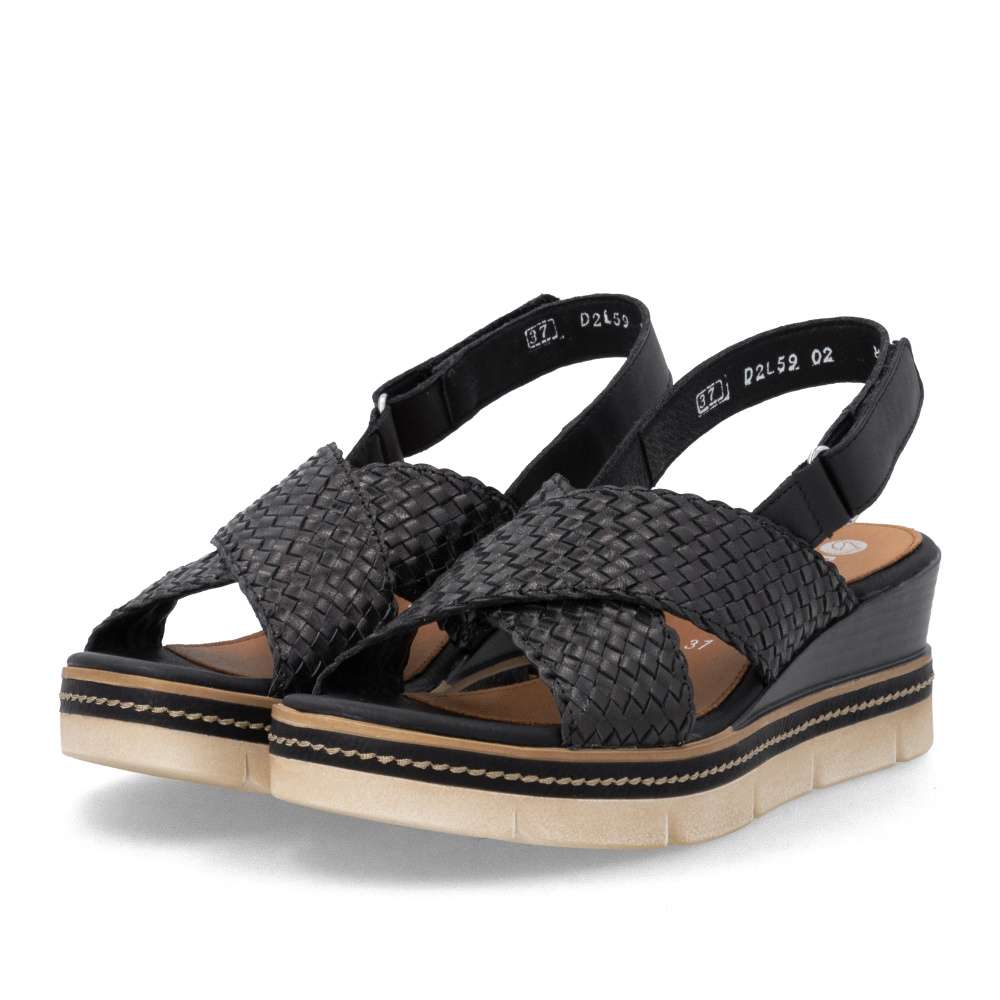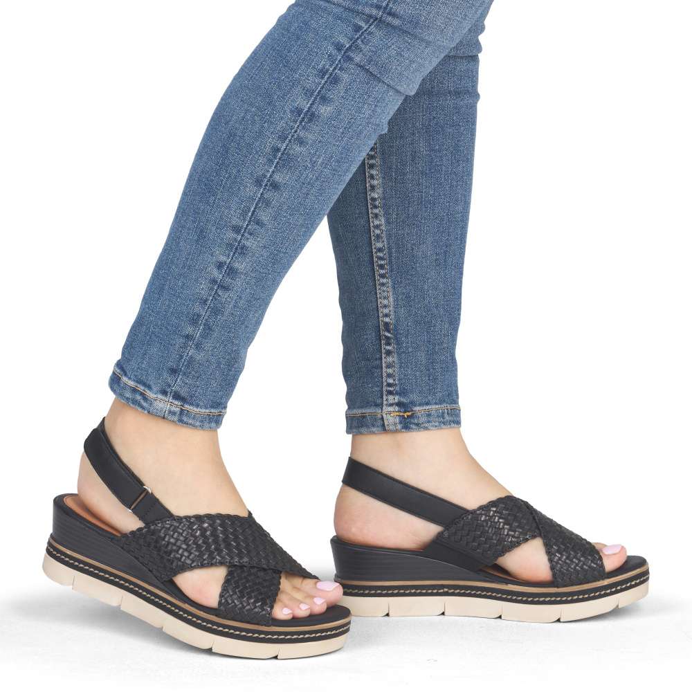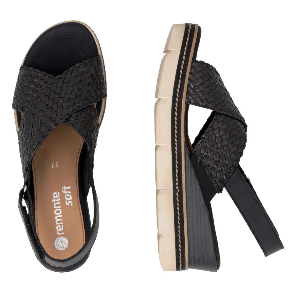 Obuv REMONTE představuje prémiovou řadu značky RIEKER, která se vyznačuje vysokou kvalitou použitých materiálů a precizním zpracováním. Tyto dámské sandály představují ideální kombinaci módního designu a maximálního komfortu, který ocení každá žena během teplých letních dnů. Přední část sandál upoutá pozornost svým efektním proplétaným vzorem, který dodává obuvi zajímavou strukturu. Dva přeložené pásky přes nárt jsou navrženy tak, aby nohu jemně obeply a vytvořily stabilní, pohodlný pocit při každém kroku. Jejich design navíc krásně zvýrazní přirozený tvar chodidla a dodá celkovému vzhledu ženskost. Zadní pásek je vyhotoven v hladkém provedení a vybaven praktickým zapínáním na suchý zip, které výrazně usnadňuje obouvání. Díky této funkci si můžete sandály snadno upravit podle potřeby a dosáhnout přesného přizpůsobení, které vám zajistí komfort během celého dne. Kožená stélka poskytuje příjemné měkké došlapy a skvělou prodyšnost, což je velkou výhodou zejména v horkých letních dnech. Moderní provedení podešve sandálům dodává trendy vzhled a její praktická konstrukce poskytuje potřebnou stabilitu při chůzi. Tyto sandály jsou vhodné pro každodenní nošení, procházky po městě, dovolené či volnočasové aktivity, jsou dokonalým ztělesněním letní elegance a pohodlí, které oceníte při každém kroku.