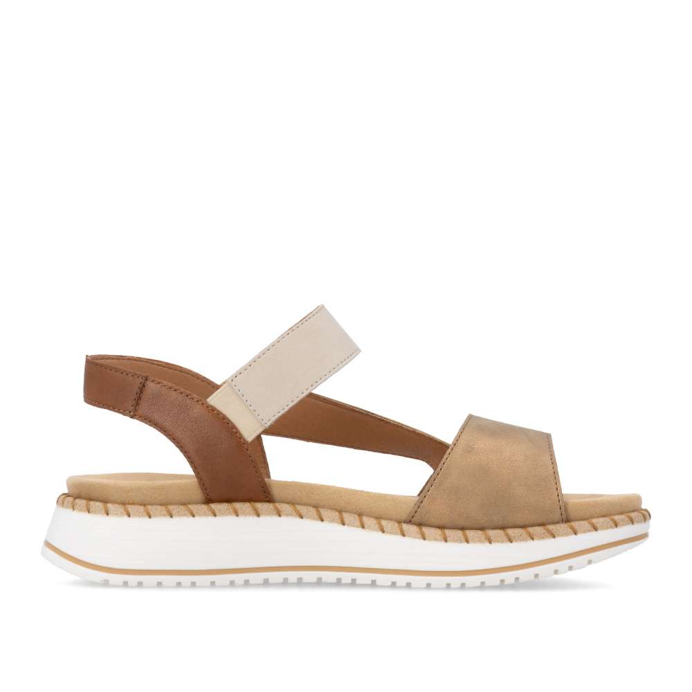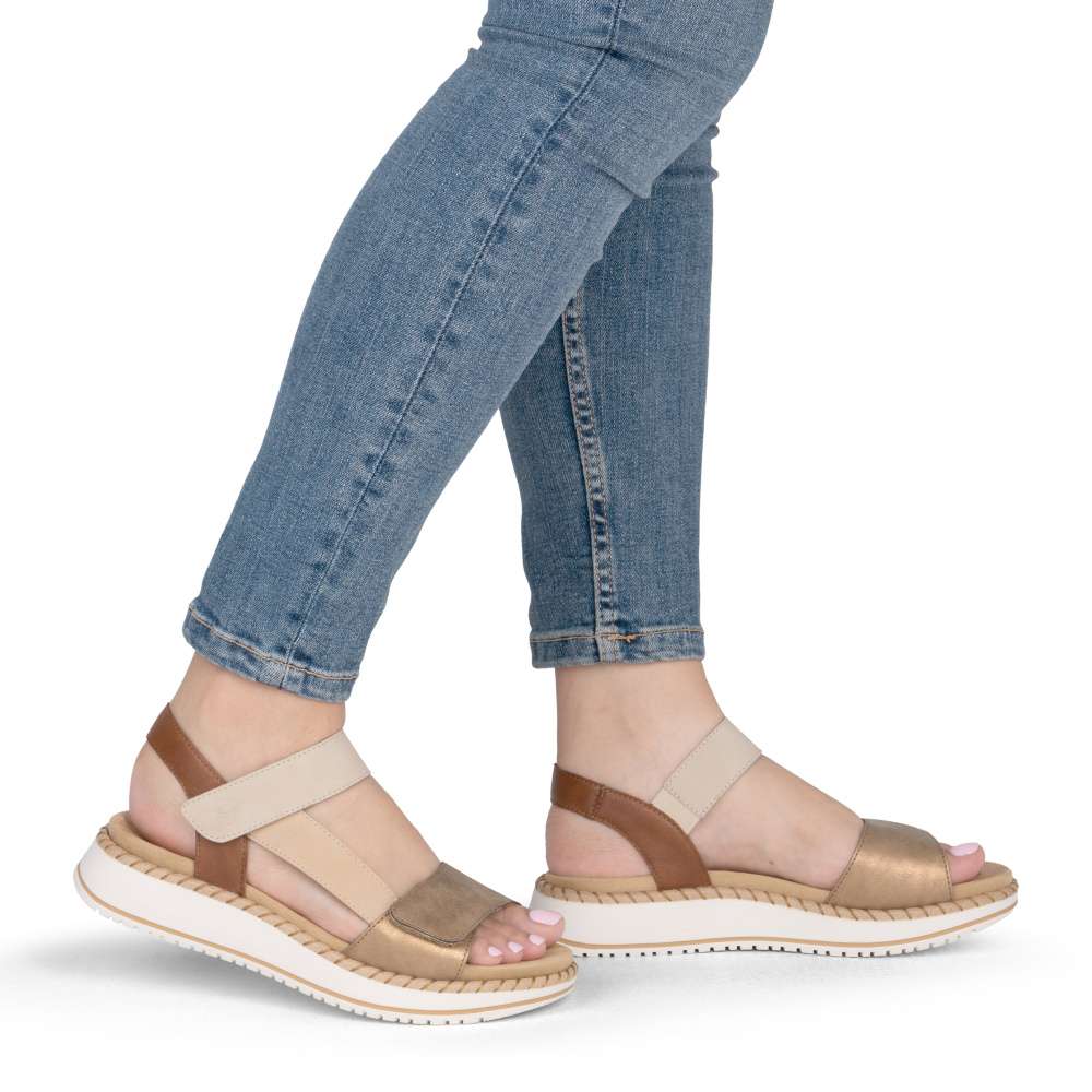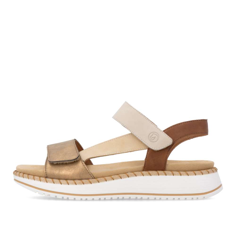 Obuv REMONTE představuje prémiovou řadu značky RIEKER, která se vyznačuje vysokou kvalitou použitých materiálů a precizním zpracováním. Unikátní vzhled těchto sandálů je vytvořen efektně poskládanými pásky, které kombinují barevné odstíny, čímž vzniká stylový design. Pásky nejsou jen dekorativní – jsou vybaveny praktickými suchými zipy, které umožňují snadné a přesné přizpůsobení obuvi tvaru nohy, čímž zajišťují maximální pohodlí a stabilitu při každém kroku. Textilní stélka je tvarovaná a vyjímatelná, což zaručuje optimální komfort i při celodenním nošení a usnadňuje údržbu obuvi. Detailně propracovaná podešev s barevnými liniemi a výrazným prošitím nejenže vizuálně dotváří celkový styl sandálů, ale také podporuje přirozený pohyb chodidla a zvyšuje stabilitu při chůzi. Tento model spojuje módní vzhled, komfort a promyšlené detaily, díky čemuž se stává nejen praktickým doplňkem, ale také výrazným stylovým prvkem vašeho outfitu.