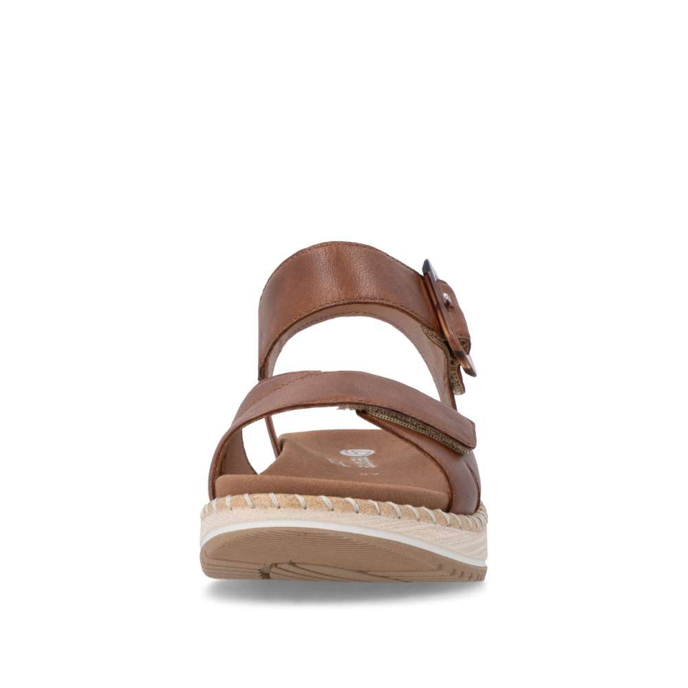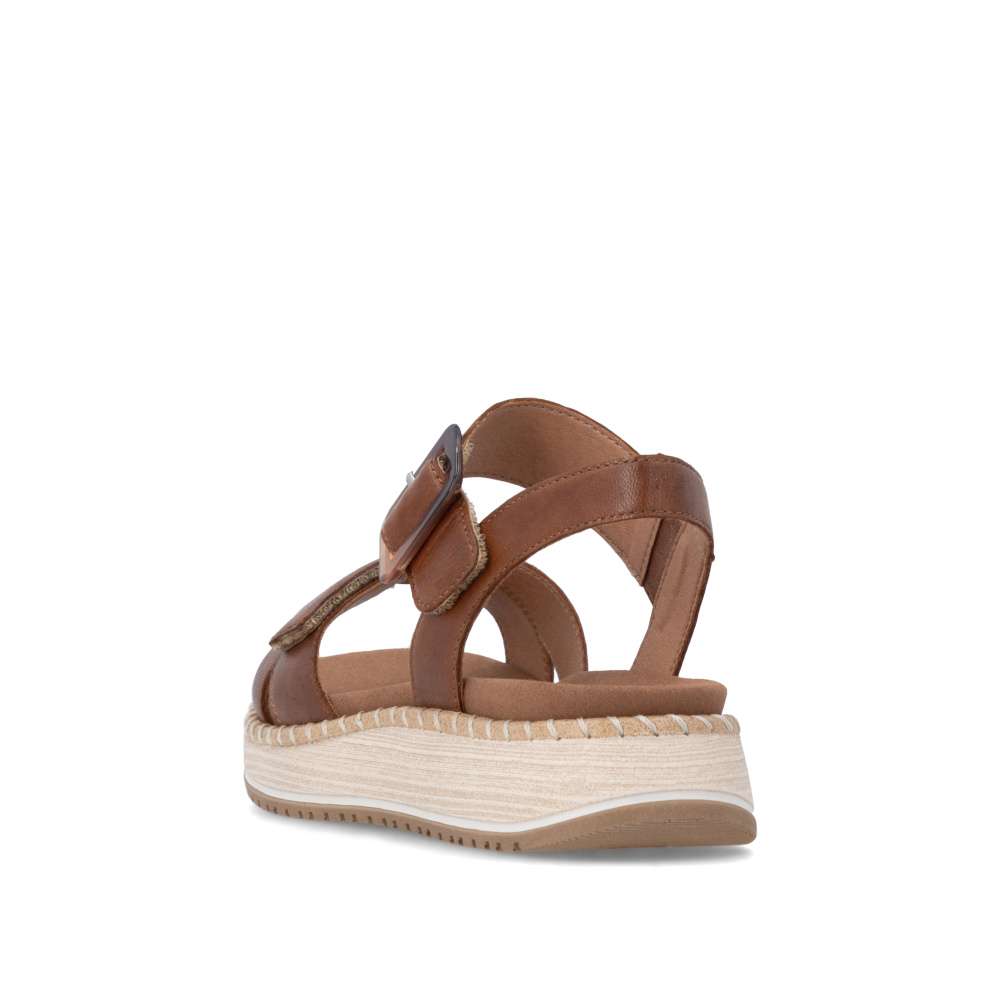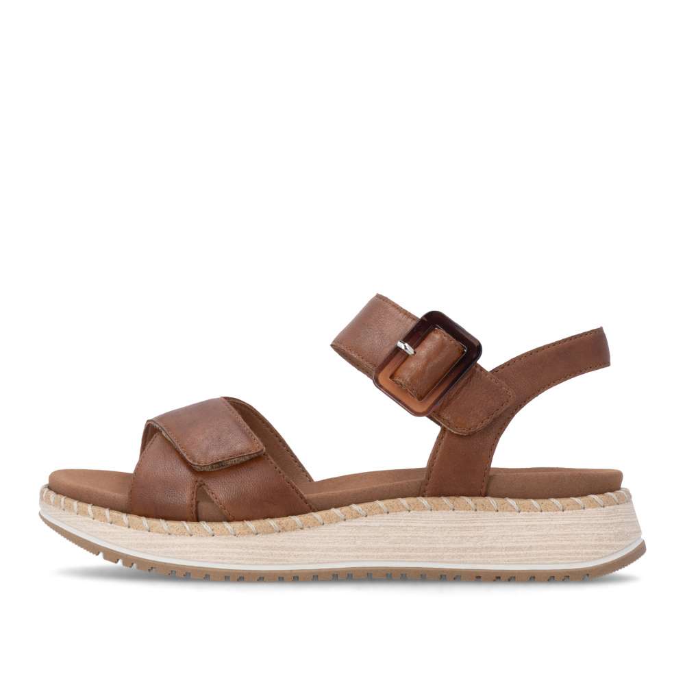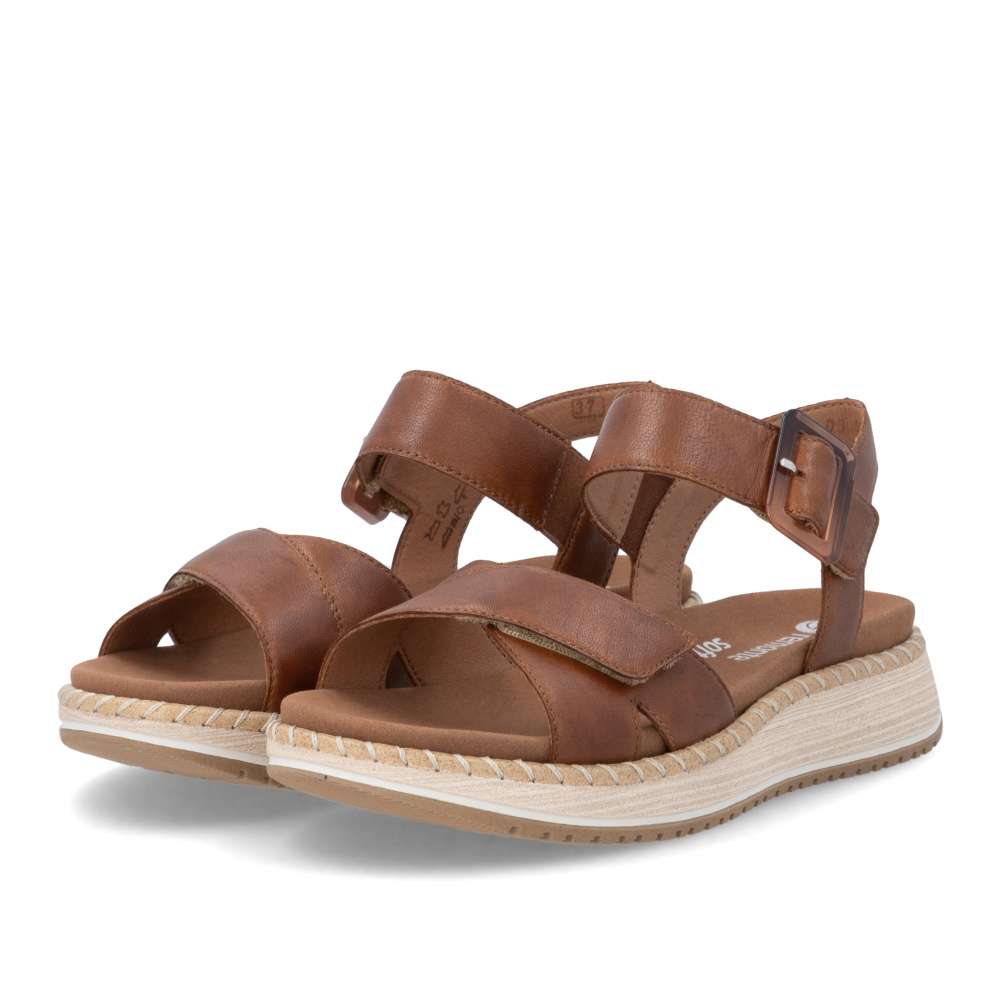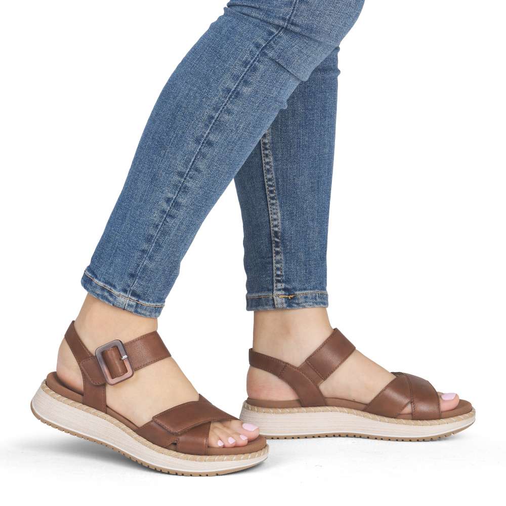 Obuv REMONTE představuje prémiovou řadu značky RIEKER, která se vyznačuje vysokou kvalitou použitých materiálů a precizním zpracováním. Dámské sandály v decentním hnědém provedení s koženým svrškem spojují módní design s praktickými a promyšlenými detaily, které zaručují pohodlí i styl při každodenním nošení. Pásky jsou opatřeny suchými zipy, které umožňují snadné a rychlé nastavení obuvi podle tvaru nohy. Pásek přes nárt je vybaven gumičkou, která zvyšuje pohodlí a přizpůsobivost, a dekoruje jej výrazná spona, která dodává sandálům módní charakter. Textilní stélka je širšího střihu a vyjímatelná, což poskytuje optimální oporu chodidlu a snižuje únavu při delším nošení. Vyšší podešev je precizně zpracovaná, barevně kombinovaná a doplněná výrazným lemem šití, což nejen zvýrazňuje celkový vizuální dojem, ale také zlepšuje stabilitu a pohodlí při chůzi. Tyto sandály jsou ideální volbou pro moderní ženu, která hledá spojení stylového vzhledu a praktičnosti. Perfektně se hodí k různým outfitům – od ležérního přes elegantní až po letní volnočasový styl – a díky kvalitnímu zpracování a promyšleným detailům poskytují komfort a podporu během celého dne.