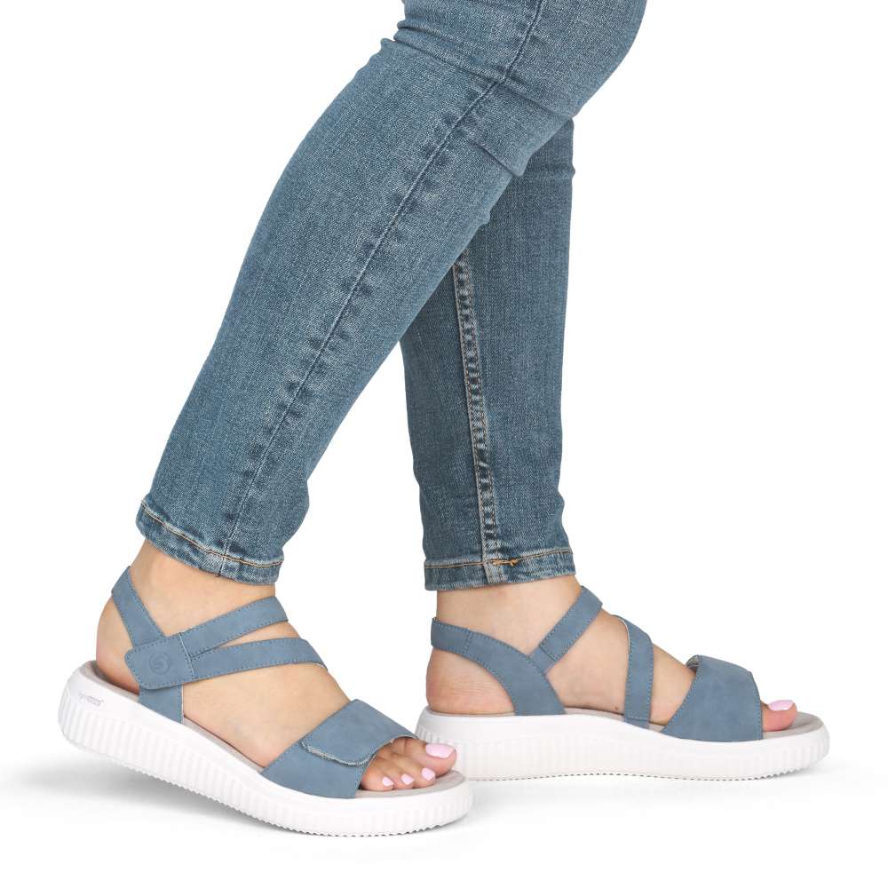 Obuv REMONTE představuje prémiovou řadu značky RIEKER, která se vyznačuje vysokou kvalitou použitých materiálů a precizním zpracováním. Dámské sandály v mladistvém modrém provedení s koženým svrškem spojují módní design s praktickými a promyšlenými detaily, které zaručují pohodlí i styl při každodenním nošení. Precizně poskládané pásky jsou opatřeny suchými zipy, které umožňují snadné nastavení obuvi podle tvaru nohy a pásek přes nárt je navíc vybaven gumičkou, která zvyšuje přizpůsobivost. Textilní stélka je příjemná na dotek a podešev poskytne dokonalou oporu při chůzi. Tyto sandály perfektně zapadnou do vašeho každodenního městského outfitu, ale stejně dobře vyniknou i v pracovním prostředí, kde oceníte jejich pohodlí a upravený vzhled.