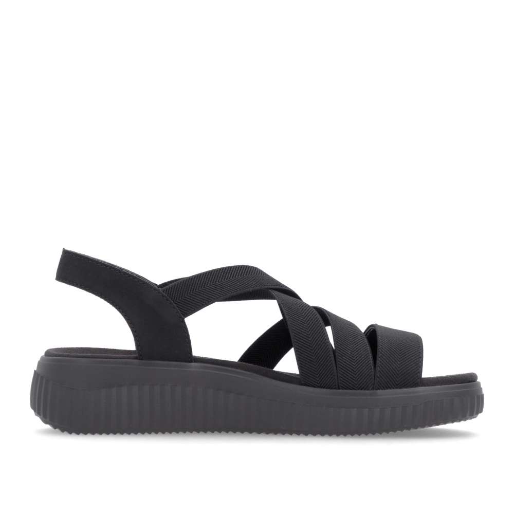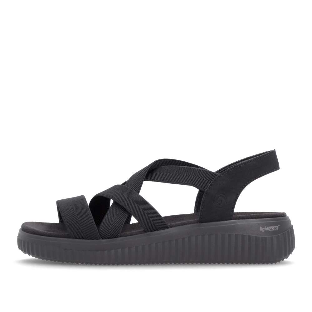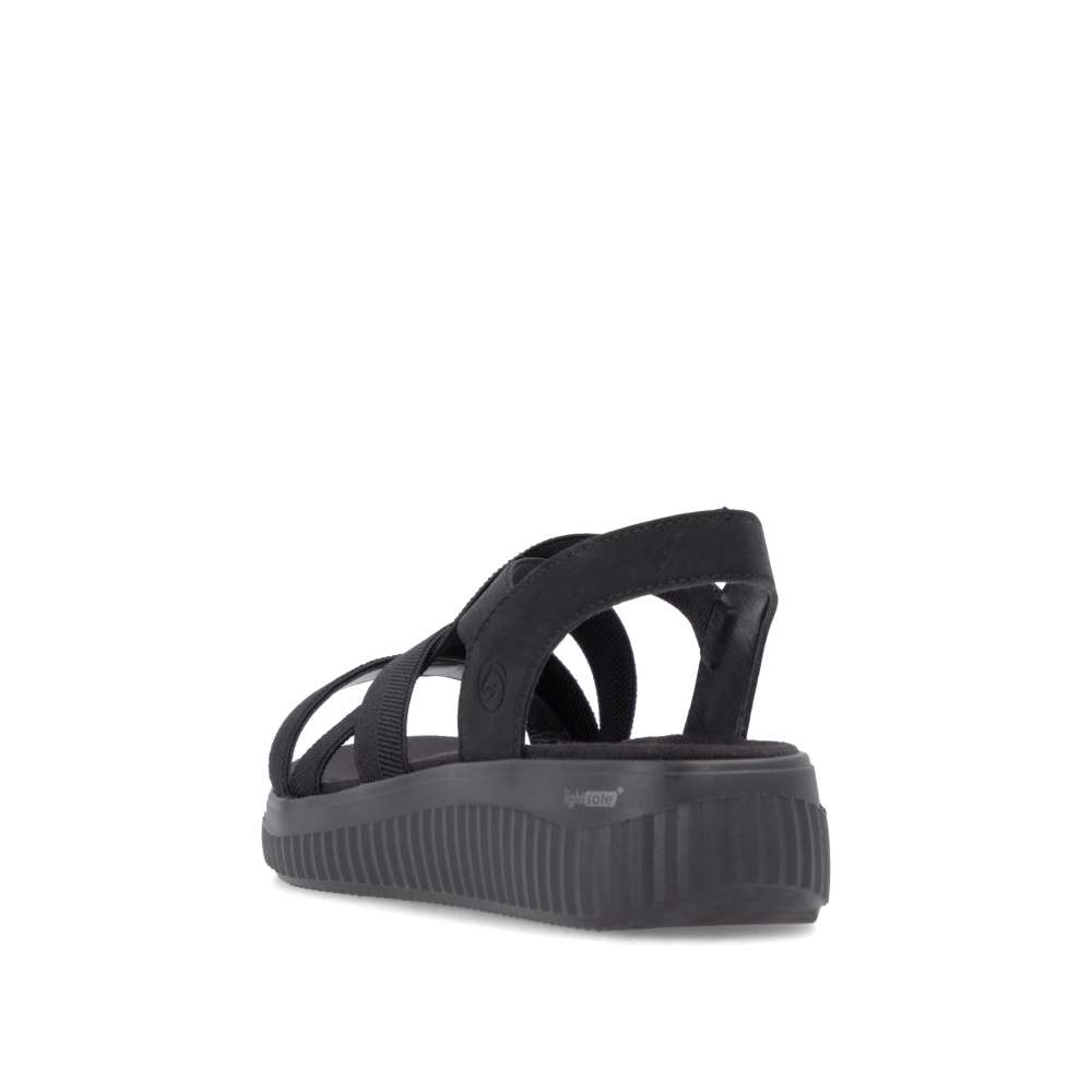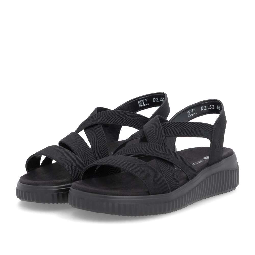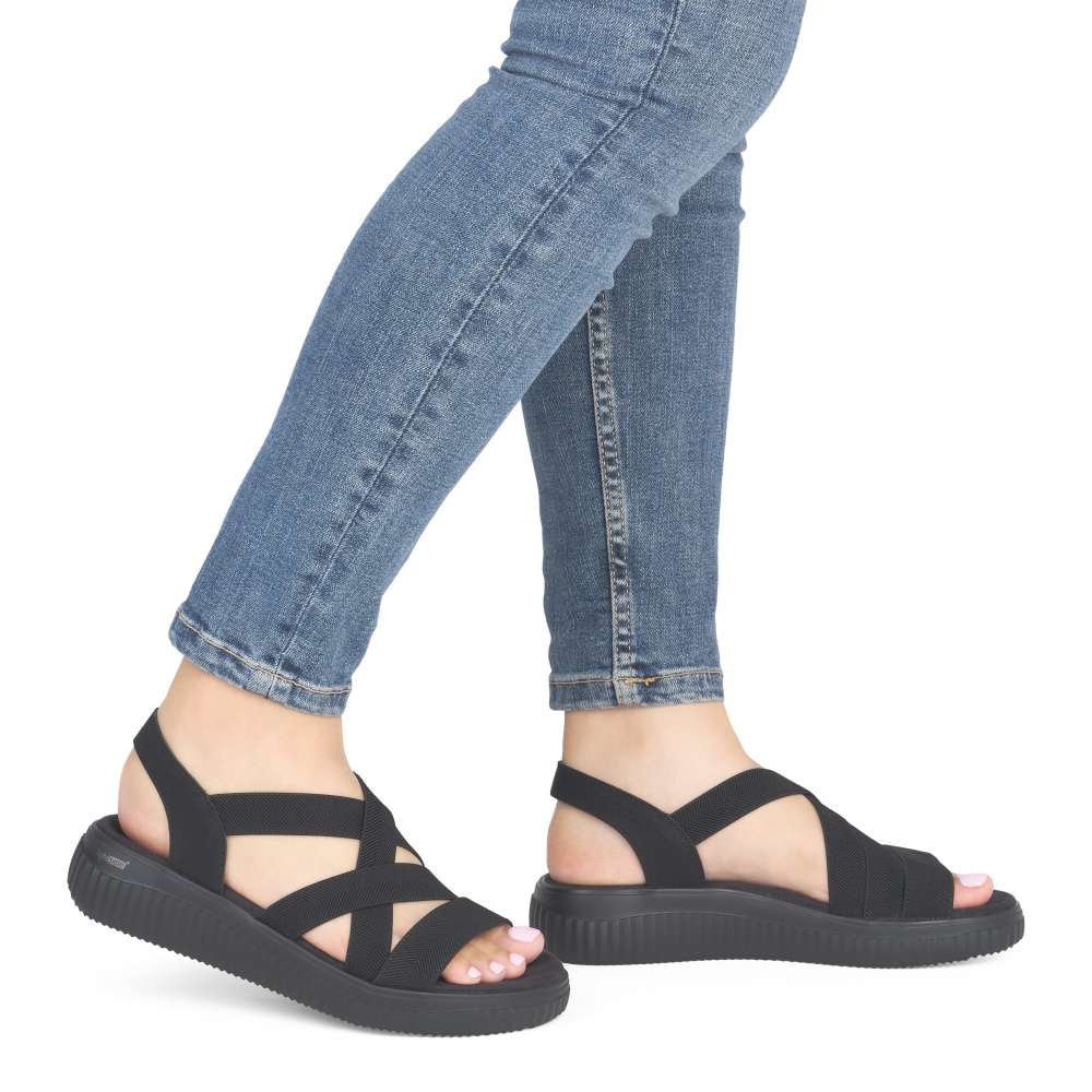 Obuv REMONTE představuje prémiovou řadu značky RIEKER, která se vyznačuje vysokou kvalitou použitých materiálů a precizním zpracováním. Tyto sandály vás zaujmou svým promyšleným provedením, ve kterém se pojí komfort, praktičnost a moderní minimalismus. Precizně poskládané pružné pásky v černé barvě se dokonale přizpůsobí tvaru chodidla a poskytují výjimečné pohodlí i při celodenním nošení. Jejich elastická konstrukce usnadňuje obouvání a zajišťuje, že obuv pevně drží na noze bez nepříjemného tlačení. Zadní pásek je naopak pevný, aby poskytl stabilitu a jistotu při každém kroku. Textilní stélka je příjemná na dotek a zvyšuje komfort nošení. Vyšší podešev dodává sandálům nejen moderní vzhled, ale zároveň zlepšuje celkovou stabilitu při chůzi. Díky tomu jsou tyto sandály výbornou volbou pro každý den – ať už do města, do práce nebo na volnočasové aktivity. Stylové, pohodlné a univerzální – přesně takové jsou tyto sandály, které vám poskytnou ideální kombinaci funkčnosti a módního vzhledu.