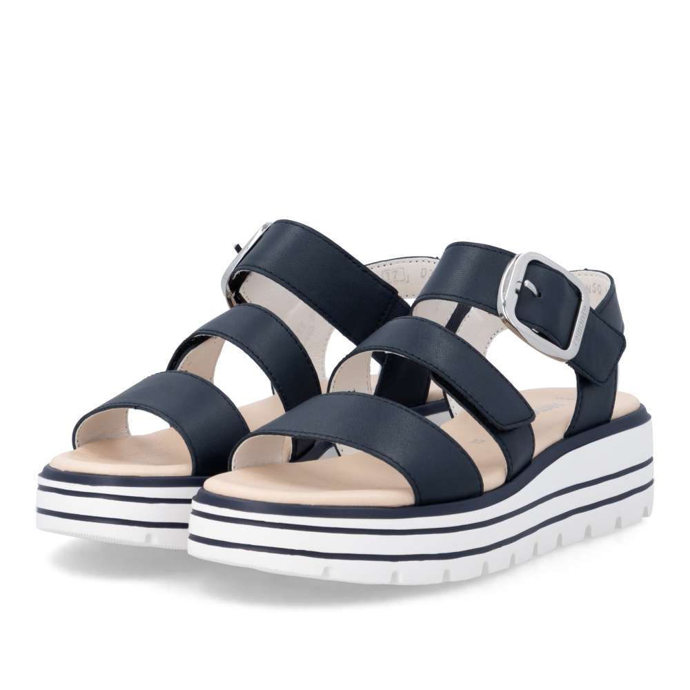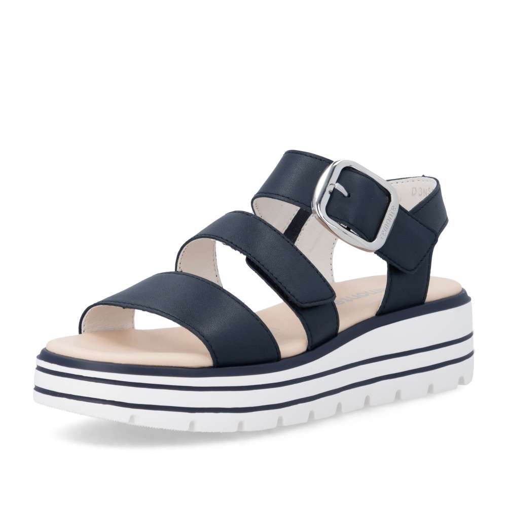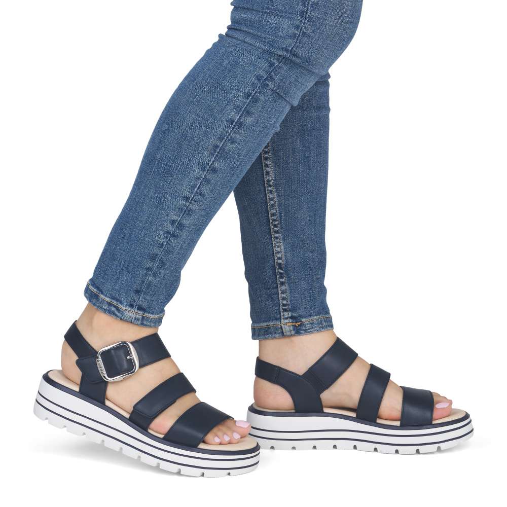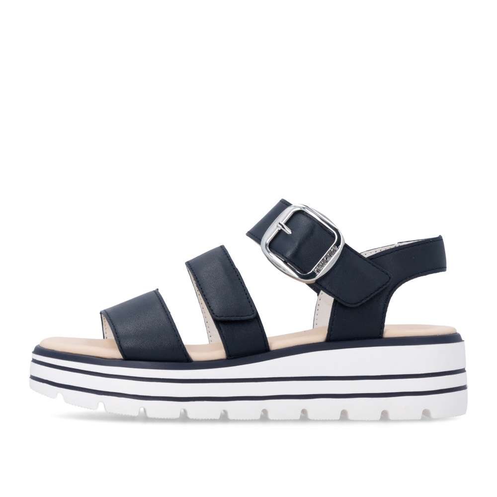 Obuv REMONTE představuje prémiovou řadu značky RIEKER, která se vyznačuje vysokou kvalitou použitých materiálů a precizním zpracováním. Tyto kožené sandály jsou navrženy pro ženy, které hledají maximální pohodlí ve spojení s precizním zpracováním. Řemínky obuvi vytvářejí propracovaný a harmonický design, který působí nadčasově a zároveň moderním dojmem. Pásek přes prsty je pevný, aby zajistil stabilitu při každém kroku, zatímco další dva pásky se suchým zipem umožňují individuální nastavení přesně podle tvaru vaší nohy. Dekorační spona stříbrné barvy působí výrazně a dodává sandálům stylový akcent. Kožená stélka vás příjemně překvapí svojí pohodlností a vyšší podešev nejenže zajišťuje jistotu, ale dodává sandálům moderní vzhled. Kvalitní zpracování, funkční řešení a působivé detaily dělají z tohoto modelu skvělého společníka na letní dny – ať už se chystáte do práce, na pochůzky nebo na procházku městem.