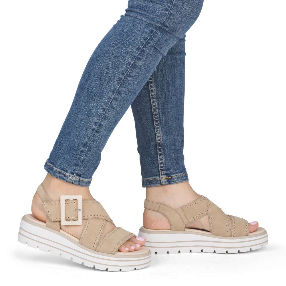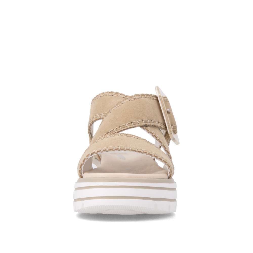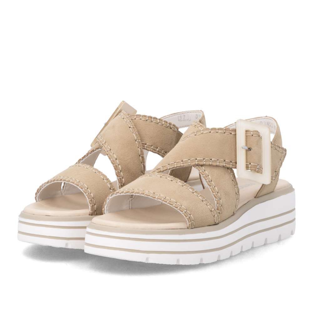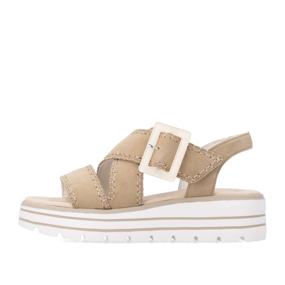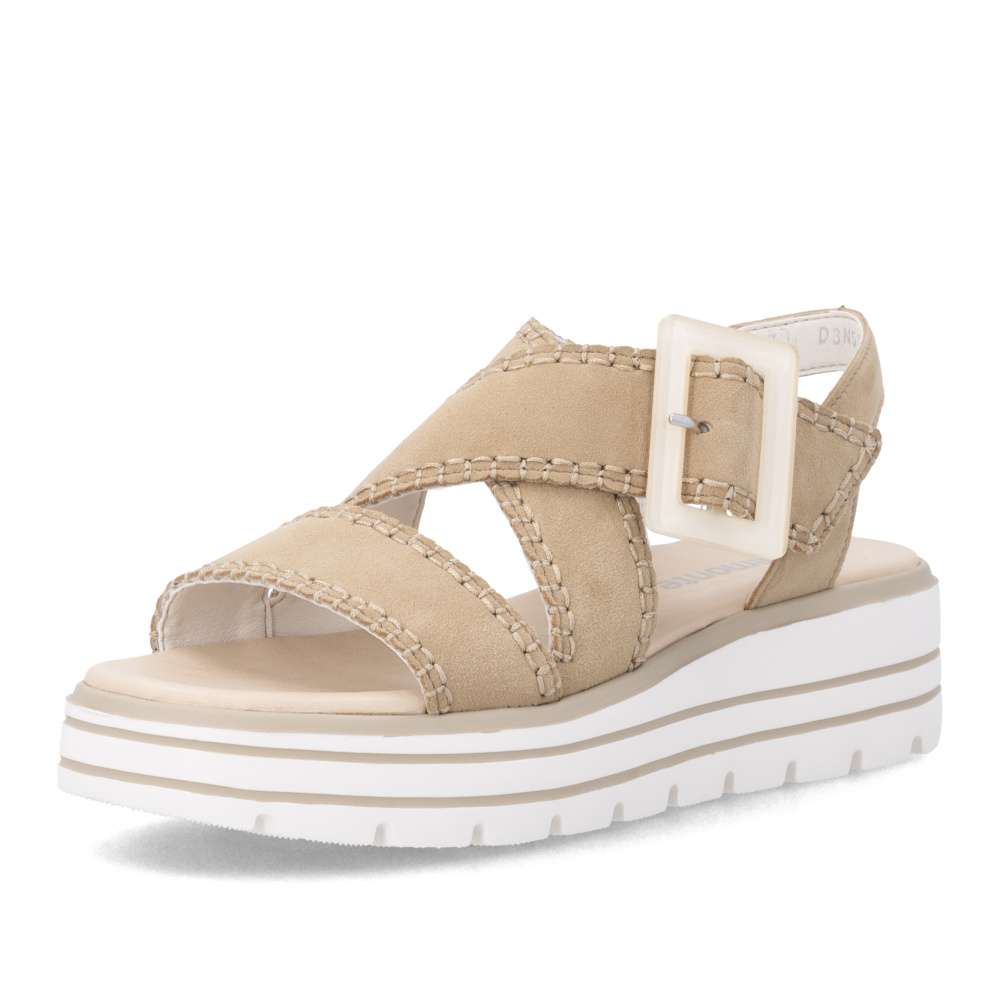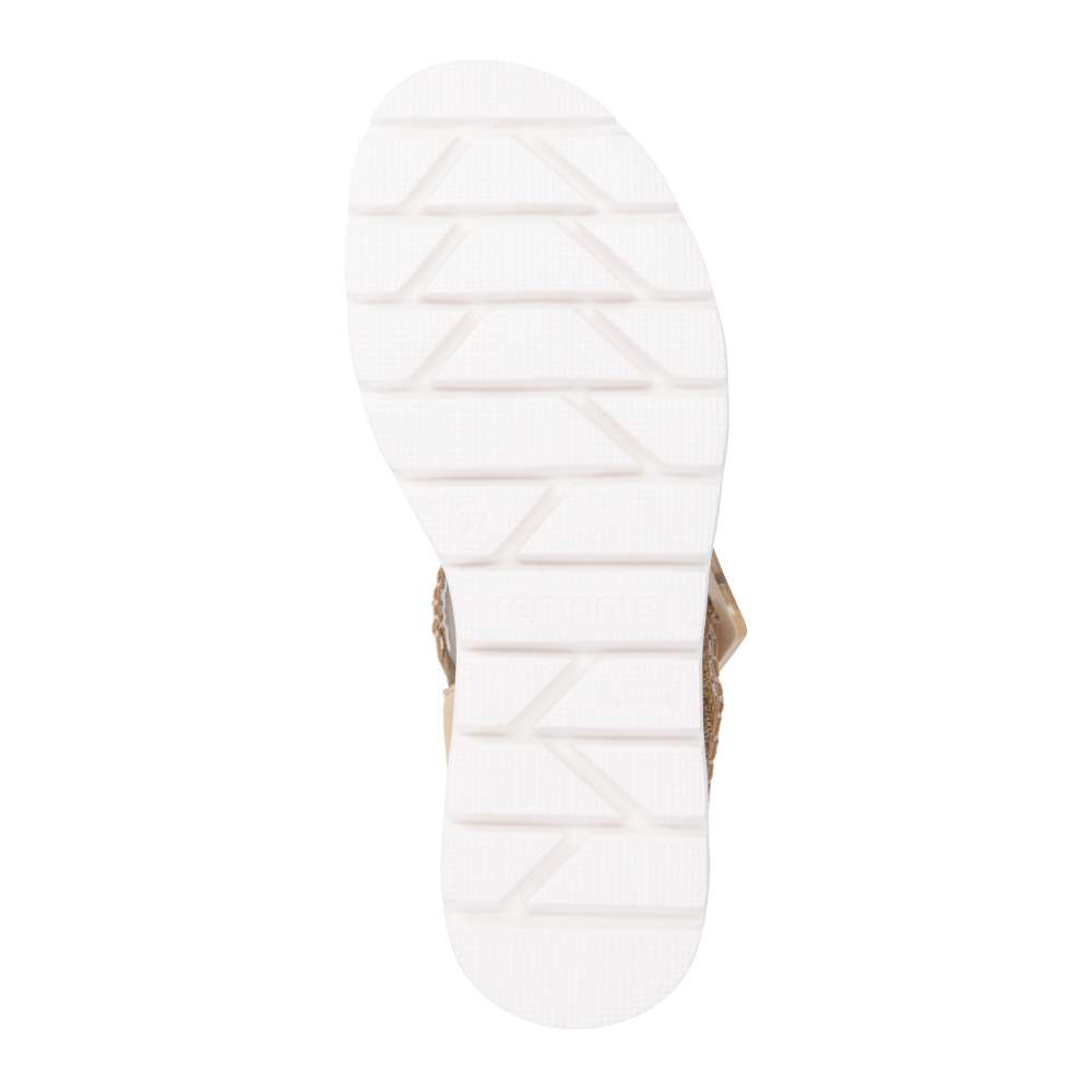 Obuv REMONTE představuje prémiovou řadu značky RIEKER, která se vyznačuje vysokou kvalitou použitých materiálů a precizním zpracováním. Tyto kožené sandály jsou navrženy pro ženy, které ocení maximální pohodlí, kvalitní materiály a precizní zpracování. Každý detail je promyšlen tak, aby obuv nejen vypadala působivě, ale poskytovala také optimální podporu a komfort při každodenním nošení. Efektní pásky svršku tvoří harmonický design, který působí sofistikovaně a zároveň moderně. Pásek přes prsty je pevný, aby poskytl stabilitu a bezpečné uchycení chodidla, zatímco pásek u kotníku je opatřen suchým zipem, který umožňuje snadné a přesné nastavení podle tvaru vaší nohy. Dekorativní spona přidává sandálům výrazný a stylový akcent, který podtrhuje jejich unikátní design. Kožená stélka je měkká, příjemná na dotek a dokonale se přizpůsobuje chodidlu, což oceníte při delších procházkách nebo celodenním nošení. Bezpečnou oporu a stabilitu poskytne vyšší podešev, která efektně doplňuje módní vzhled těchto sandálů. Efektní design, kvalitní materiály a komfortní řešení dělají z těchto sandálů ideální doplněk letního šatníku, který vám umožní vypadat stylově a cítit se pohodlně po celý den.