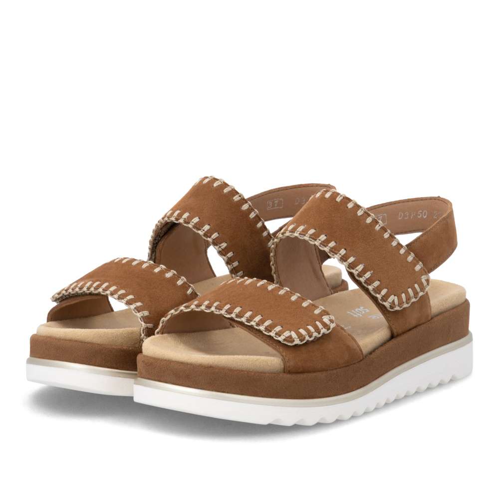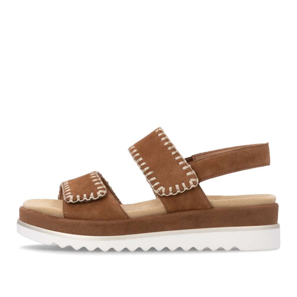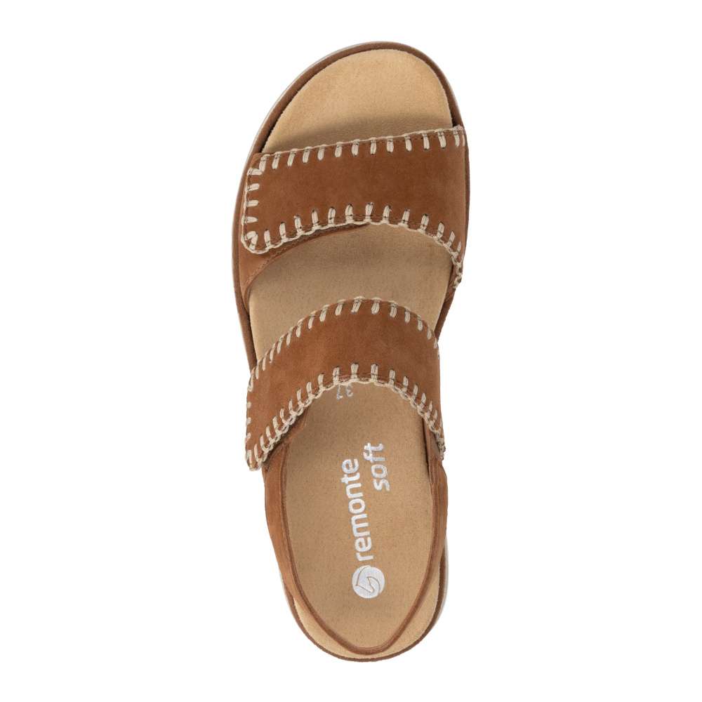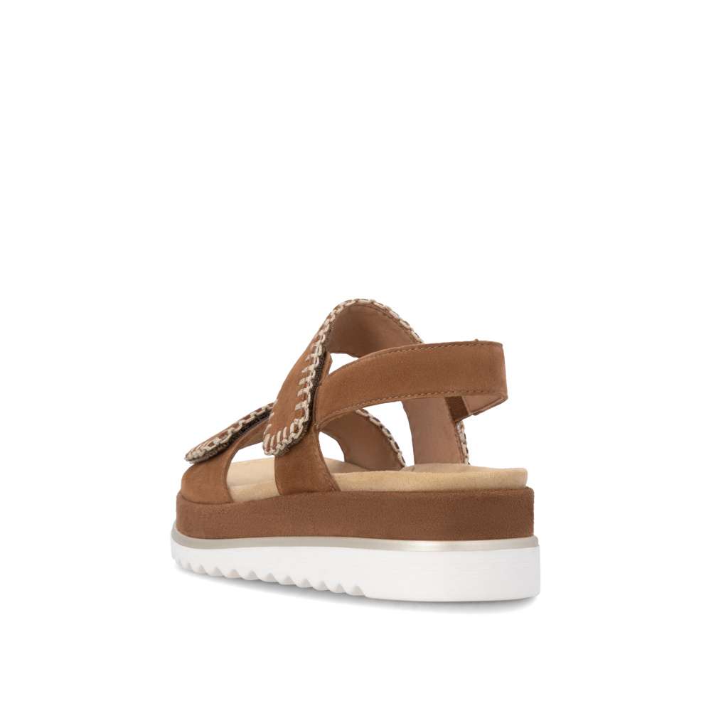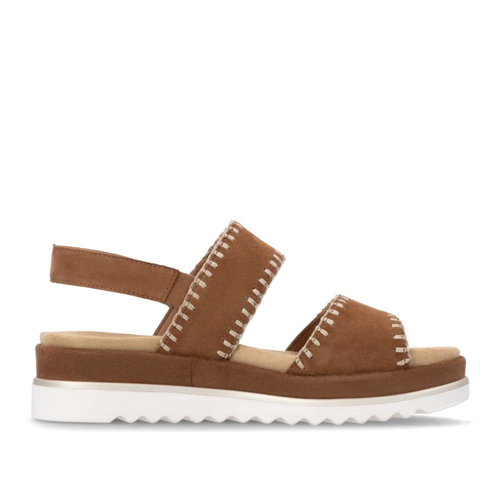 Obuv REMONTE představuje prémiovou řadu značky RIEKER, která se vyznačuje vysokou kvalitou použitých materiálů a precizním zpracováním. Tyto sandály zaujmou hnědým koženým svrškem s výrazným šitím po obvodu pásků, které dodává obuvi stylový vzhled. Pásek přes nárt a prsty je opatřen suchým zipem, který umožňuje snadné přizpůsobení obuvi tvaru vaší nohy a zajišťuje pevné uchycení. Zadní pásek je pevný a stabilní, čímž dodává obuvi potřebnou podporu a zajišťuje pohodlnou chůzi. Vyjímatelná textilní stélka je příjemná na dotek a tvarovaná tak, aby poskytovala komfort při delším nošení a usnadnila údržbu sandálů. Vyšší podešev nejen poskytuje oporu při každém kroku, ale její moderní design dodává obuvi jedinečný vzhled a zvýrazňuje charakter tohoto modelu. Díky kombinaci kvalitního zpracování, pohodlných materiálů a promyšlených detailů jsou tyto sandály ideální pro každodenní nošení i speciální letní příležitosti - ať už se chystáte do práce, na nákupy, procházku městem nebo setkání s přáteli. Tento model spojuje komfort, styl a lehkost každého kroku, což z něj činí skvělého společníka na letní dny.