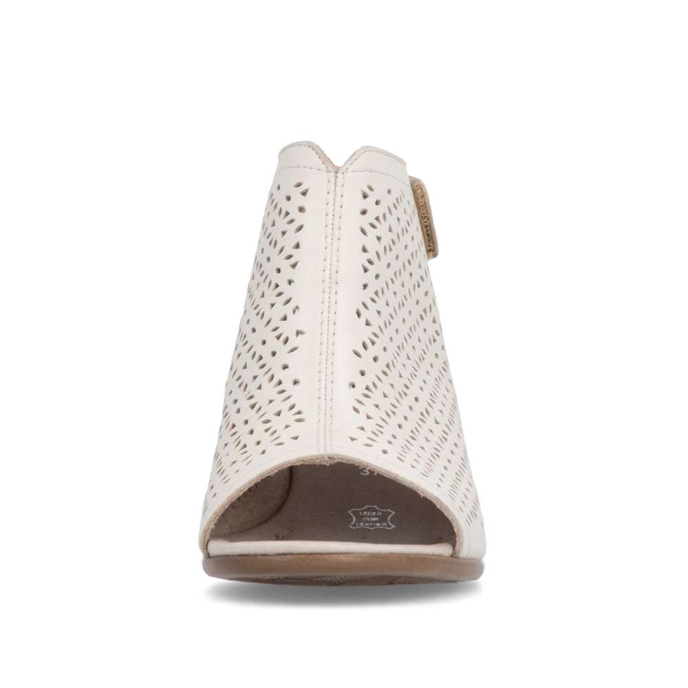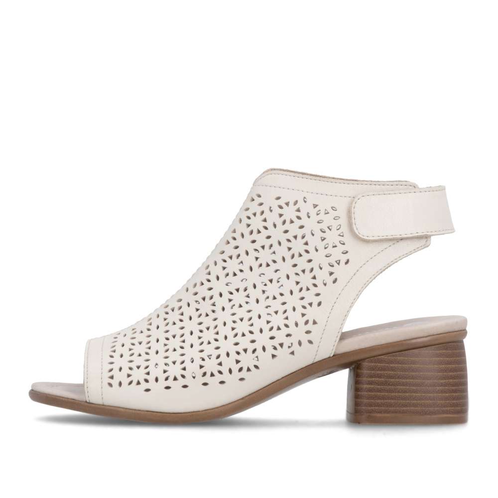 Obuv REMONTE představuje prémiovou řadu značky RIEKER, která se vyznačuje vysokou kvalitou použitých materiálů a precizním zpracováním. Kožené sandály RIEKER v béžové barvě jsou skvělou volbou pro ženy, které hledají spojení výrazného designu a pohodlí pro každý den. Svršek s dekorativní perforací působí stylově a zároveň podporuje prodyšnost, díky čemuž se budete cítit příjemně i během teplých dní. Zadní pásek se suchým zipem usnadňuje obouvání a zároveň zajišťuje stabilní držení na noze. Široký podpatek dodává jistotu každému kroku a zvyšuje komfort při chůzi, zatímco kožená stélka je příjemná na dotek a poskytuje optimální oporu po celý den. Tyto sandály RIEKER jsou ideálním doplňkem letního šatníku – perfektně se hodí k šatům, sukním i kalhotám a nabídnou vám módní vzhled a pohodlí při každé příležitosti.