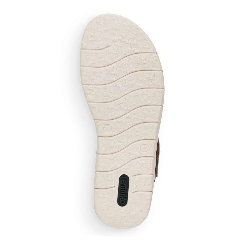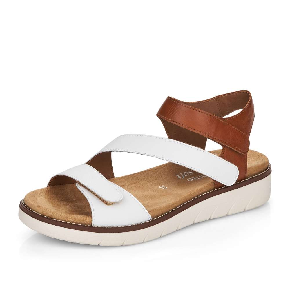 Detailní informace Dámské sandály REMONTE (vyšší řada značky RIEKER) s pásky vyrobené z přírodní usně v krásném barevném provedení. Pásek v přední a kotníkové části se zapíná na suchý zip a proto je skvělým pomocníkem při obouvání. Unikátní měkká vyjímatelná stélka zajistí celodenní komfort a podešev o výšce cca 3,5 cm je vyrobena z velmi kvalitního syntetického materiálu. Tento model je jako stvořený na Vaše krásné slunné dny.