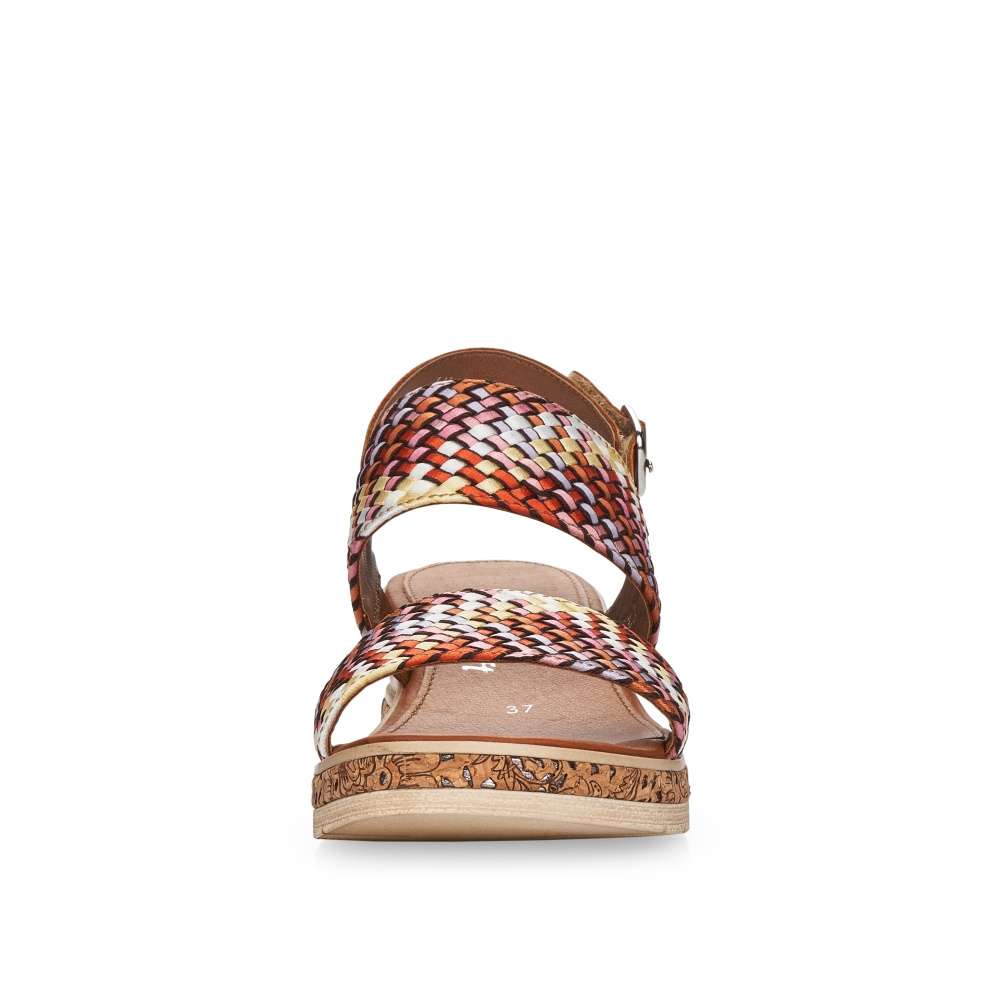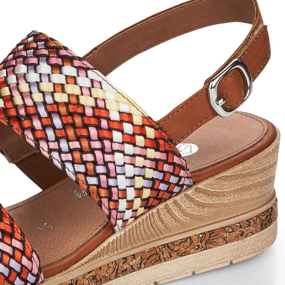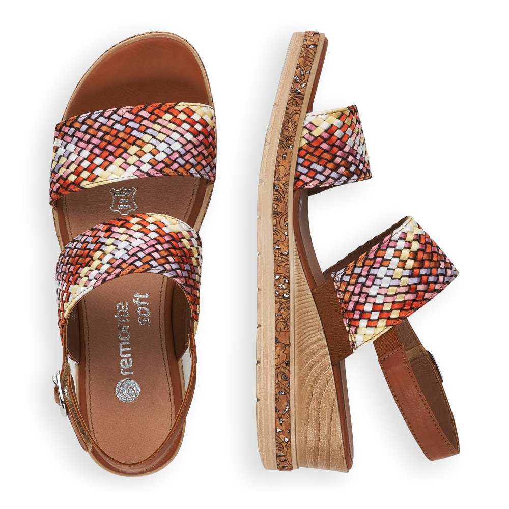 Obuv REMONTE – jedná se o vyšší řadu značky RIEKER, obuv se vyznačuje vynikající kombinací svrchních materiálů. Dámská sandálka s dvěma pletenými pruhy, které vytváří jedinečný styl a design této boty. K jednoduchému obutí slouží pásek za patou na suchý zip. Je tu měkká kožená stélka pro zasloužený komfort. Stylová podešev je zdobena více barvami a tím je obuv velmi originální. Tato stylová botička nesmí chybět ve Vašem nákupním košíku.