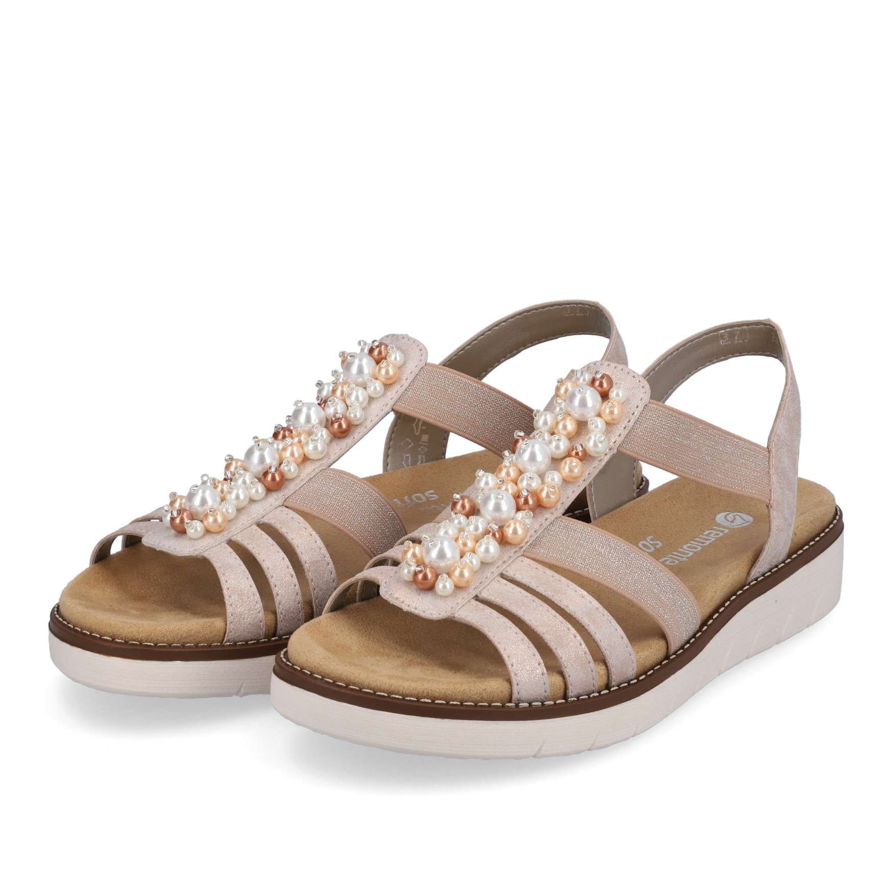 Obuv REMONTE je vyšší řadou značky RIEKER, obuv se vyznačuje kvalitou použitých materiálů. Každou romantickou ženu potěší tyto kouzelné sandálky svým světlým svrškem zdobeným krásnými korálky. Obouvání je snadné a rychlé díky pružným gumičkám po stranách, pevný pásek kolem kotníku zajistí zase pevné ukotvení boty na Vaší noze. Vyjímatelná stélka je tvarovaná a díky ní se budete cítit v sandálcích komfortně. Dopřejte Vašim nohám to nejlepší cestou do práce nebo na letní procházku. Technologie: Tato bota je vybavena měkkou vyjímatelnou stélkou.