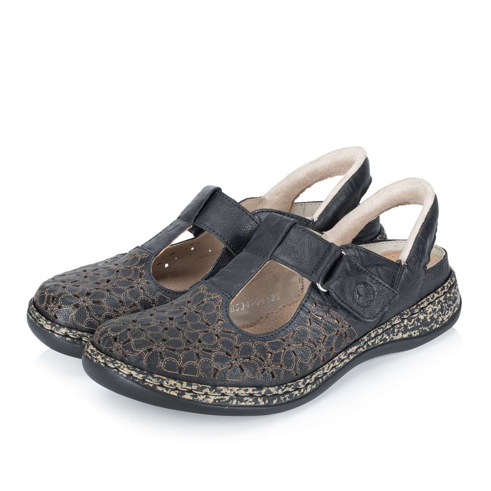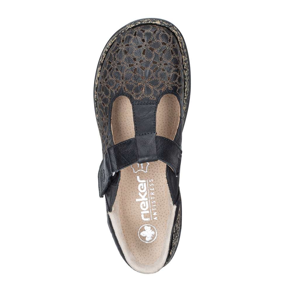 Dámská obuv značky RIEKER je zdobená perforací, vyrytými kytičkami na špičce a malým vytlačeným logem značky. Pásek přes nárt je zakončen zapínáním na suchý zip, díky němuž bude obouvání nejen rychlé, ale i pohodlné. Při celodenním chození oceníte měkkou koženou stélku, která se postará o Vaše pohodlí při každém kroku. Tento model bude vhodný na běžné pochůzky městem či na dlouhých nákupech s kamarádkami. Technologie: Antistress – díky čtyřem antistresovým vlastnostem – lehkosti, pružnosti, prostornosti a vynikající absorpci nárazů – vám boty RIEKER nabídnou komfortnější chůzi.