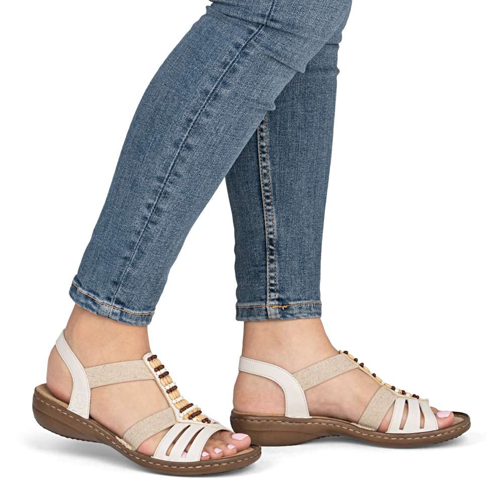 Tyto sandály značky RIEKER spojují styl, precizní zpracování a maximální pohodlí. Pásky jsou pečlivě poskládané a doplněné pružnými gumičkami, které umožňují snadné nazutí a dokonalé přizpůsobení se tvaru nohy. Středový pásek je ozdoben působivými aplikacemi, které přidávají sandálům jedinečný detail, čímž se stávají výrazným doplňkem každého letního outfitu. Měkká stélka poskytuje komfort i při dlouhodobém nošení, zatímco flexibilní podešev tlumí nárazy a umožňuje přirozený pohyb chodidla. Sandály RIEKER jsou ideální pro procházky městem, letní výlety i volnočasové aktivity – kombinují pohodlí a módní vzhled, takže každý váš krok bude příjemný a sebevědomý.