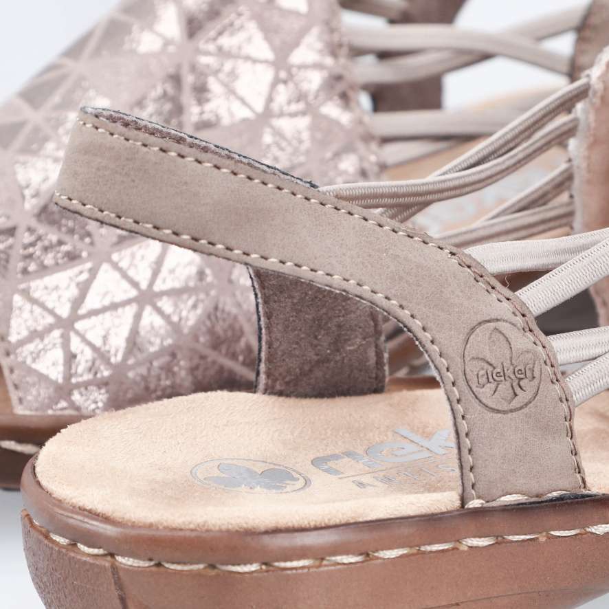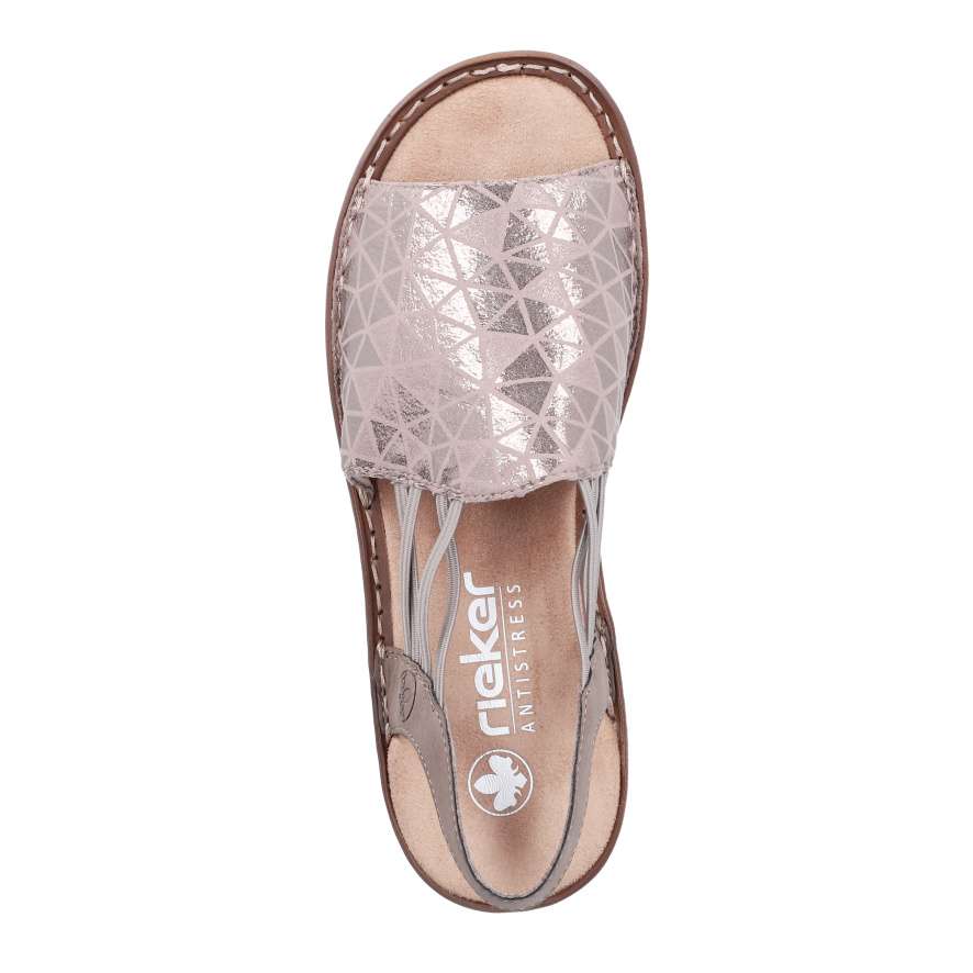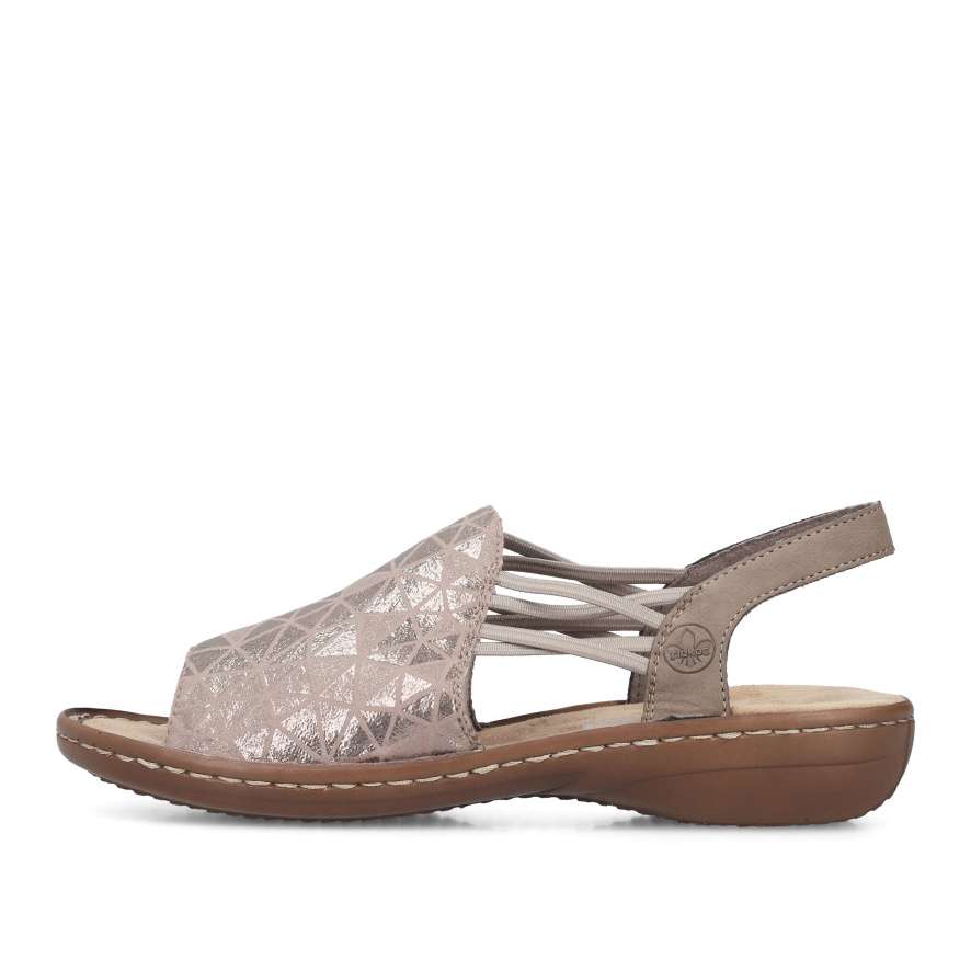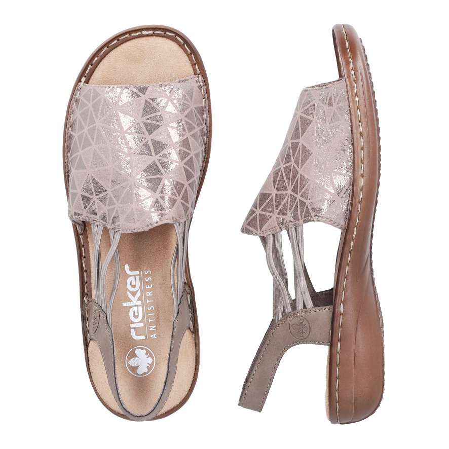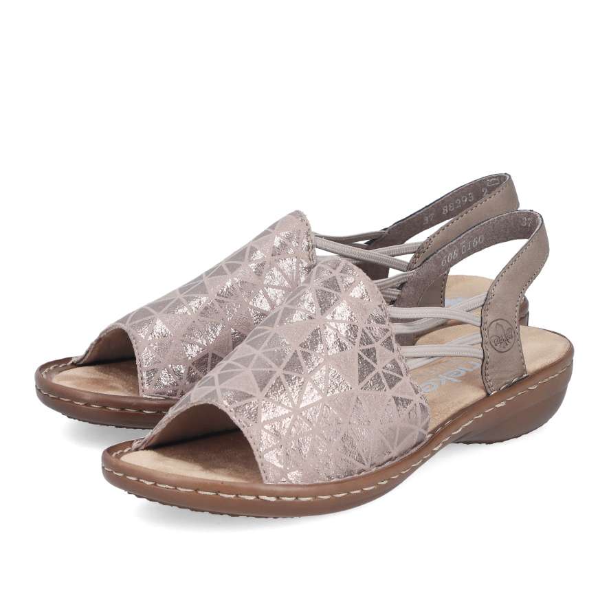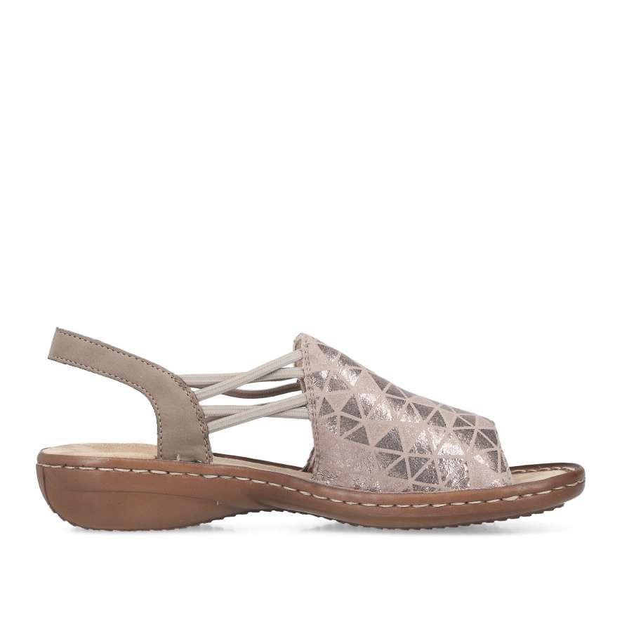 Sandály RIEKER se stanou skutečnou ozdobou vašich nohou a dodají každému outfitu stylový nádech. Přední široký pásek je ozdoben atraktivním vzorem s jemnými odlesky, které obuvi dodávají jedinečný a stylový charakter. Praktické boční gumičky zajišťují snadné obouvání a pevný zadní pásek poskytuje potřebnou oporu při chůzi, takže se můžete cítit pohodlně po celý den. Příjemná textilní stélka je měkká na dotek a podešev účinně tlumí nárazy při chůzi, tato kombinace přispívá k celkovému komfortu při nošení. Tyto sandály RIEKER jsou ideální volbou pro letní dny – skvěle doplní šaty, sukně i ležérní outfity a poskytnou vám pohodlí i styl v jednom.
