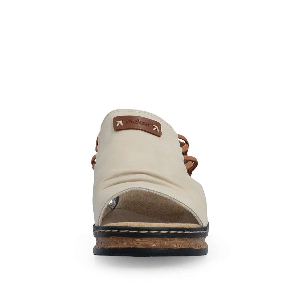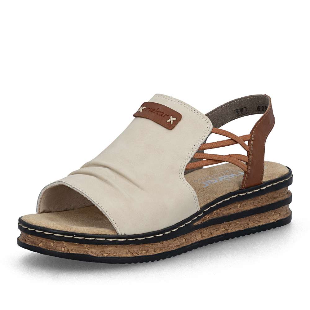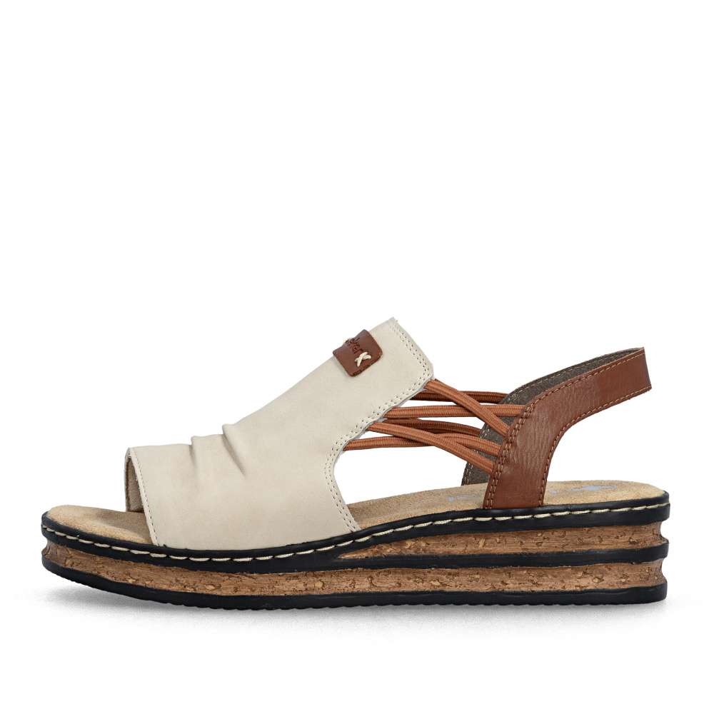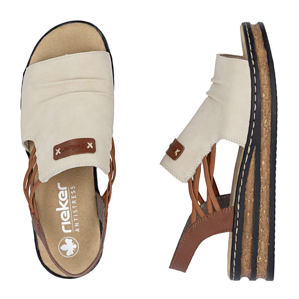 Dámské sandály značky RIEKER se širokým nártovým páskem jsou ideální volbou pro ženy, které upřednostňují čistý design spojený s maximálním pohodlím. Elegantní řasení na nártu spolu s našitým logem značky dodává sandálům vkusný detail. Pružné gumičky po stranách přirozeně spojují přední a zadní část obuvi a zajišťují snadné obouvání i perfektní přizpůsobení chodidlu. Vyšší podešev efektivně tlumí nárazy při chůzi a přispívá ke stabilnímu kroku, zatímco příjemná textilní stélka se postará o komfort i během celodenního nošení. Tento model je ideálním společníkem pro letní dny – ať už do města, do práce nebo pro volný čas – a nabízí typický komfort a nenucenou eleganci značky RIEKER.