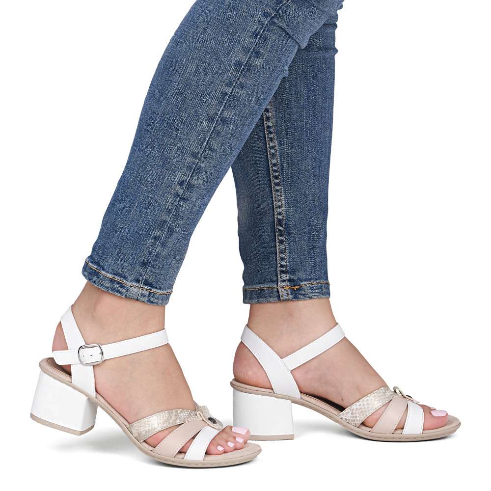 Dámské sandály RIEKER zaujmou svým nádherně propracovaným složením pásků svršku v decentních odstínech a jemném vzoru, který dodává obuvi jemný, ale zároveň výrazný styl. Pásek přes nárt je vybaven nastavitelnou sponou, díky které si sandály snadno přizpůsobíte přesně podle tvaru vaší nohy. O pohodlí se stará komfortní stélka, která poskytuje měkkou oporu a komfort při každém kroku, zatímco nízký a široký podpatek dodává stabilitu a jistotu při chůzi, zároveň jemně prodlužuje siluetu a doplňuje sofistikovaný vzhled sandálů. Tyto sandály jsou ideální volbou pro ženy, které hledají kombinaci nadčasového stylu, pohodlí a praktičnosti – perfektně doplní letní outfity, ať už do města, do práce nebo pro volnočasové aktivity.