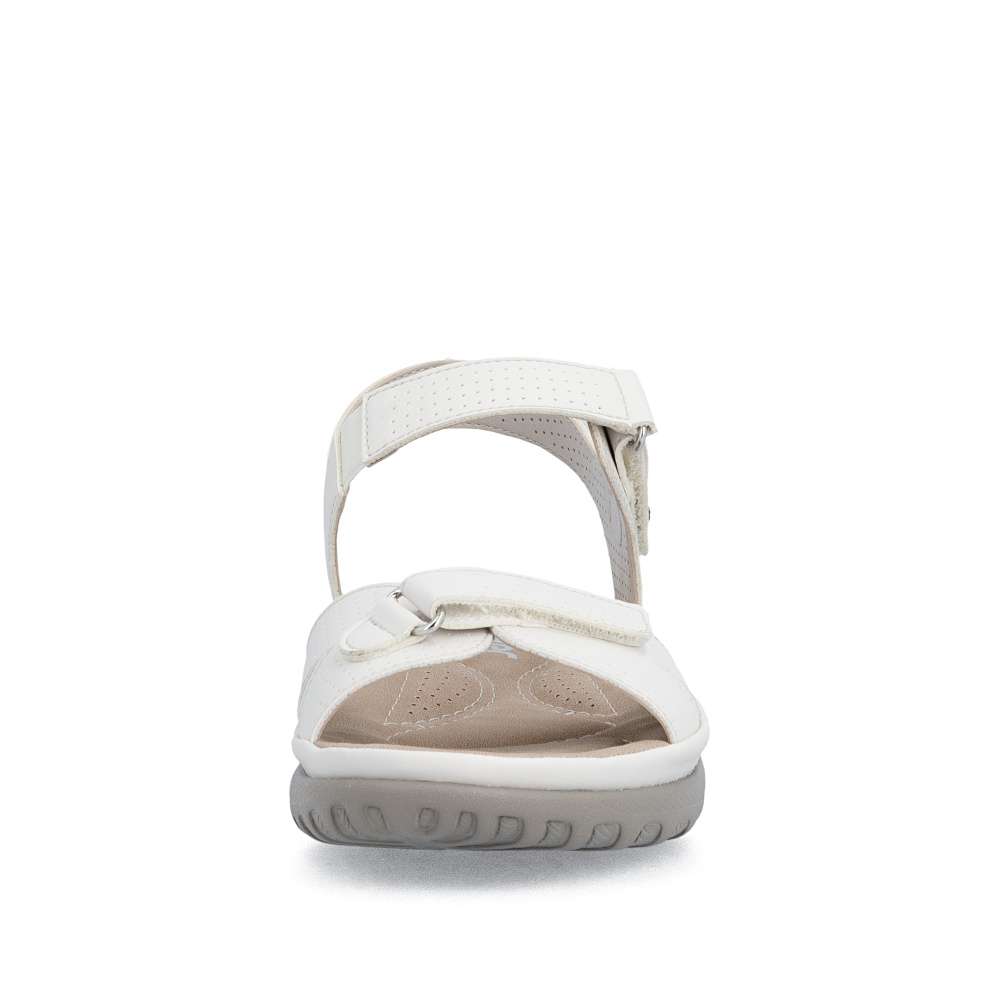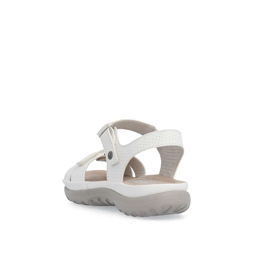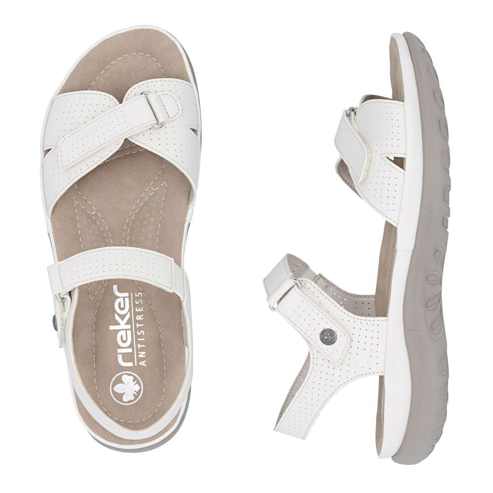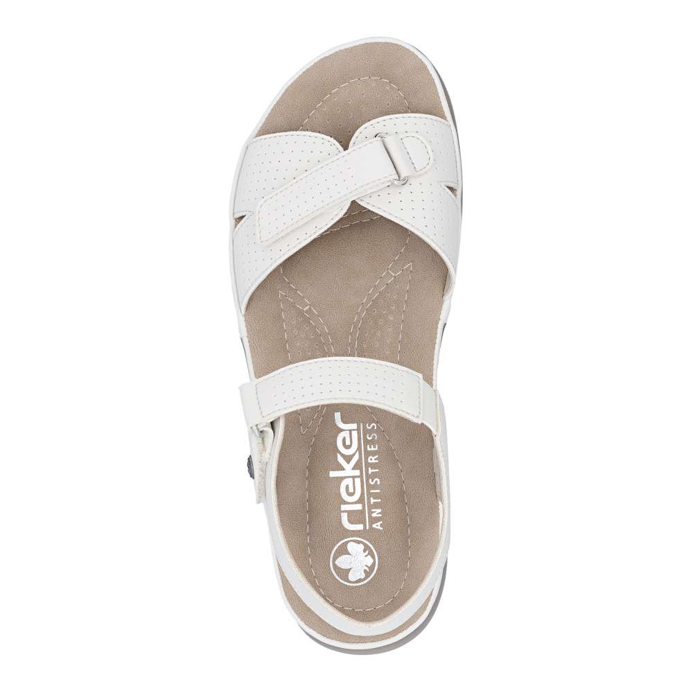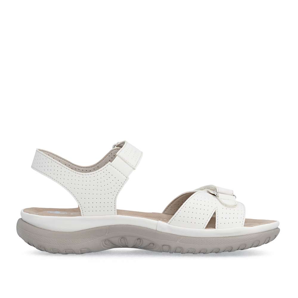 Nadčasový styl sandálů RIEKER ocení každá praktická žena, světlý svršek působí svěže a univerzálně, přičemž jej decentně dekoruje minimalistický vzor. Pásky jsou precizně poskládané tak, aby vytvářely harmonický vzhled a zároveň poskytovaly stabilitu. Jsou vybaveny praktickým suchým zipem, díky kterému si sandály jednoduše přizpůsobíte podle svých potřeb a zajistíte si pohodlné obutí. Příjemná stélka se postará o komfort při každém kroku a podešev efektivně tlumí nárazy při chůzi, čímž zvyšuje pohodlí během celodenního nošení. Tento model je ideální volbou pro běžné dny i volnočasové aktivity, kdy chcete vypadat stylově a cítit se komfortně.