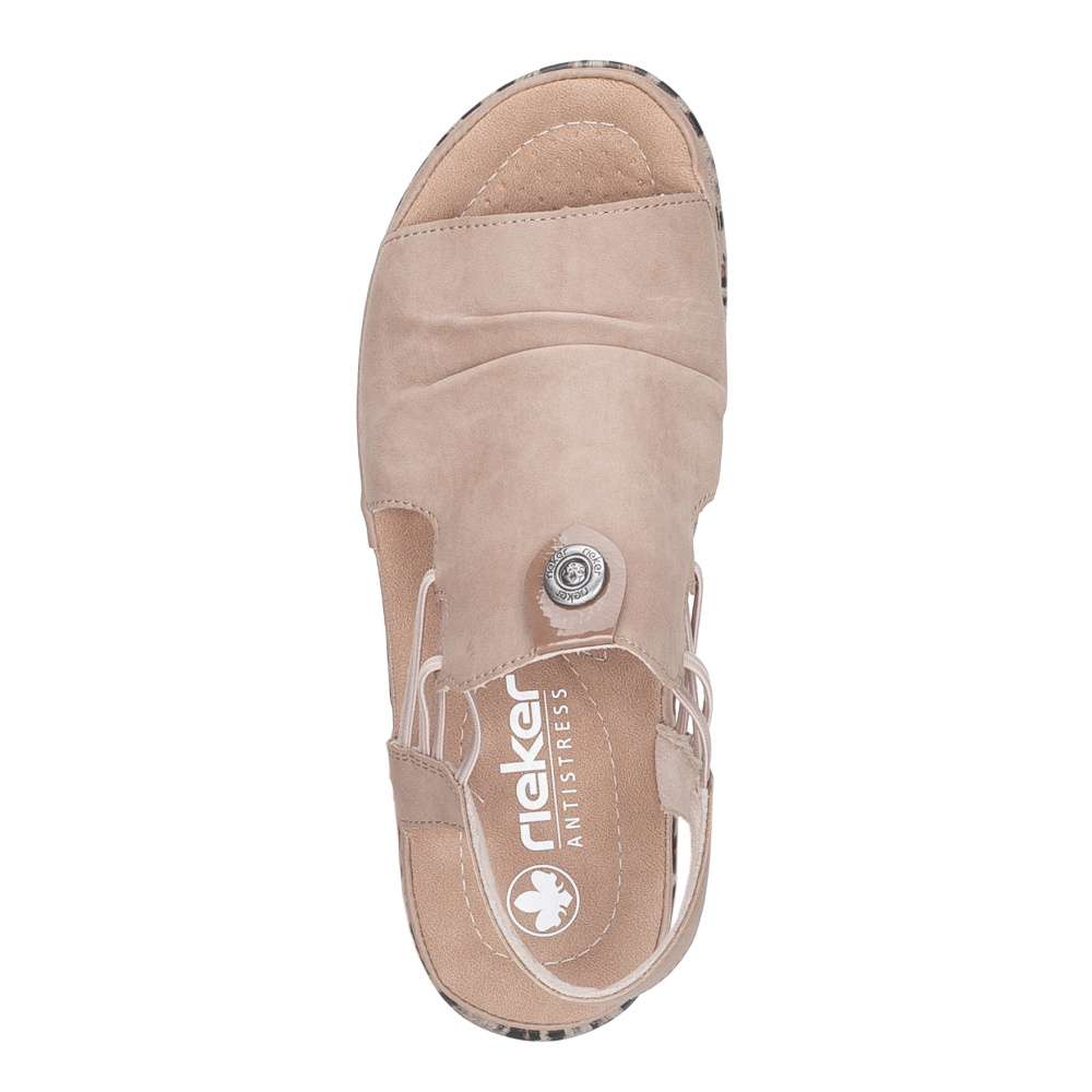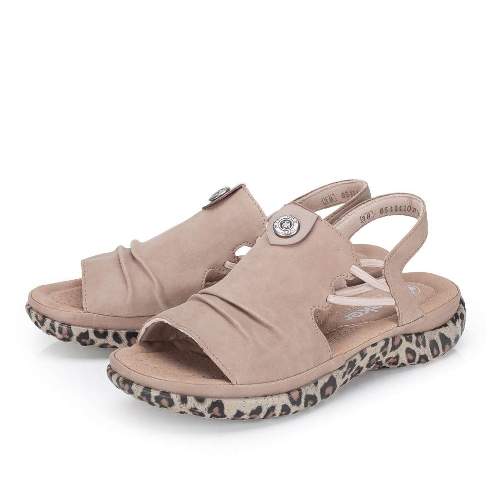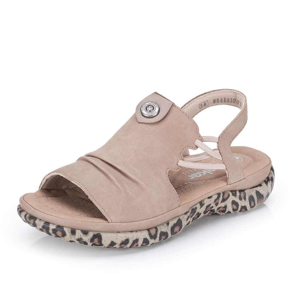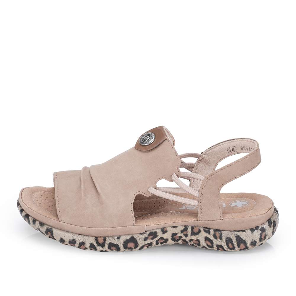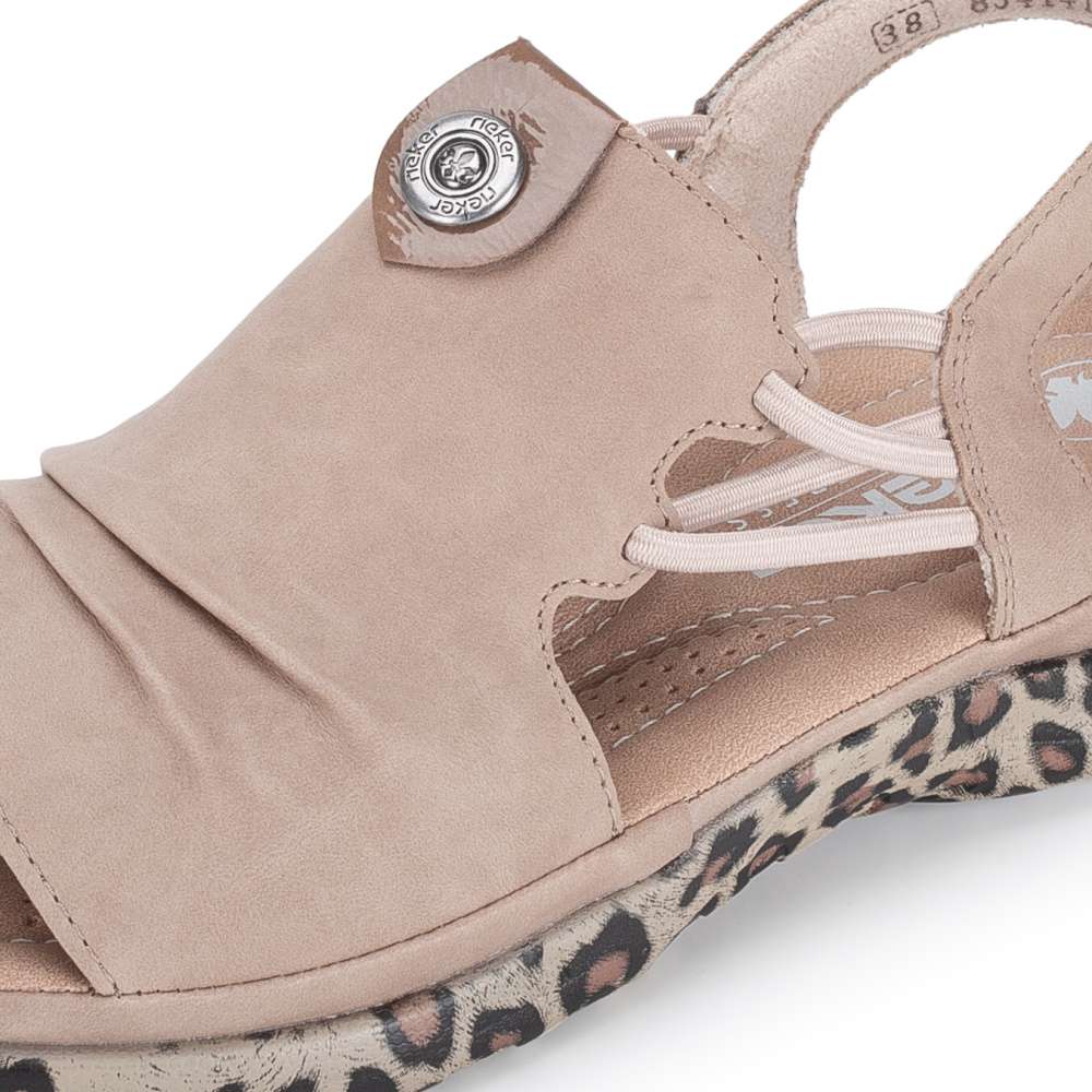 Pohodlí se dokonale pojí se stylem v těchto sandálech RIEKER, které přinášejí doslova nebeský komfort při nošení a zároveň jedinečný vzhled. Béžový svršek je zárukou nadčasovosti a lehké kombinovatelnosti, zatímco jemné řasení spolu s decentním logem značky dodávají modelu módní výraz. Výrazným prvkem je podešev dekorovaná zvířecím motivem, která sandálům dodává módní akcent a originální charakter. Obouvání usnadňují vsazené boční gumičky, které se přizpůsobí tvaru nohy, široký nártový pásek a pevný pásek přes patu zajišťují optimální podporu a stabilitu při každém kroku. Vyšší podešev absorbující nárazy poskytuje spolehlivou oporu chodidla, zatímco měkká stélka zvyšuje komfort při celodenní chůzi. Pokud hledáte ideální obuv do letních dnů, právě jste ji našli – stylovou, pohodlnou a připravenou doprovázet vás na každém kroku.
