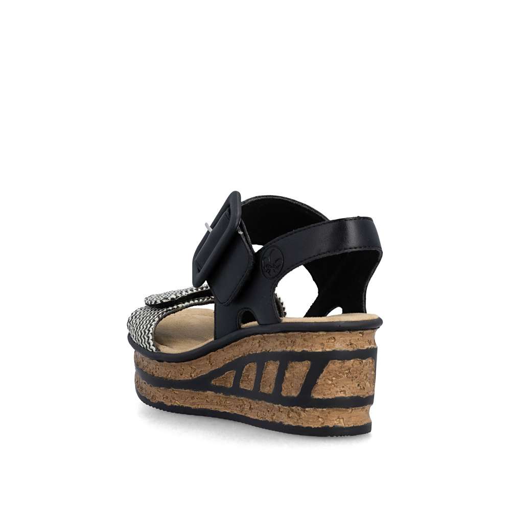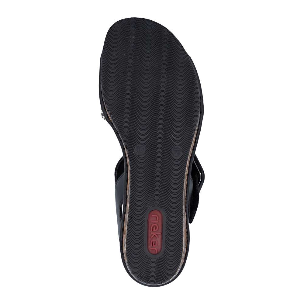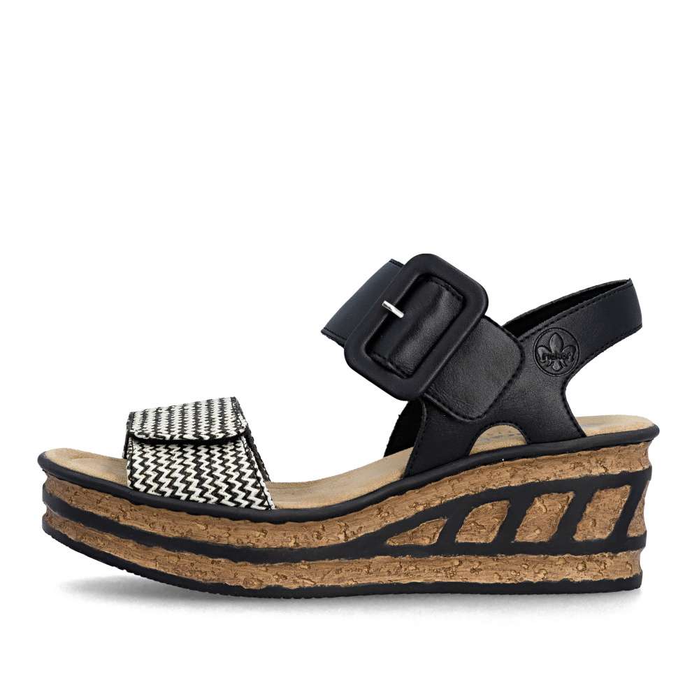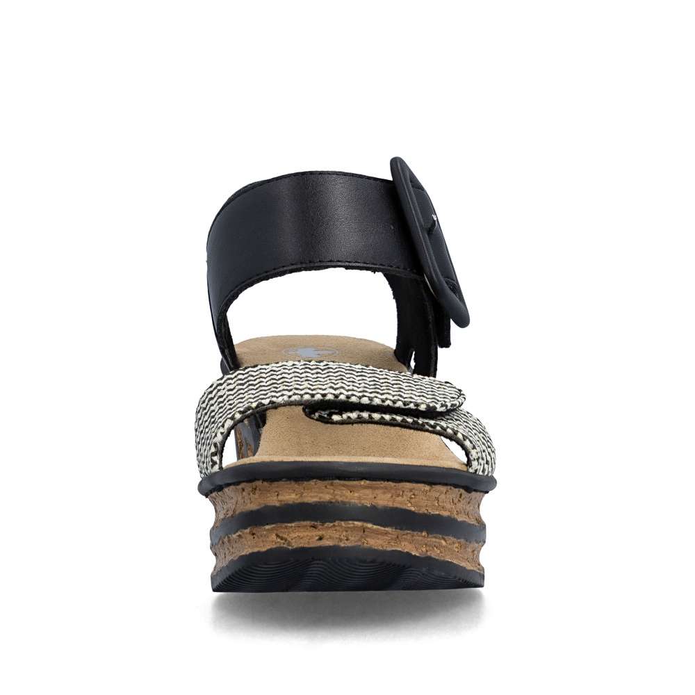 Tyto sandály RIEKER jsou oslavou ženskosti, originality a bezstarostného pohodlí. Už na první pohled okouzlí promyšlenou kombinací materiálů a efektního předního pásku, který vyniká svojí strukturou a barevností, což dodává modelu nepřehlédnutelný charakter. Pásky se suchým zipem vám umožní sandály snadno přizpůsobit přesně podle tvaru nohy a nártový pásek zdobí výrazná spona. Měkká textilní stélka rozmazlí vaše chodidla a poskytne komfort i během dlouhých dnů strávených na nohou. Dominantou modelu je klínový podpatek, který dodává stabilitu, účinně tlumí nárazy při chůzi a zároveň zvýrazňuje originalitu celkového designu. Díky němu působí vaše silueta elegantněji a každý krok je přirozený a sebevědomý. Tyto sandály jsou stvořeny pro chvíle, kdy chcete kráčet s úsměvem, cítit se pohodlně a nechat vyniknout svůj styl - ať už se procházíte městem, užíváte si letní den nebo vyrazíte za odpočinkem.