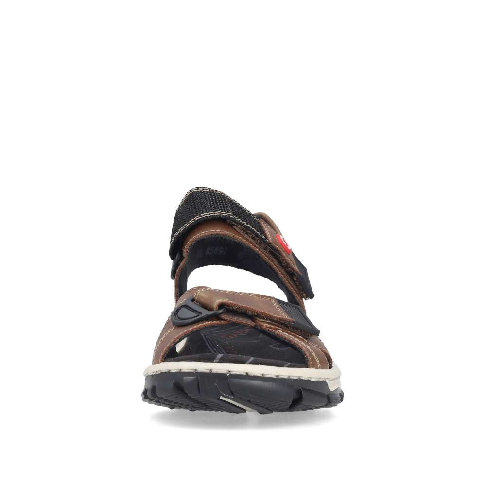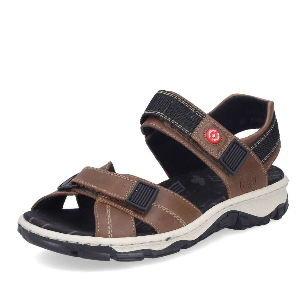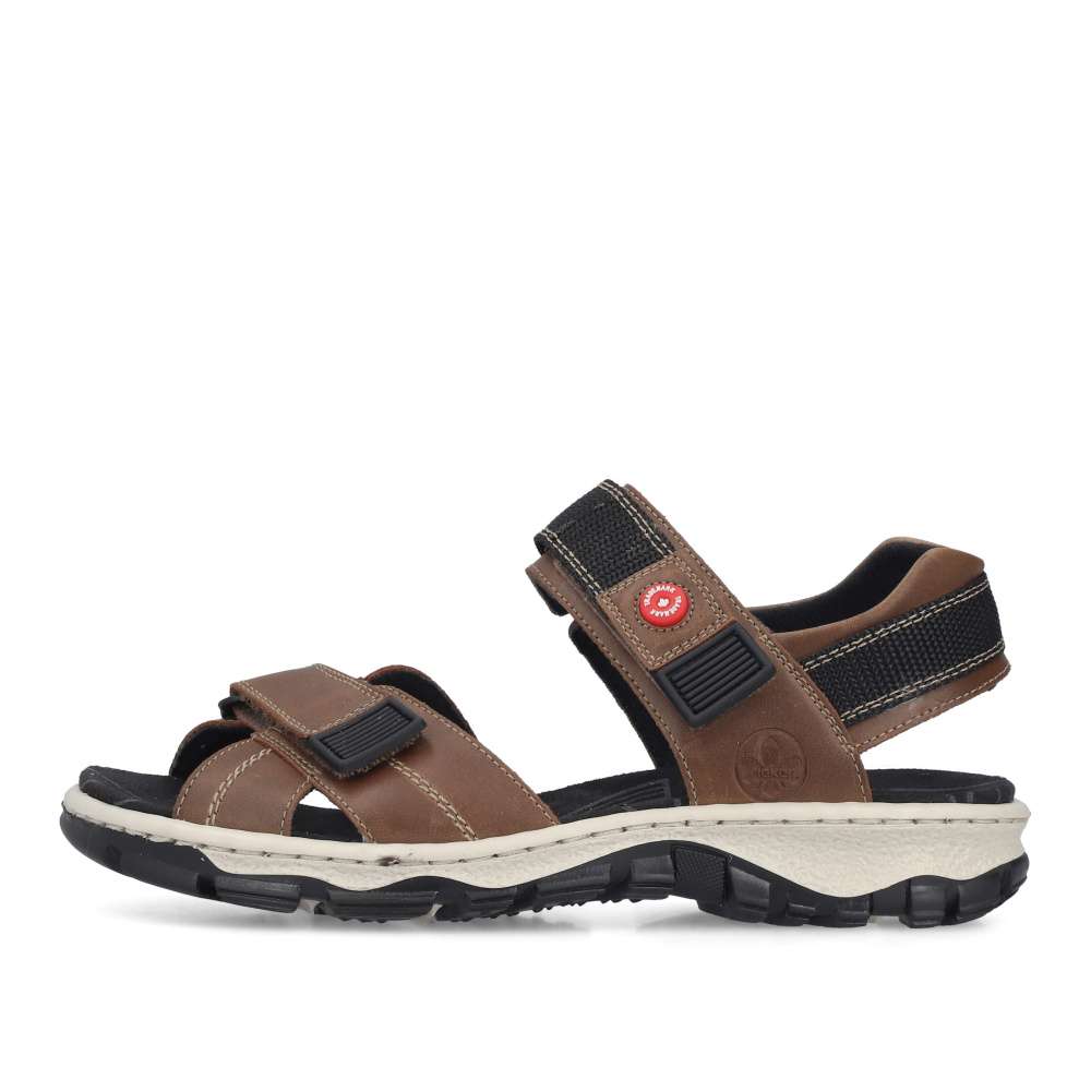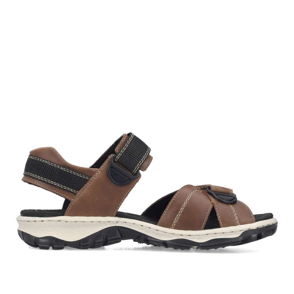 Tyto sportovní sandály značky RIEKER kombinují pohodlí, funkčnost a moderní design. Hnědé pásky jsou vybaveny měkkou podšívkou, která chrání chodidlo a zajišťuje komfort při každém kroku. Suché zipy na nastavitelných řemínkách umožňují přizpůsobení obuvi tvaru chodidla, díky čemuž sandály pevně drží a zároveň se snadno obouvají. Stélka poskytuje příjemný pocit při kontaktu s nohou, zatímco flexibilní podešev se systémem Antistress tlumí nárazy a zaručuje stabilitu a pohodlí po celý den. Tyto sandály jsou ideální pro volnočasové aktivity, procházky nebo sportovní využití, kde oceníte kombinaci praktičnosti a stylového vzhledu.