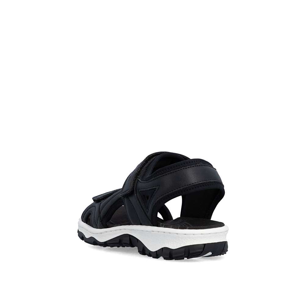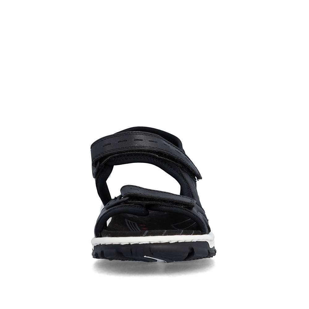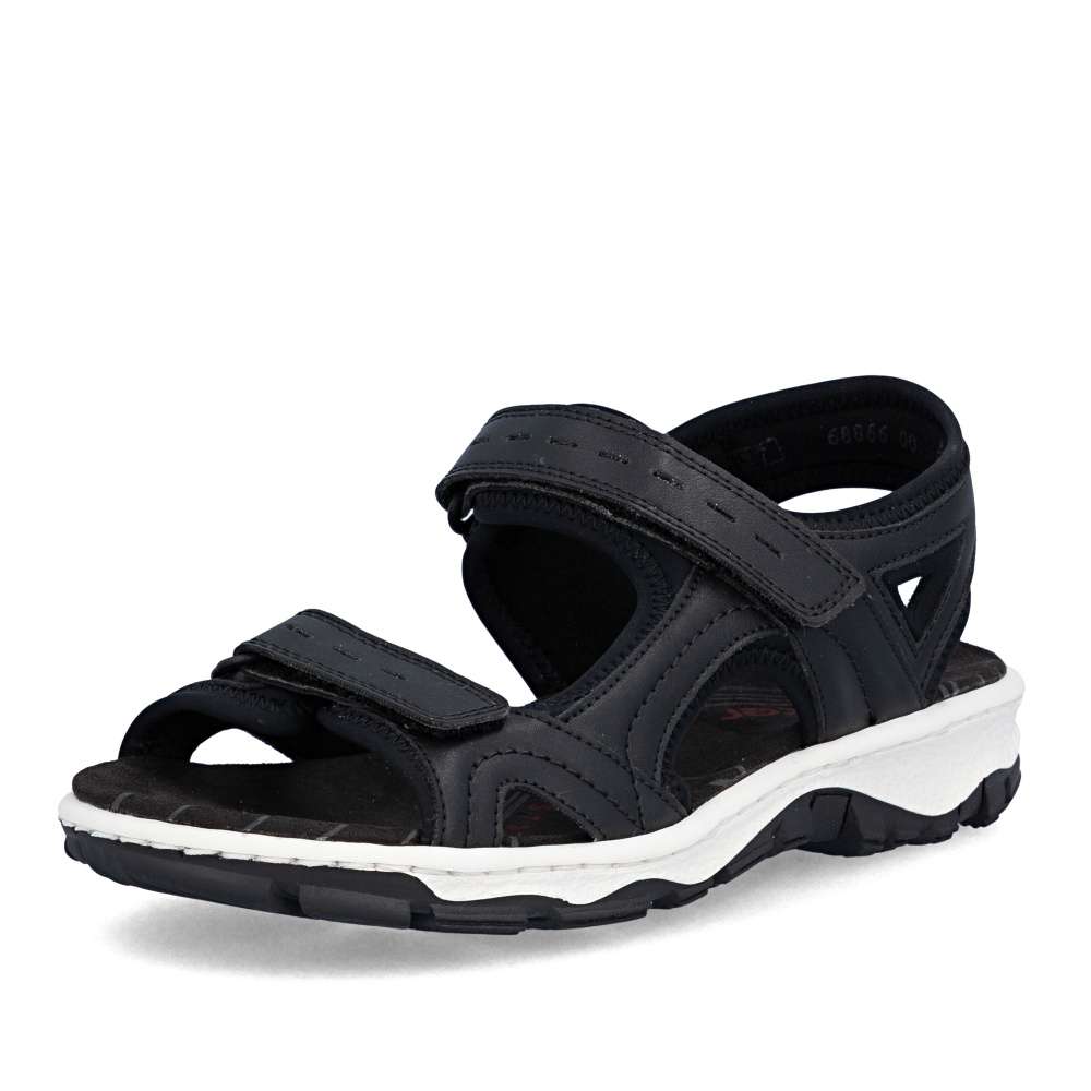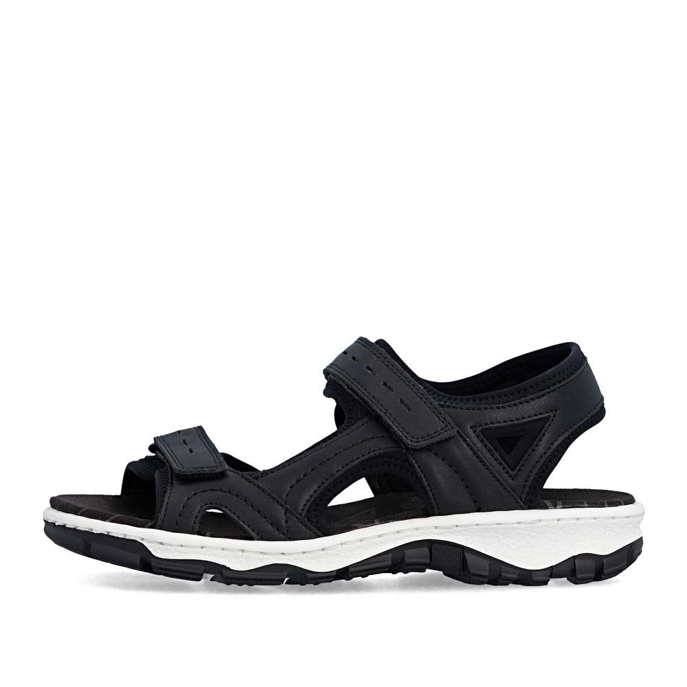 Dámské sportovní sandály RIEKER se vám budou hodit na každém letním výletu. Svršek je vyroben v nadčasové černé barvě se zajímavou kombinací materiálů a liniemi prošití. Zapínání je na suchý zip a díky němu si pásky můžete utáhnout podle svých potřeb a vytvořit maximální pohodlí. Textilní stélka a flexibilní podešev zajistí celodenní komfort, který ocení jistě mnohé z Vás. Potřebujete obuv vhodnou jak do přírody, tak procházku městem? Pak jste ji právě našli!