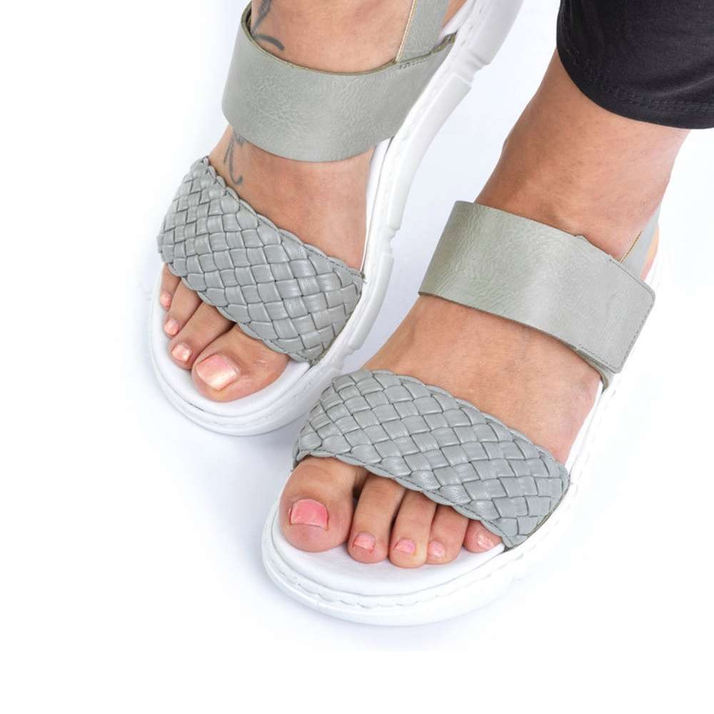 Sandálky RIEKER díky svému městskému vzhledu nesmí chybět ve Vašem botníku. Svršek obuvi je tvořen předním splétaným páskem, nártovým zdobným vytlačeným logem značky a užším páskem kolem paty. Snadné nazouvání a přizpůsobení dle požadavků zajistí zapínání na suchý zip. Pohodlná měkká stélka a stabilní podešev doladí obuv k dokonalosti. Obuv si můžete vzít jak do práce, tak na kávu s přáteli nebo i na večerní procházku městem. Technologie: Antistress – podešev je díky této technologii lehká, flexibilní, absorbuje nárazy při došlapu a snadno se přizpůsobí každé noze.