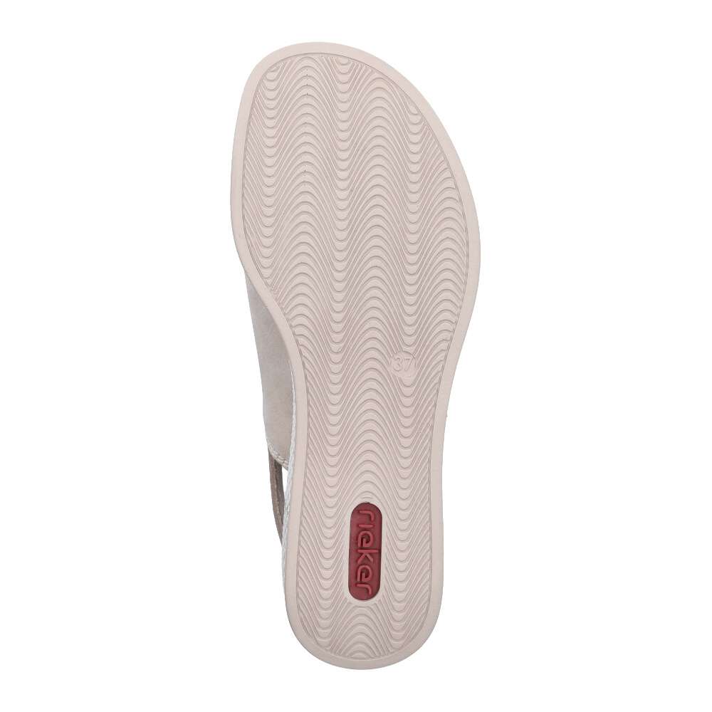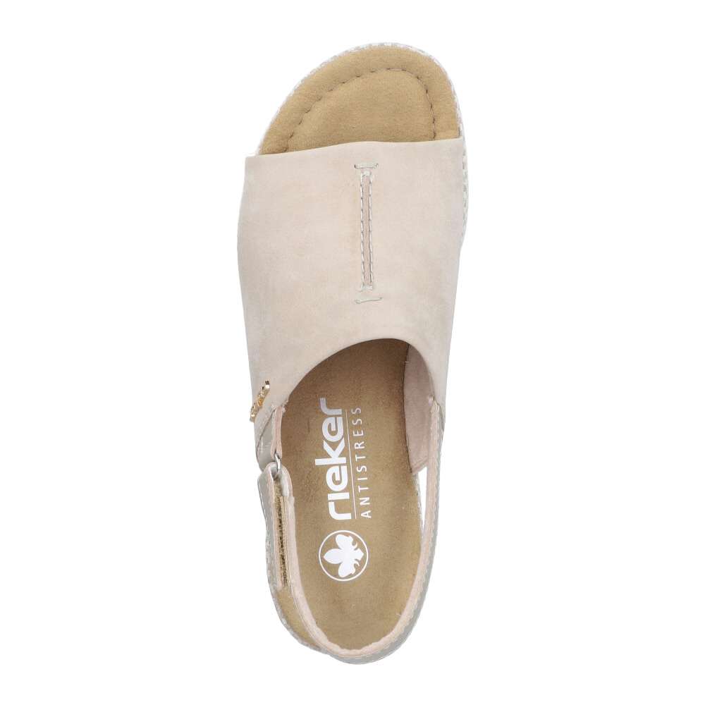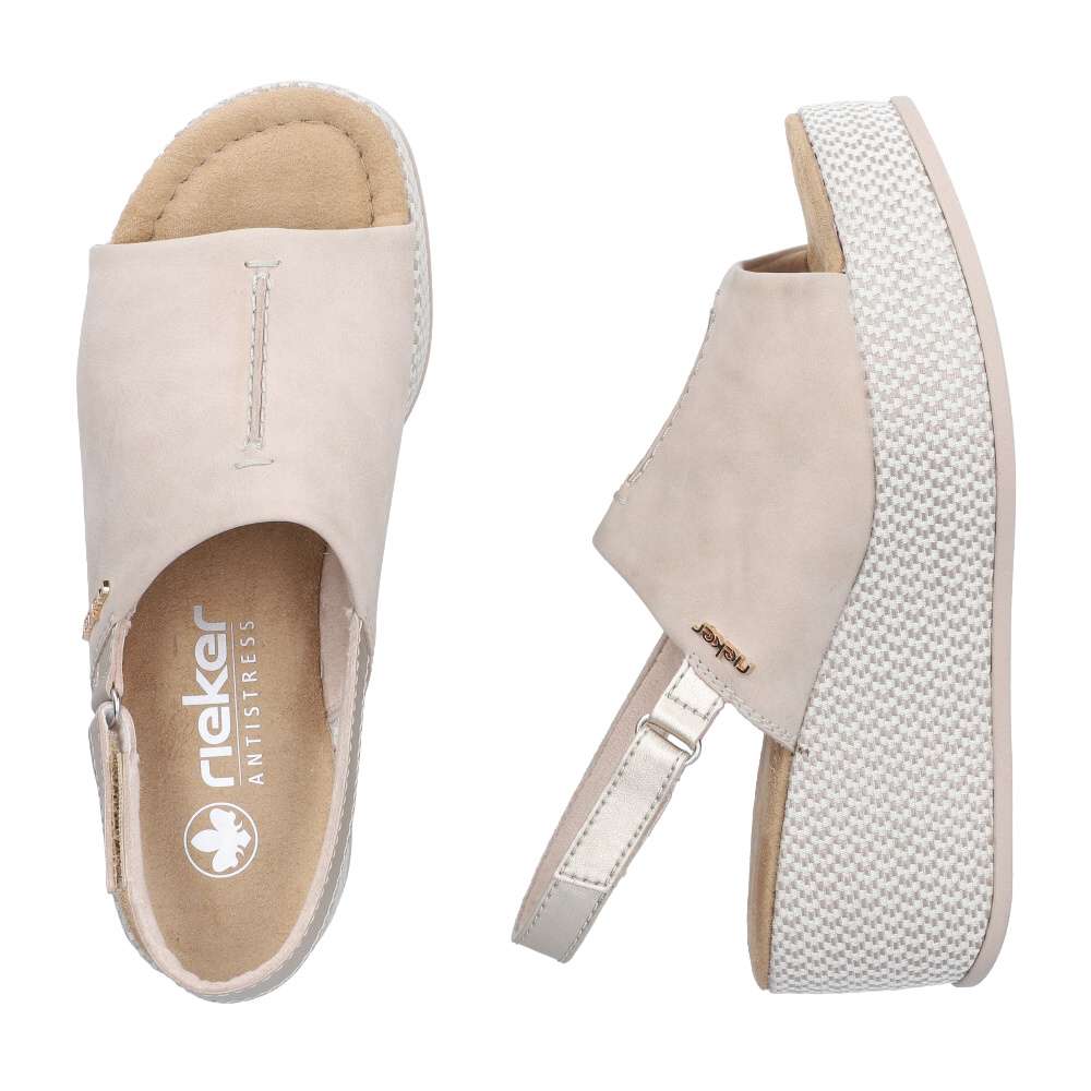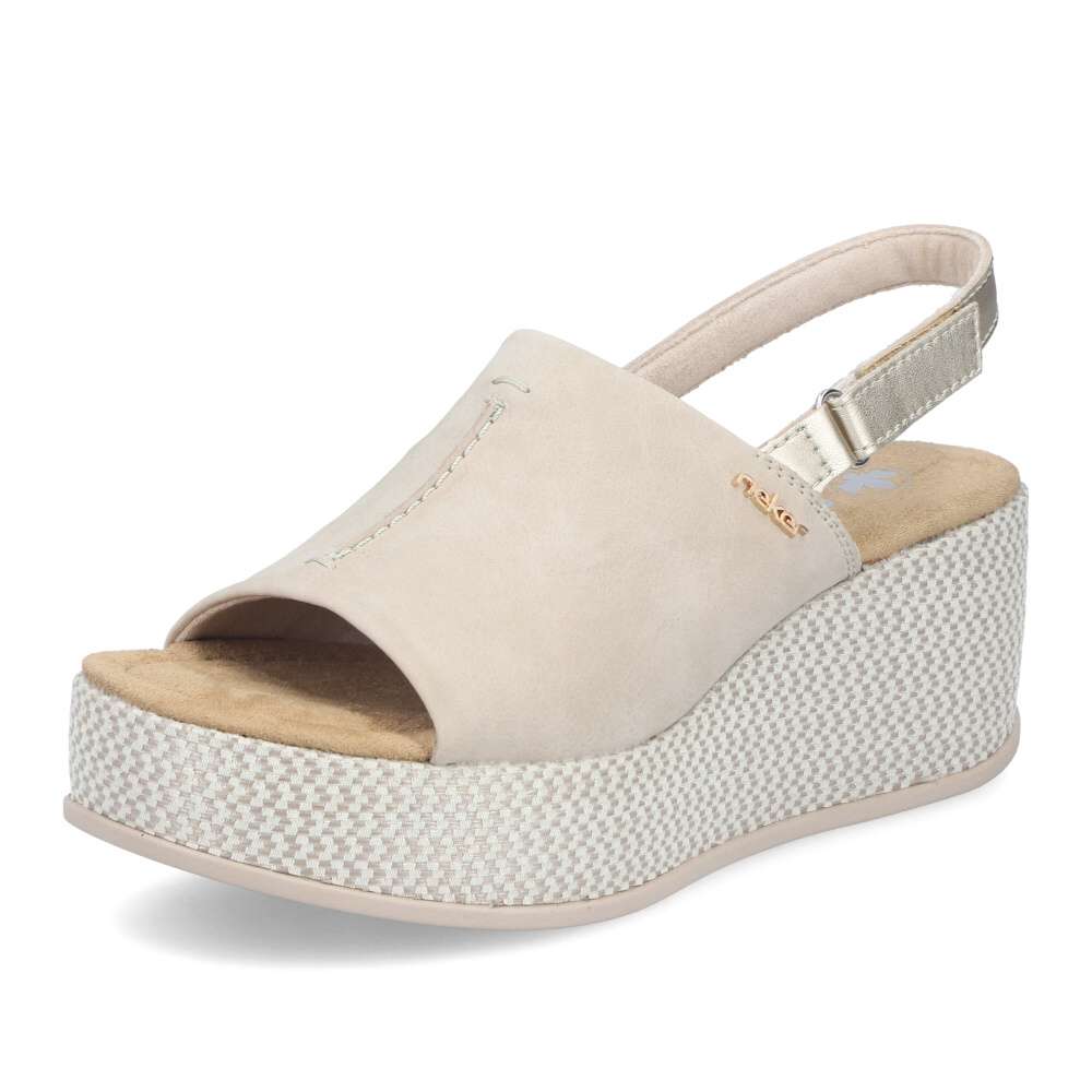 Sandály Rieker v jemném béžovém odstínu se zadním lesklým páskem si zamilujete na první pohled i krok. Široký nártový pásek dekorovaný logem značky zlaté barvy poskytne dokonalou stabilitu a pásek v zadní části se suchým zipem usnadní nazutí, zatímco měkká textilní stélka rozmazlí vaše chodidla při každém kroku. Klínový podpatek je nejen vizuálně působivý, ale také praktický – jemně tlumí nárazy a dodává chůzi ladnost. Tyto sandály jsou ideální volbou pro ženy, které touží po eleganci bez kompromisů ve stylu i pohodlí – spolehlivý kousek, ve kterém se budete cítit sebevědomě při každém kroku.