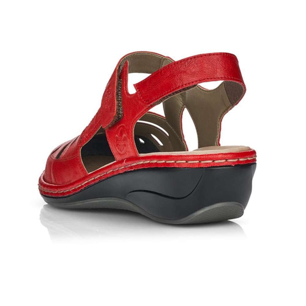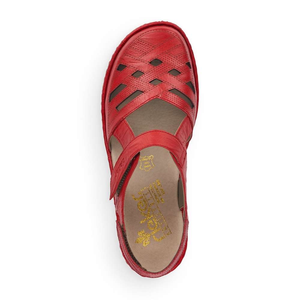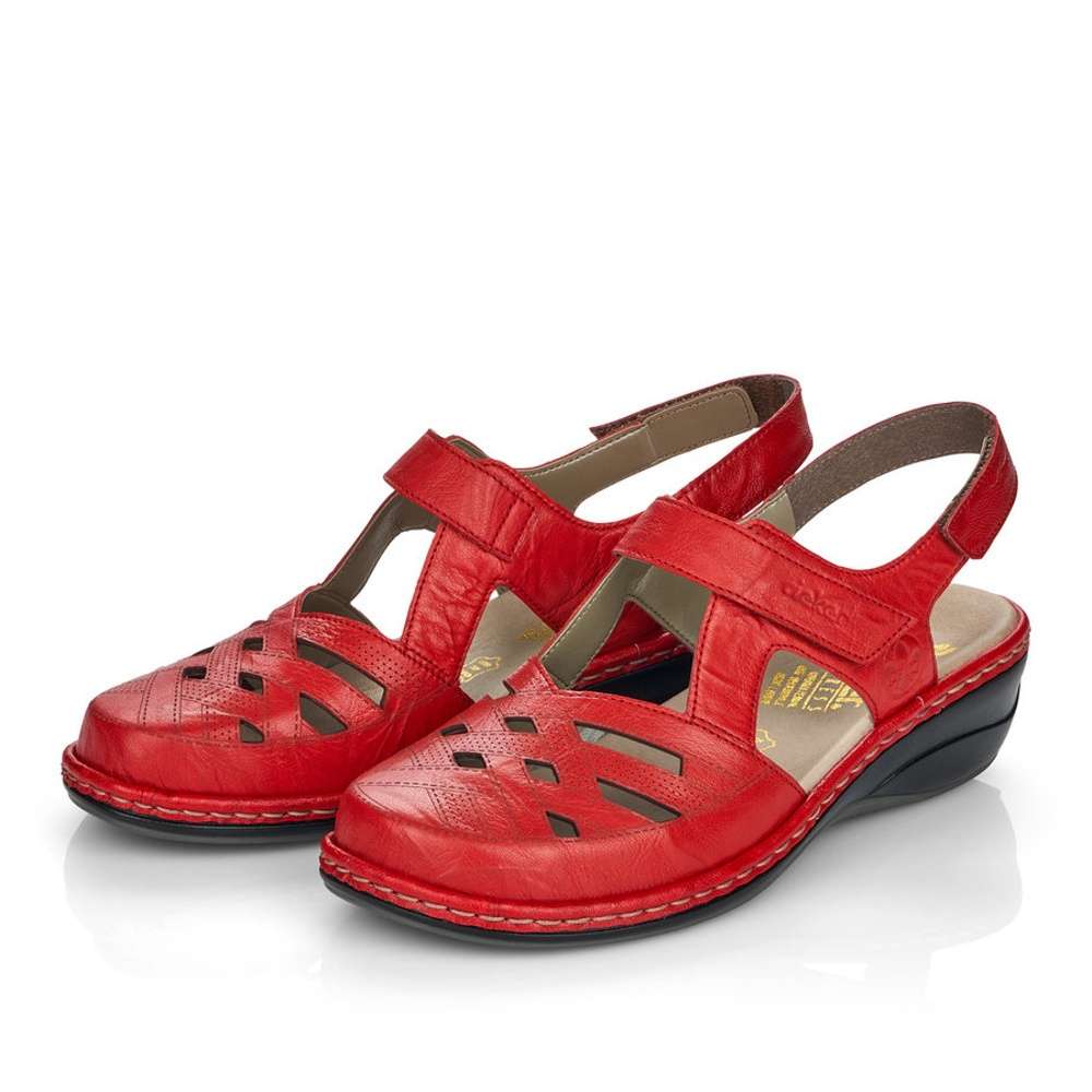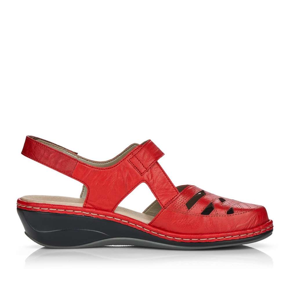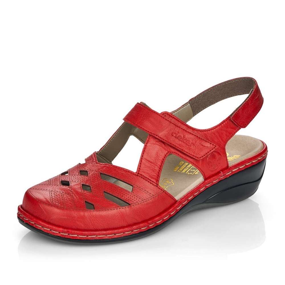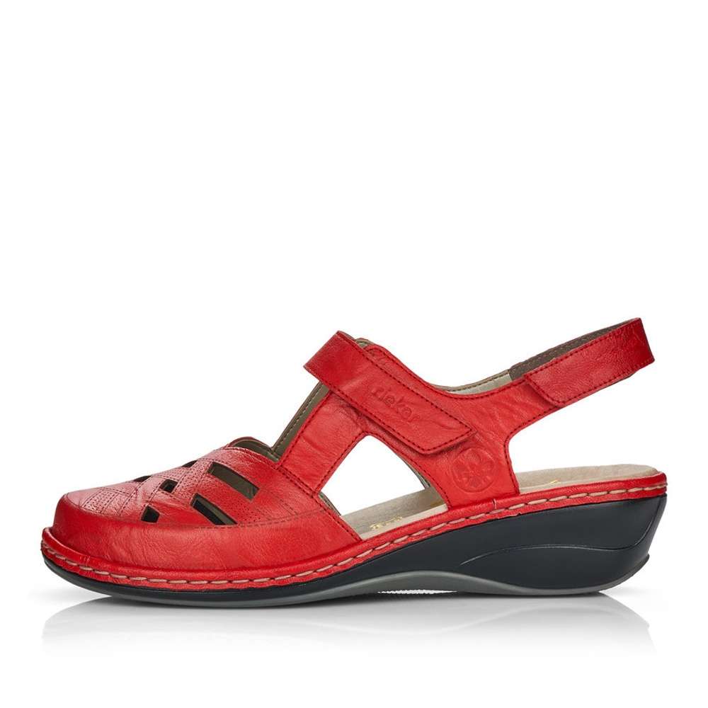 Tento kožený dámský sandál značky RIEKER má plnou špičku.