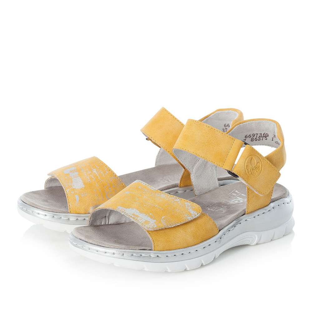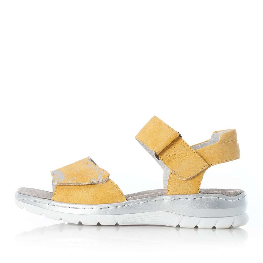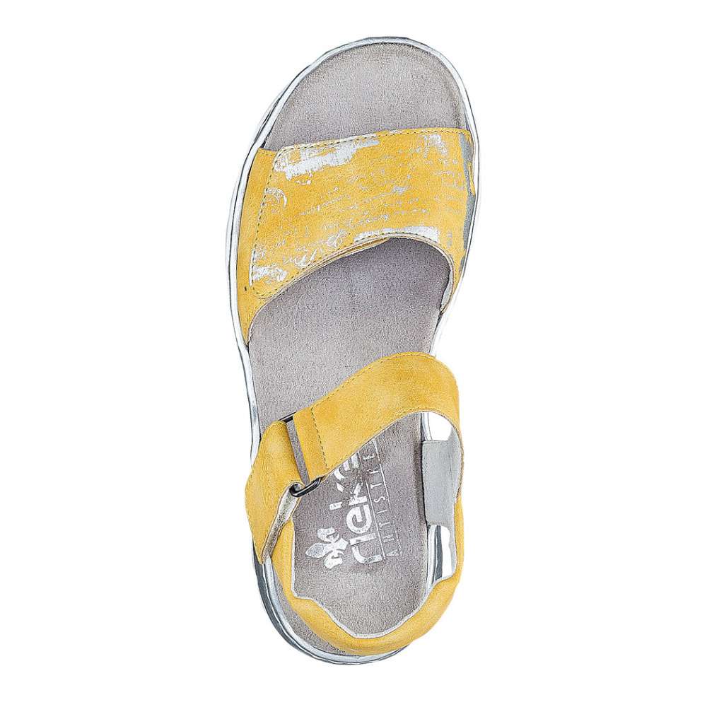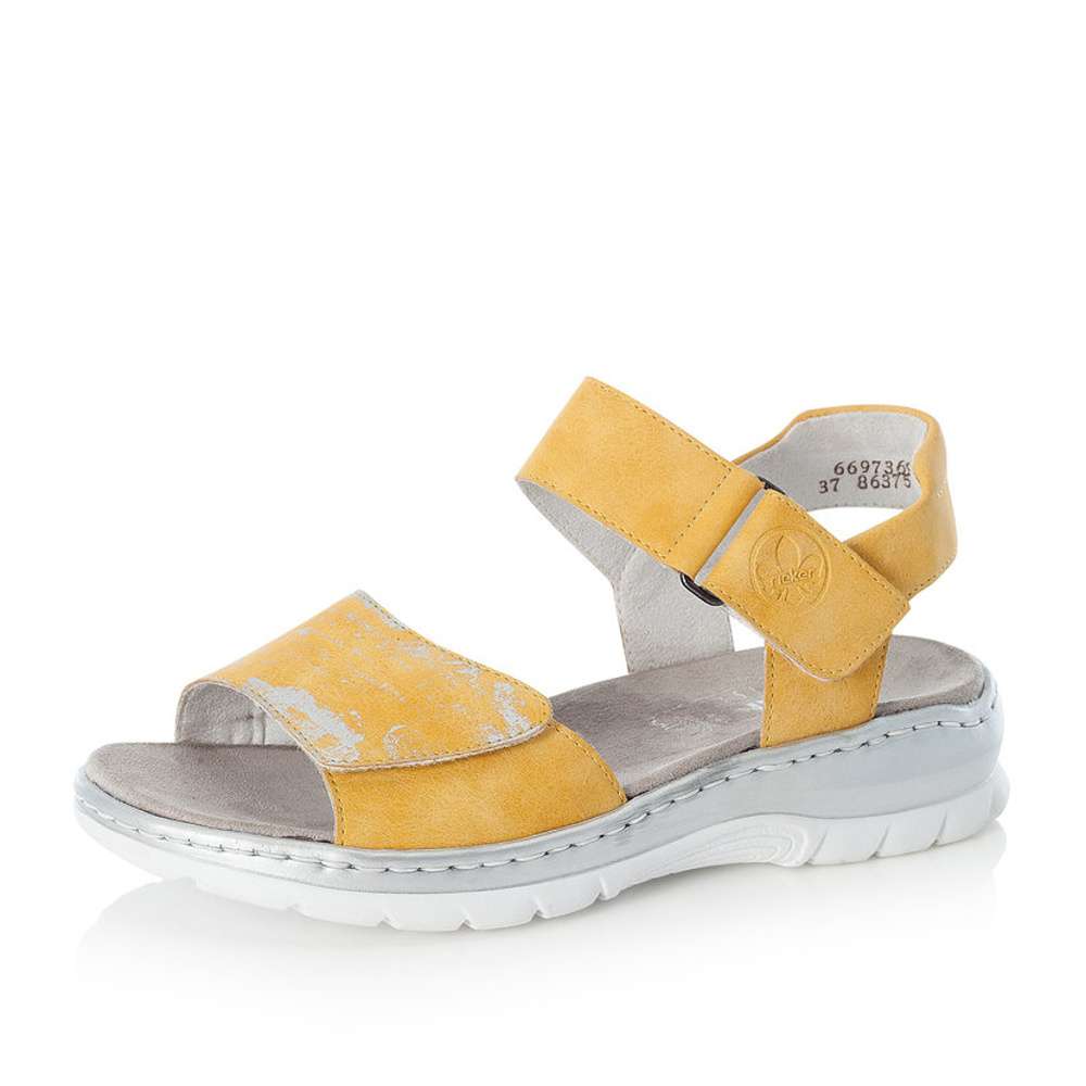 Dámské sandálky, které si Vás získají svým zajímavým materiálem a jednoduchostí, značky RIEKER.