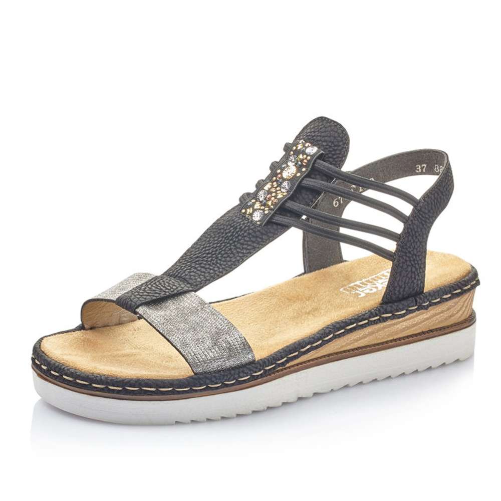 Dámské sandálky s ozdobným páskem a zajímavým řešením pásků přes nárt, značky RIEKER.