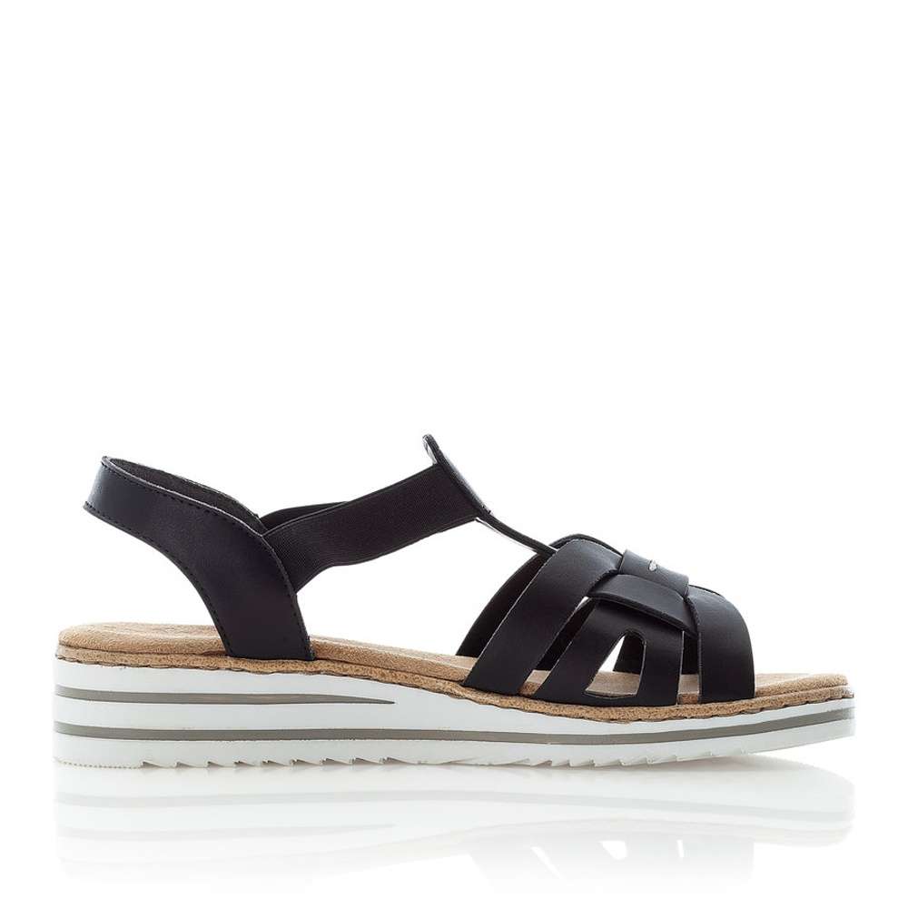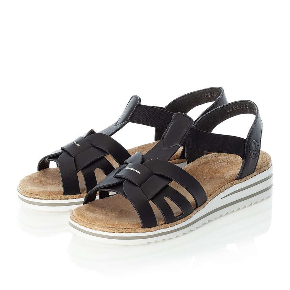 Dámské sandály s páskami v černé barvě, značky RIEKER.