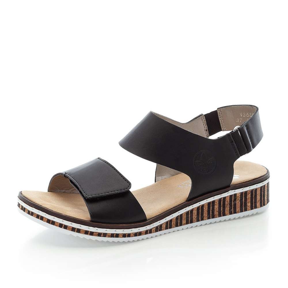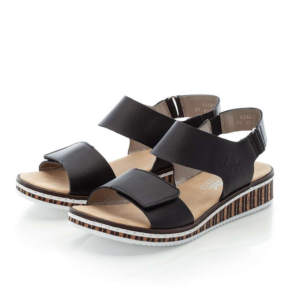 Klasické sandály s širokými páskami v černé barvě, značky RIEKER.