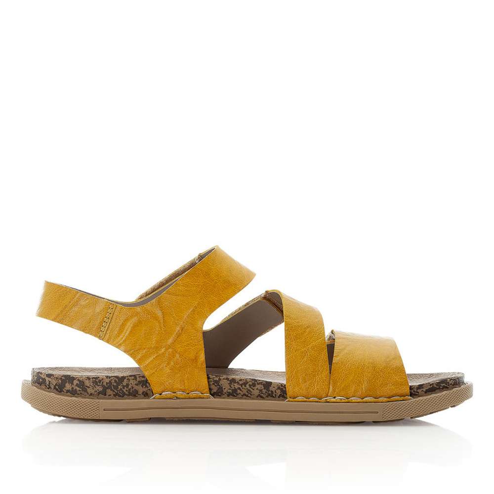 S těmito sandálky vyrobenými z hladké přírodní usně v krásné žluté barvě zaujmete už na první pohled. Všechny tři pásky jsou na suchý zip, díky nimž si boty upravíte přímo na Vaše chodidlo.
