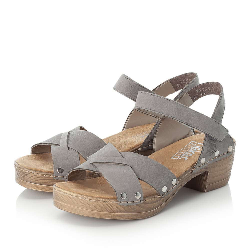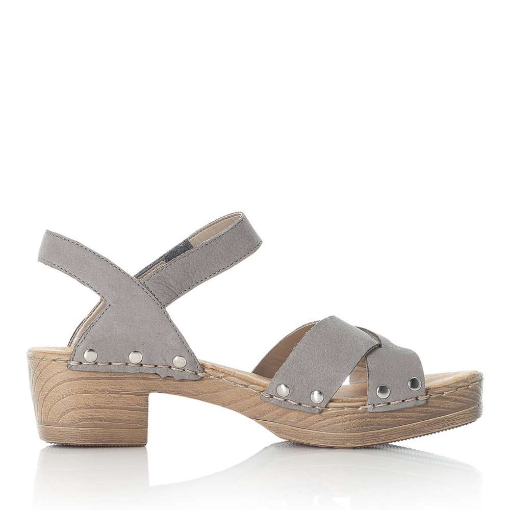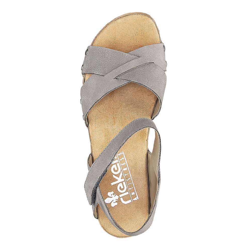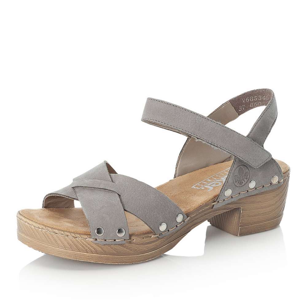 Šedé dámské sandály ze semišového materiálu, značky RIEKER.