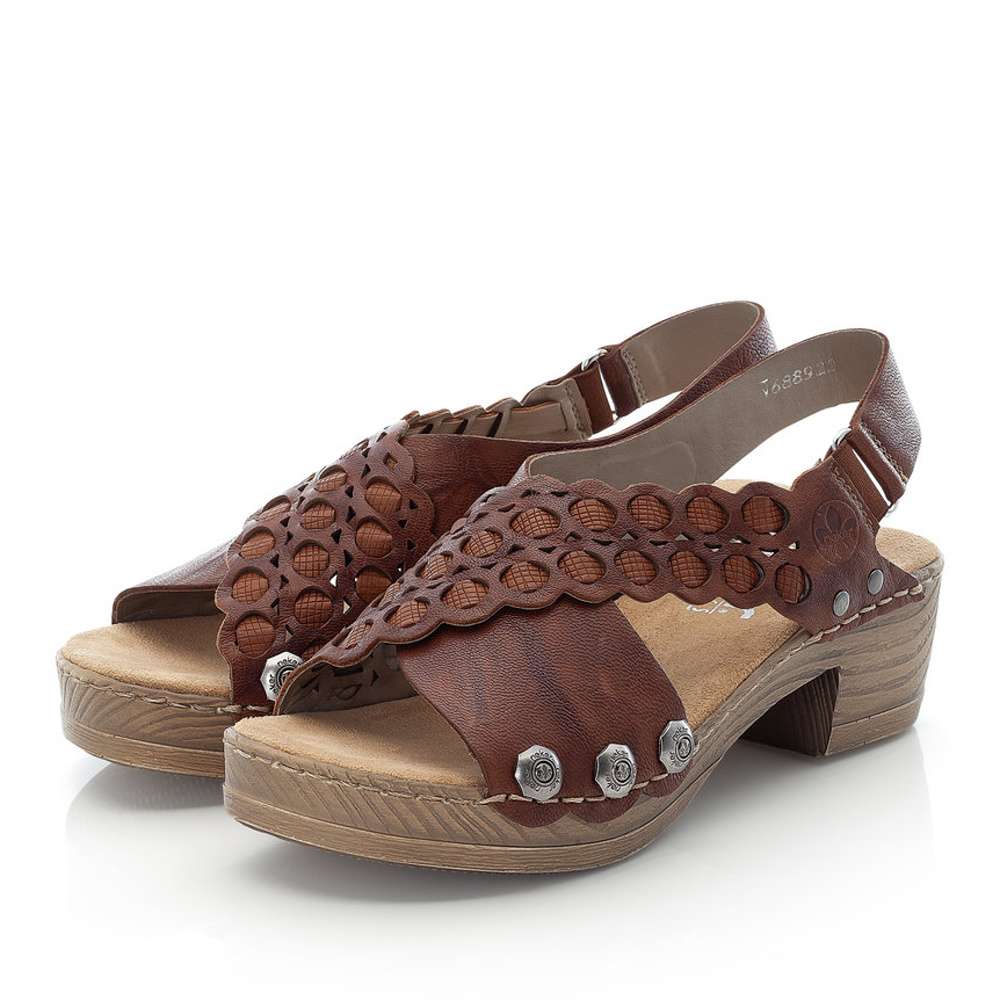 Tyto luxusní sandálky vyrobeny z přírodní usně jsou velice pestré, proto zaujmou každého už na první pohled. Svršek je ze dvou širších překřížených pásků, z nichž jeden je s nápaditým vzorem. Pásek v patní části drží na pružné gumičce, proto se Vám bude obuv dobře nazouvat. Sandálky mají měkkou a pohodlnou stélku s podešví vysokou asi cca 4, 9 cm zvýrazněnou prošitím a kovovými prvky. Tyto botičky budou Vaší nepostradatelnou součástí botníku.