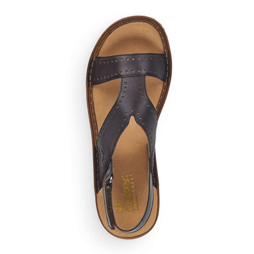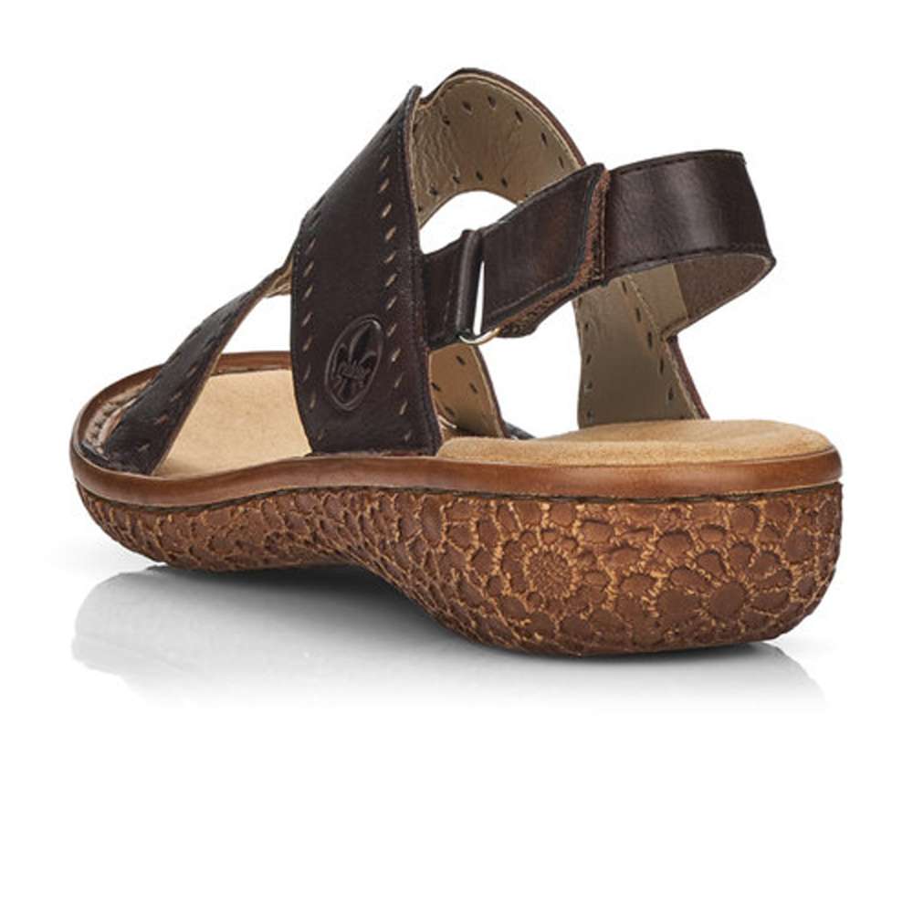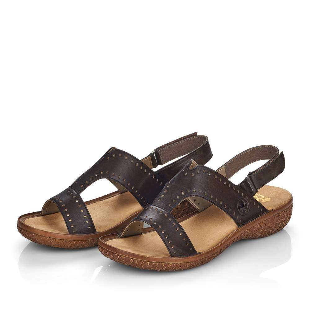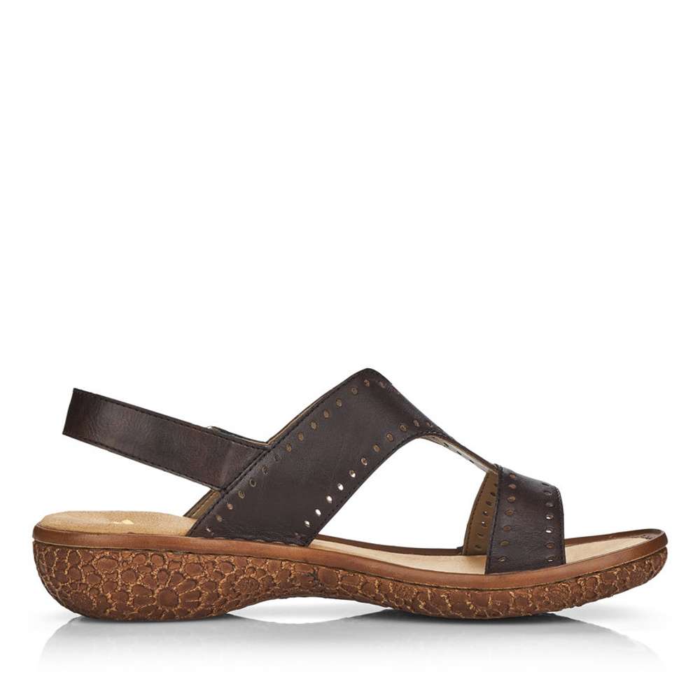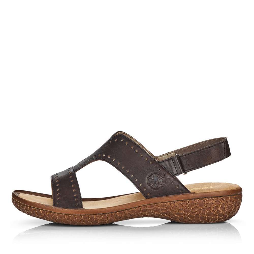 Dámské hnědé sandály s jemnou perforací, značky RIEKER.