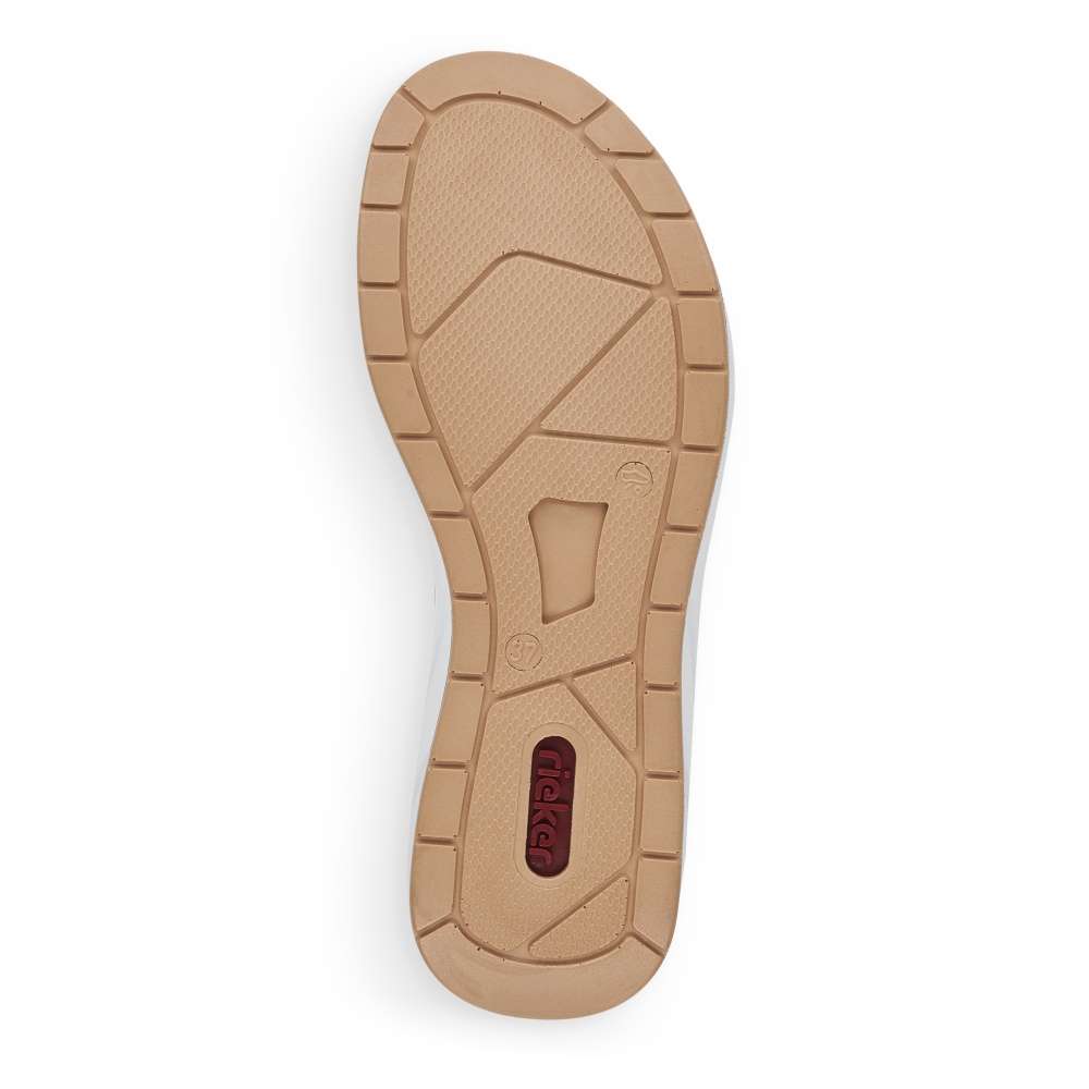 Dámský sandál značky RIEKER bude skvělým společníkem v letních dnech. Hladký svršek je tvořen páskem na suchý zip v přední části a páskem s pružnou gumičkou kolem kotníku, který poslouží ke snadnému obutí. Měkká stélka a zvýšená podešev vybavená technologií Antistress zajistí maximální komfort při chůzi. Tímto jednoduchým kouskem skvěle doplníte Váš outfit při procházkách i nakupování. Technologie: Antistress – podešev je díky této technologii lehká, flexibilní, absorbuje nárazy při došlapu a snadno se přizpůsobí každé noze.