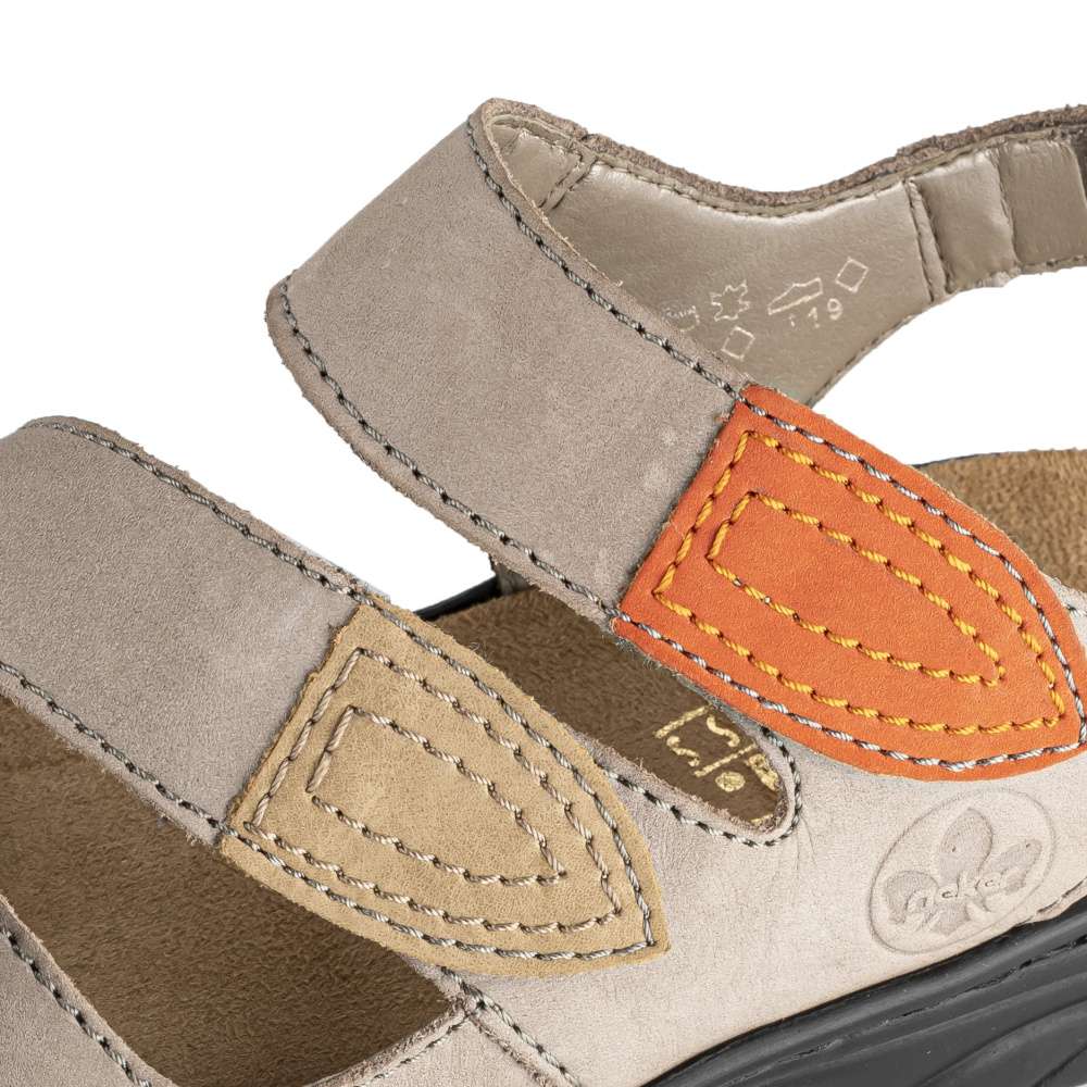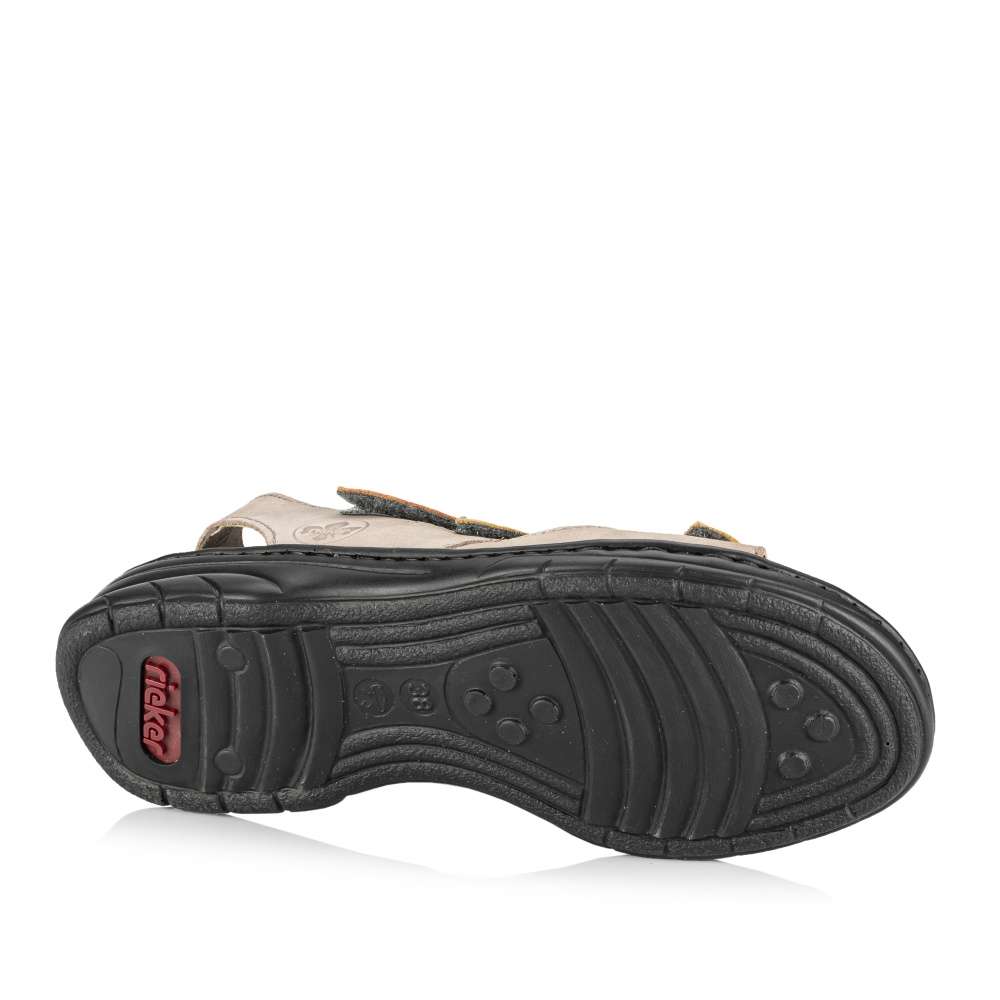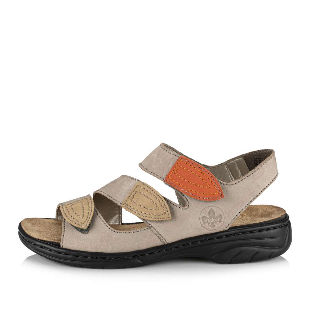 Dámské sandály značky RIEKER Vás zaujmou svým designem. Hladký svršek vyrobený z přírodní usně je zdoben prošívanými prvky na jednotlivých páscích, které jsou opatřeny suchým zipem pro přizpůsobení se obuvi dle Vašich požadavků. Měkká vyjímatelná stélka a podešev vybavená technologií Antistress zajistí maximální komfort při chůzi. Tímto kouskem doplníte nejeden letní outfit, a přesto se budete cítit pohodlně při pochůzkách po městě.