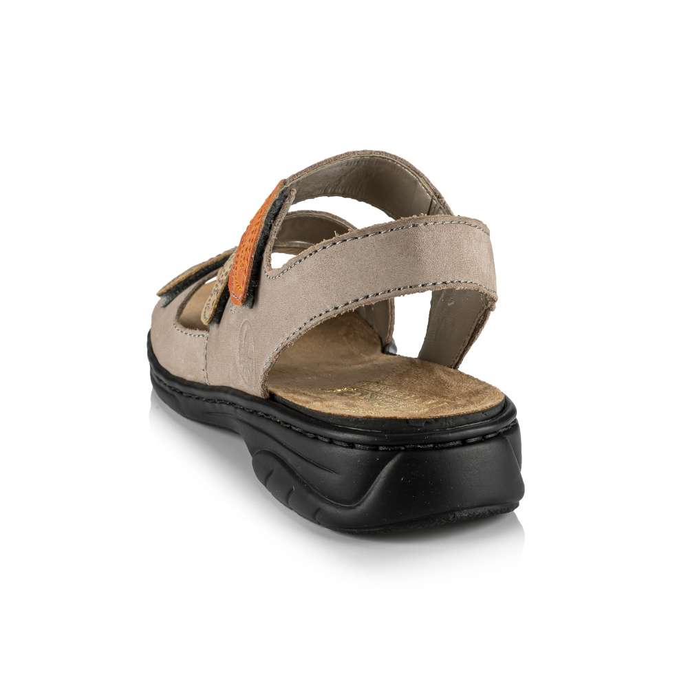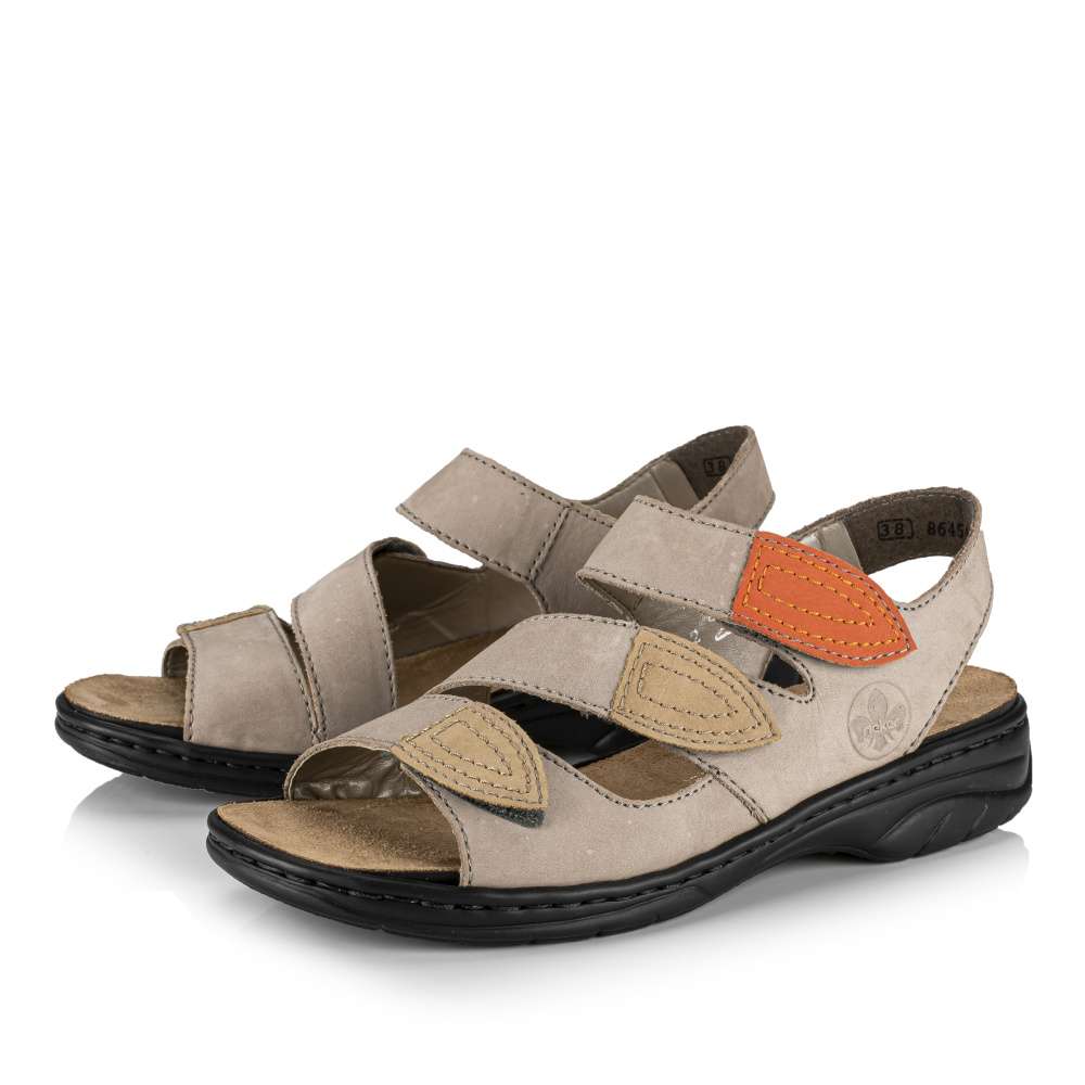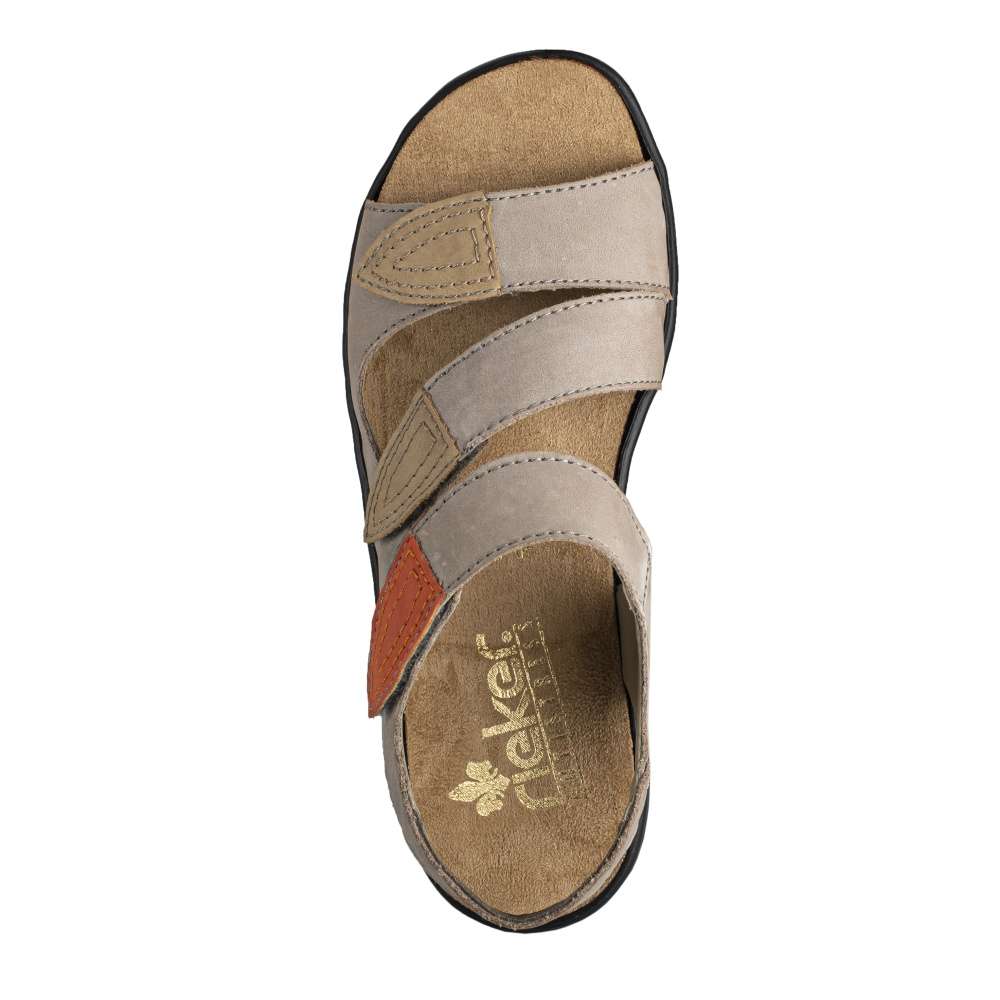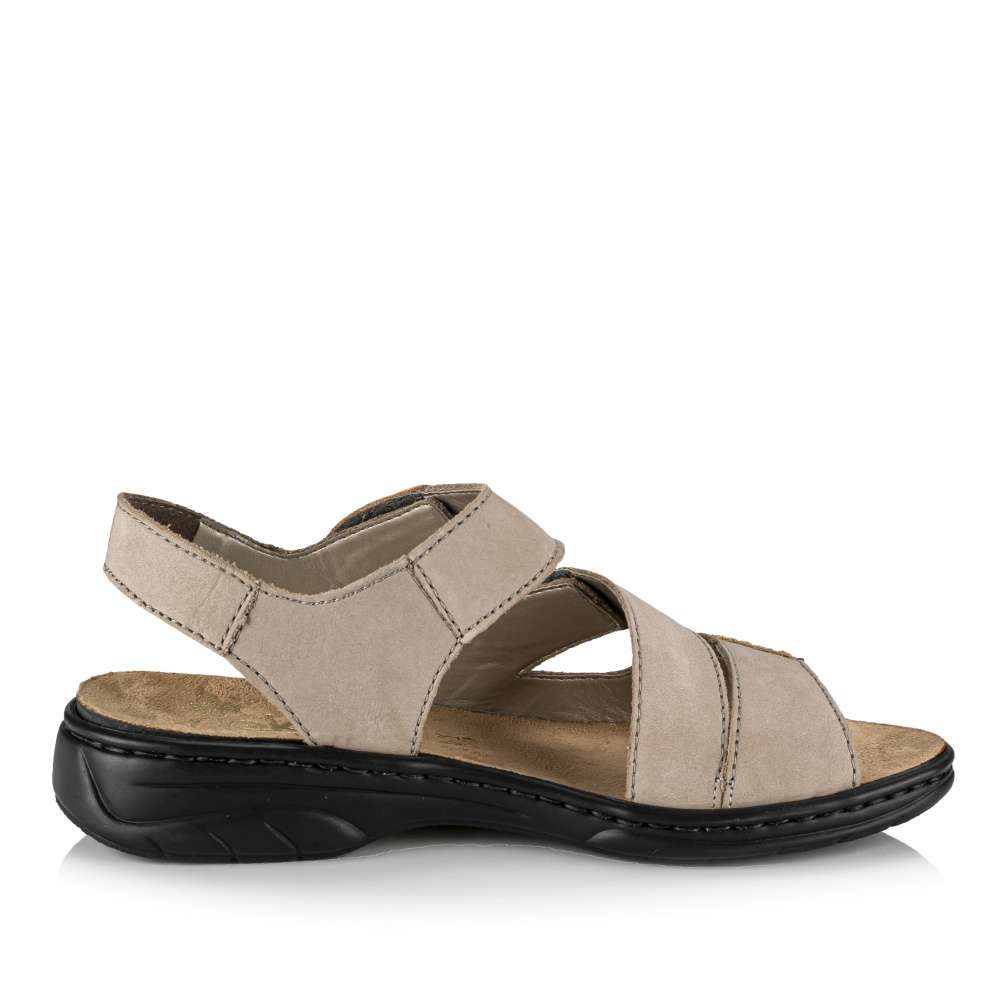 Dámské sandály značky RIEKER Vás zaujmou svým designem. Hladký svršek vyrobený z přírodní usně je zdoben prošívanými prvky na jednotlivých páscích, které jsou opatřeny suchým zipem pro přizpůsobení se obuvi dle Vašich požadavků. Měkká vyjímatelná stélka a podešev vybavená technologií Antistress zajistí maximální komfort při chůzi. Tímto kouskem doplníte nejeden letní outfit, a přesto se budete cítit pohodlně při pochůzkách po městě.