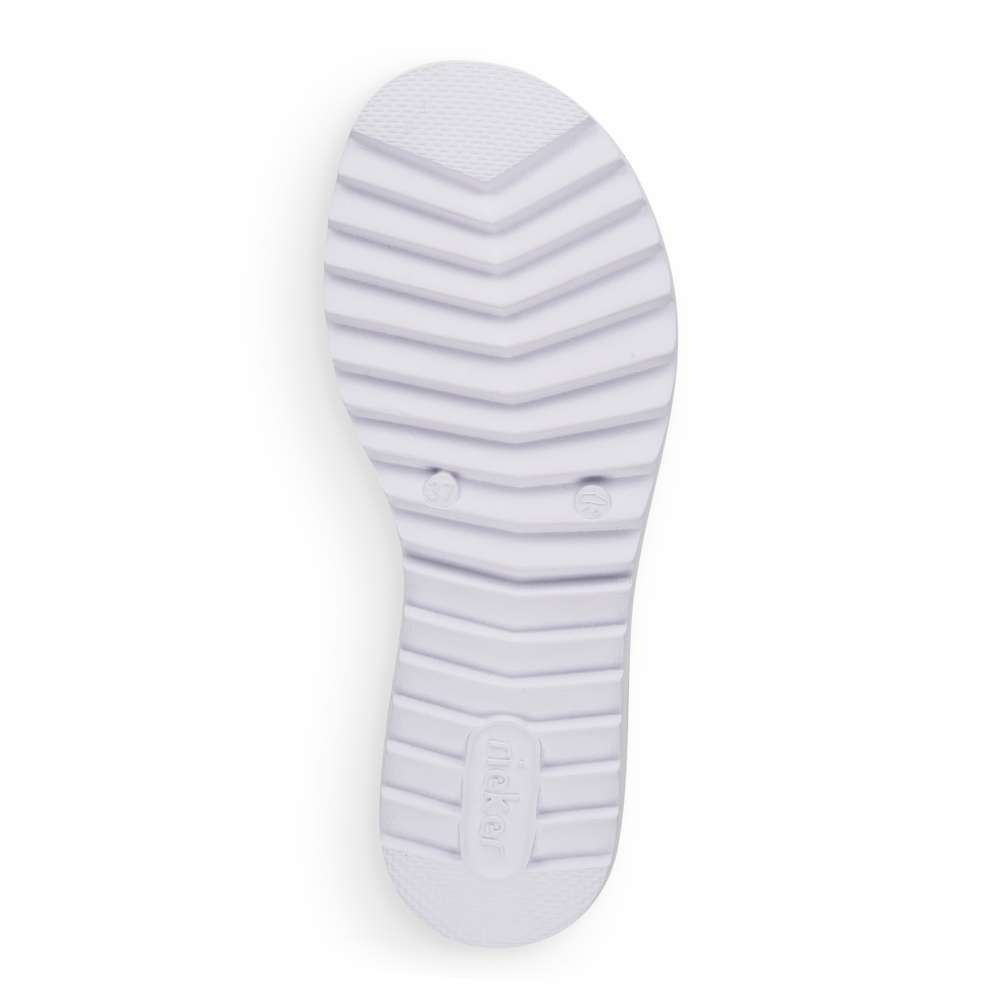 Dámské sandálky RIEKER doladí každý letní outfit díky svému módnímu vzhledu. Křížené pásky přes nárt s netradičním vzorem jsou šité z pružné gumičky pro jednodušší obutí a přizpůsobení přímo k Vaší noze. Kvalitní měkká stélka zajistí, aby každý Váš krok byl pohodlný a vroubkovaná podešev dolaďuje celkový vzhled obuvi. Tento úžasný model nebude chtít zout a unosíte je celé léto jak na koupaliště, do práce, tak i na procházky. Technologie: Antistress – podešev je díky této technologii lehká, flexibilní, absorbuje nárazy při došlapu a snadno se přizpůsobí každé noze.