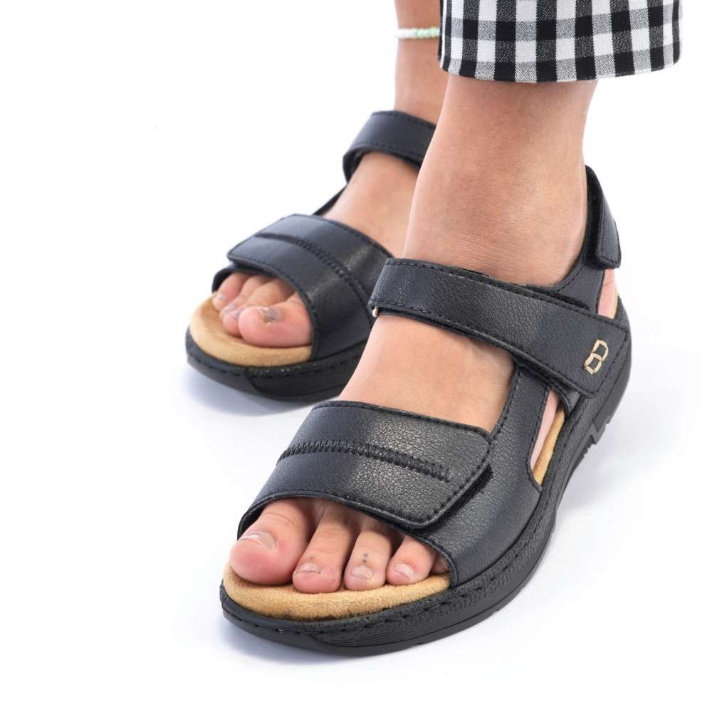 Pohodlné a zároveň krásné dámské sandály od značky RIEKER budou Vaším skvělým společníkem. Kožený svršek černé barvy je na předním pásku ozdoben zajímavým prošíváním, na zadním kontrastní výšivkou a na boku pak vytlačeným logem značky. Všechny pásky si snadno upravíte dle požadavků díky zapínáním na suché zipy a měkká stélka příjemná na došlap se dá snadno vyjmout a vyměnit. Podešev z kvalitního materiálu Vám díky své výšce přidá pár centimetrů. Botičky budou skvěle vypadat jak s kraťasy, tak i se sukněmi. Technologie: Antistress – podešev je díky této technologii lehká, flexibilní, absorbuje nárazy při došlapu a snadno se přizpůsobí každé noze. Tato bota je vybavena vyjímatelnou stélkou.