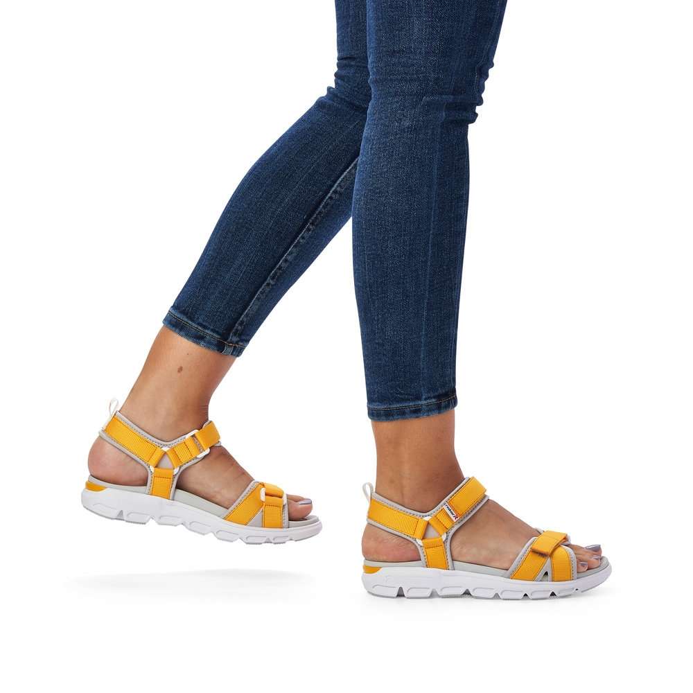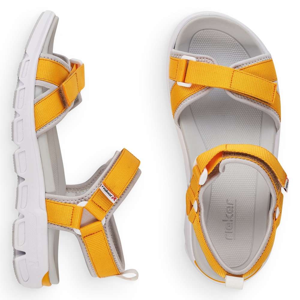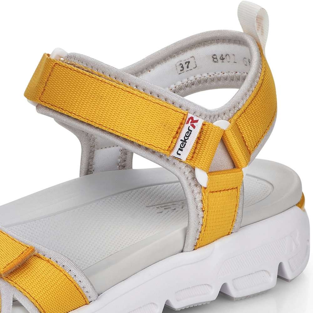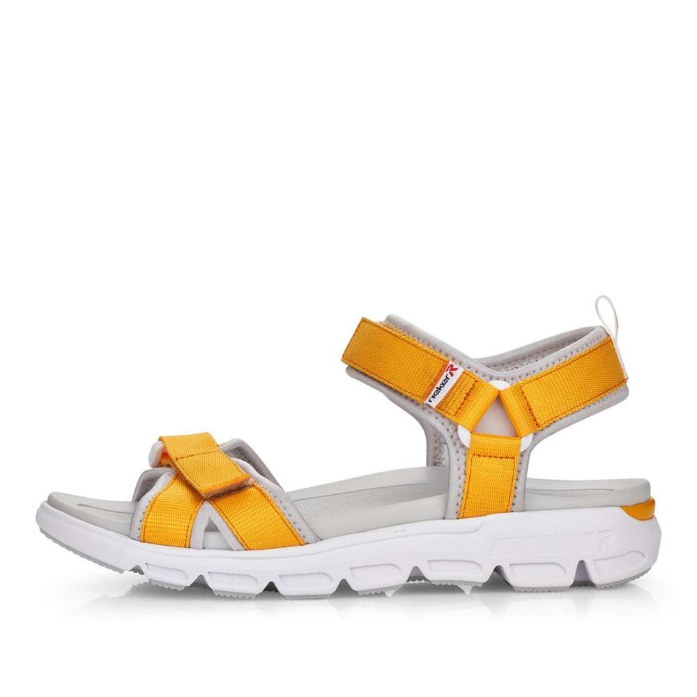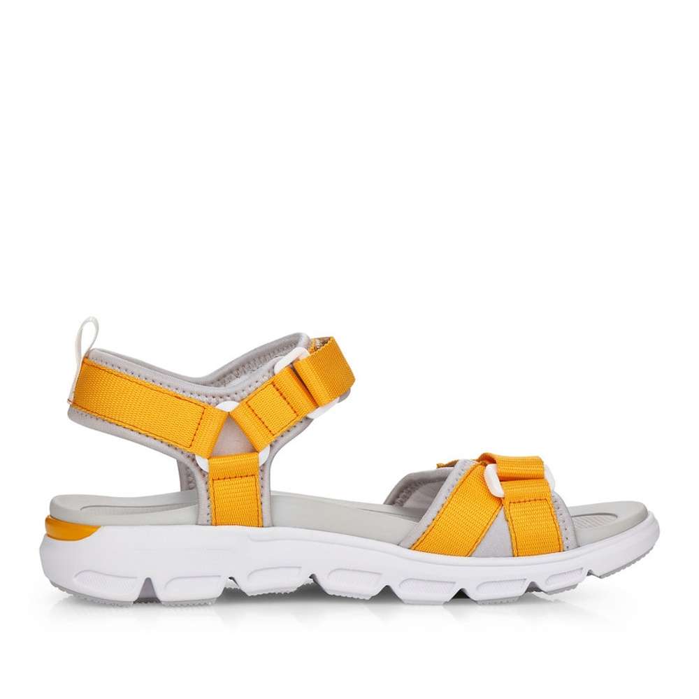 Tyto zajímavé dámské sandálky značky RIEKER potěší každou ženu bez rozdílu věku. Noha se v botě upevní pomocí suchého zipu. Na zapínání v oblasti kotníku se nachází logo značky. K botám si můžete vzít třeba kalhoty nebo kraťasy a vyrazit na menší procházku. Tak neváhejte a kupujte.