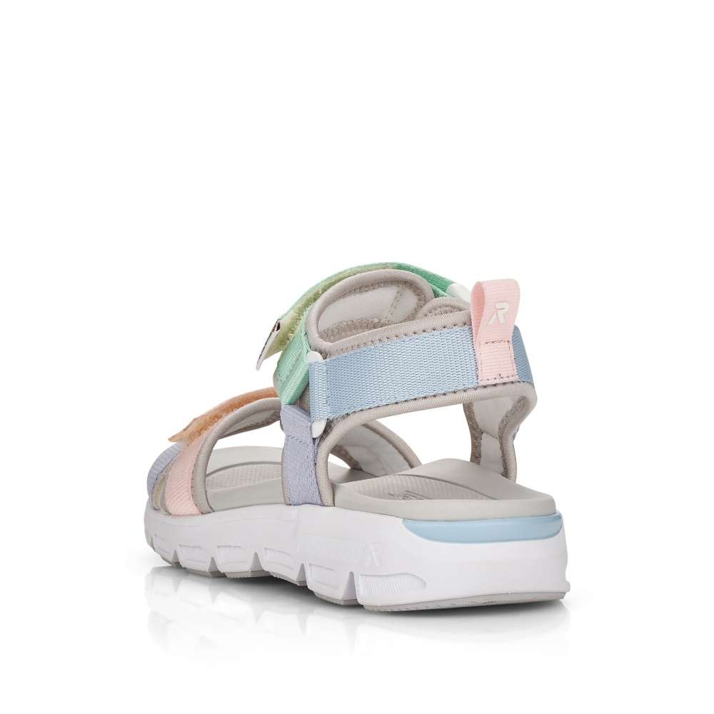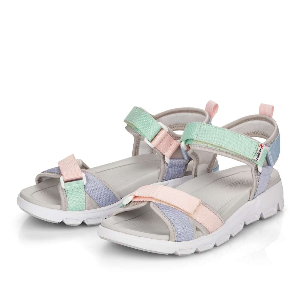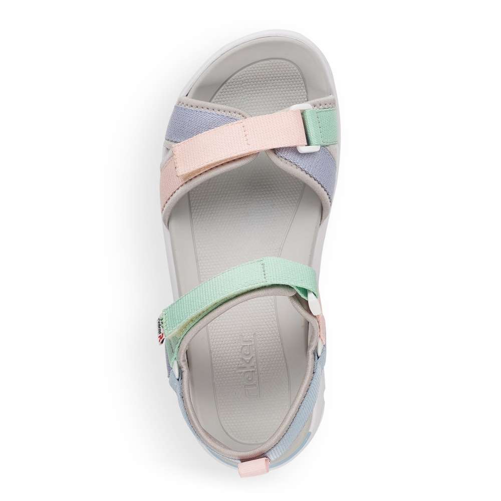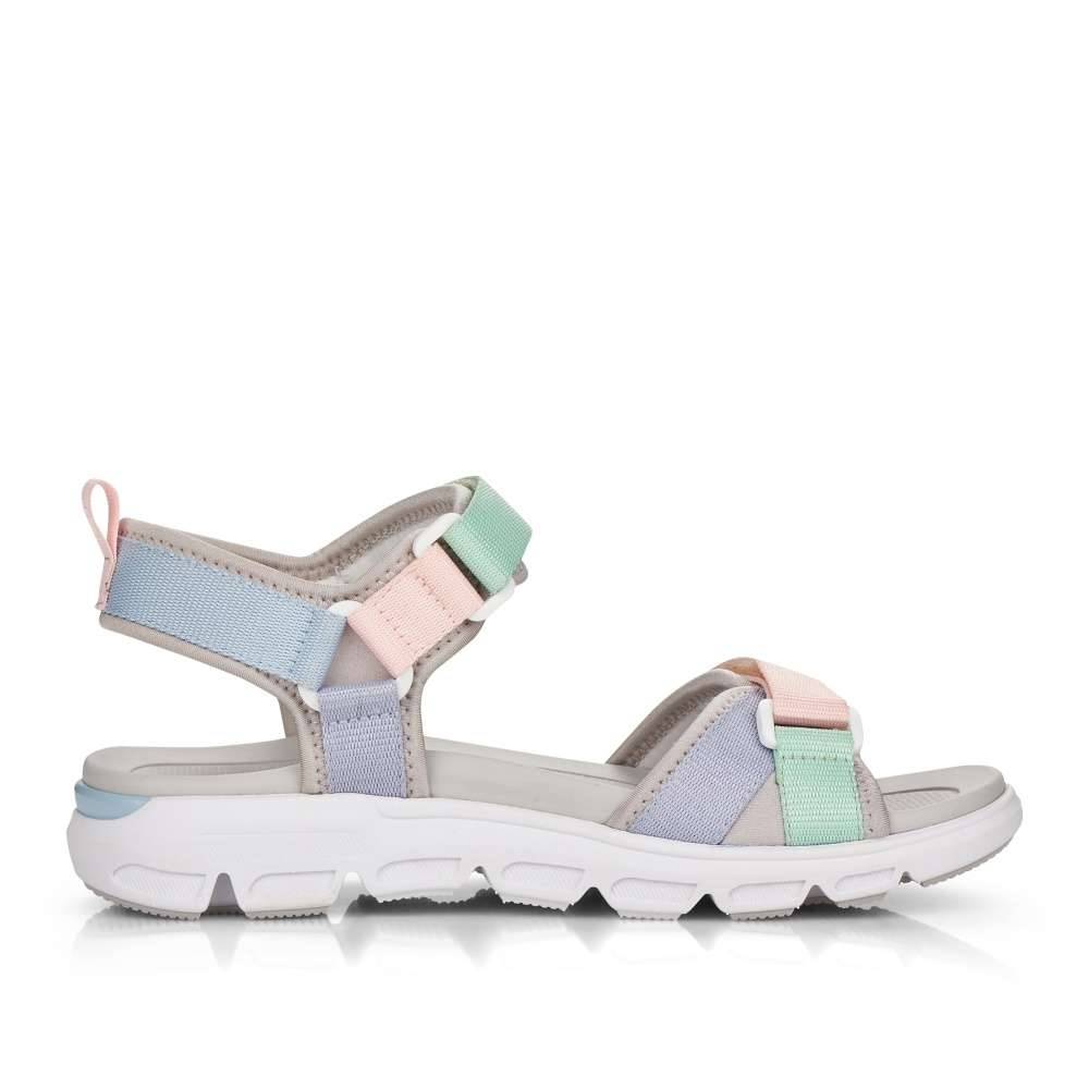 Dámské sandály značky RIEKER jsou skvělým společníkem v letních dnech. Svršek je tvořen několika pásky, které si lze nastavit pomocí suchých zipů dle Vašich požadavků. Podešev vybavená technologií Antistress zajistí maximální komfort při chůzi. Tento originální model oživí každý Váš outfit.