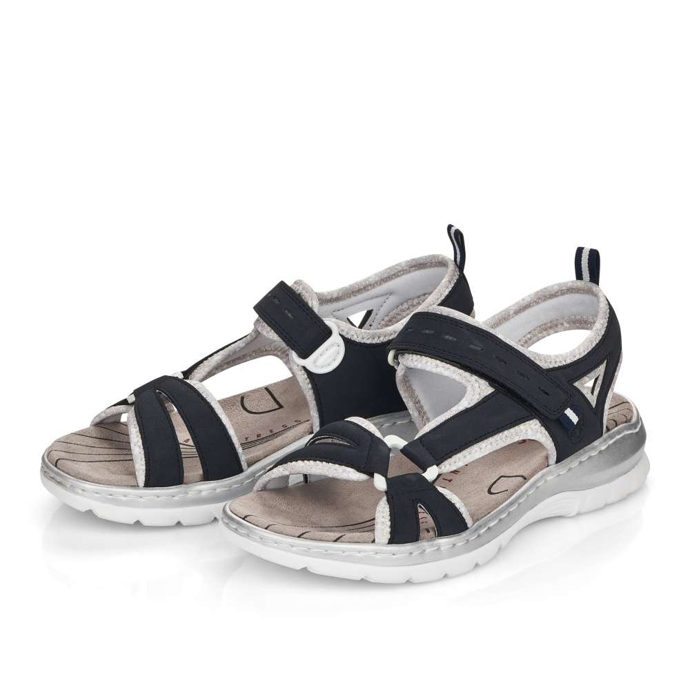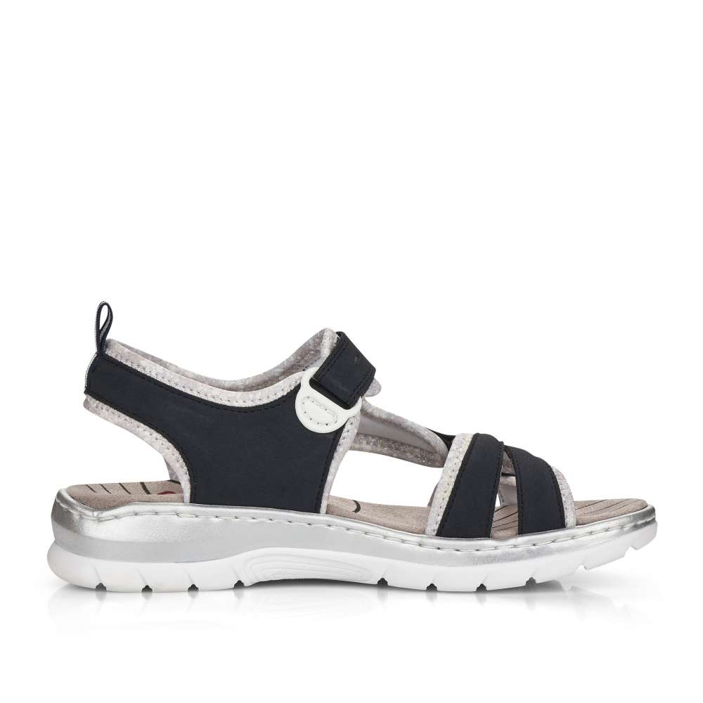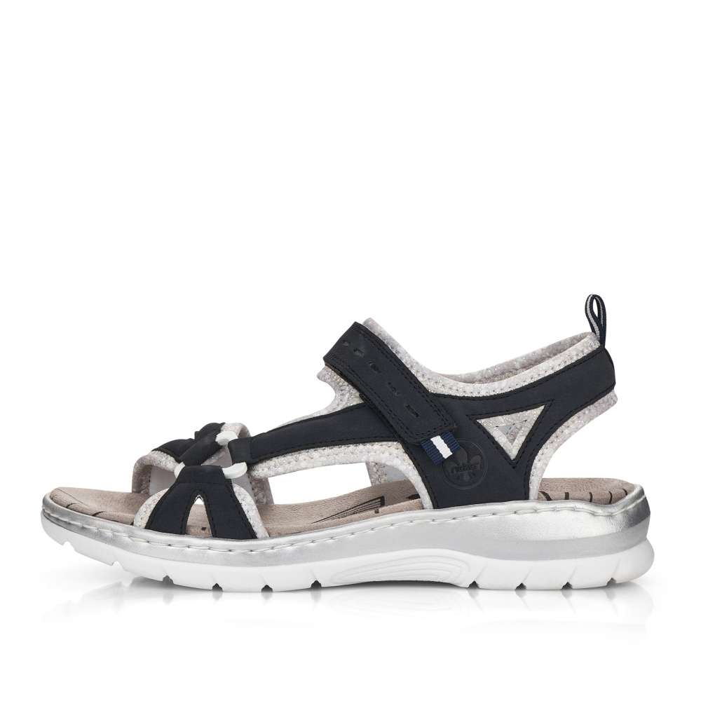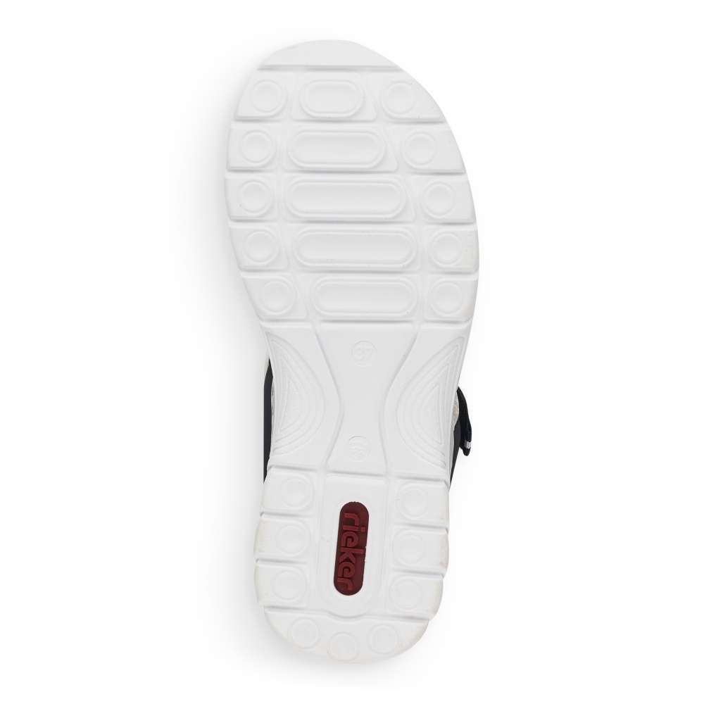 Sportovnější vzhled těchto sandálků značky RIEKER z nich dělá obuv vhodnou snad ke každé příležitosti. Pásky s příjemně měkkou podšívku v kontrastní barvě je zdobná jemným prošíváním a vytlačeným logem značky. Snadné nazouvání a přizpůsobení obuvi zajistí nártový pásek se zapínáním na suchý zip. Zajisté oceníte nízkou podešev a měkkou stélku, díky které jsou vhodné pro celodenní nošení. Tyto sandálky unosíte jak na nákupy do města, tak i na letní dovolené.