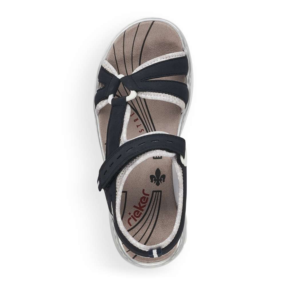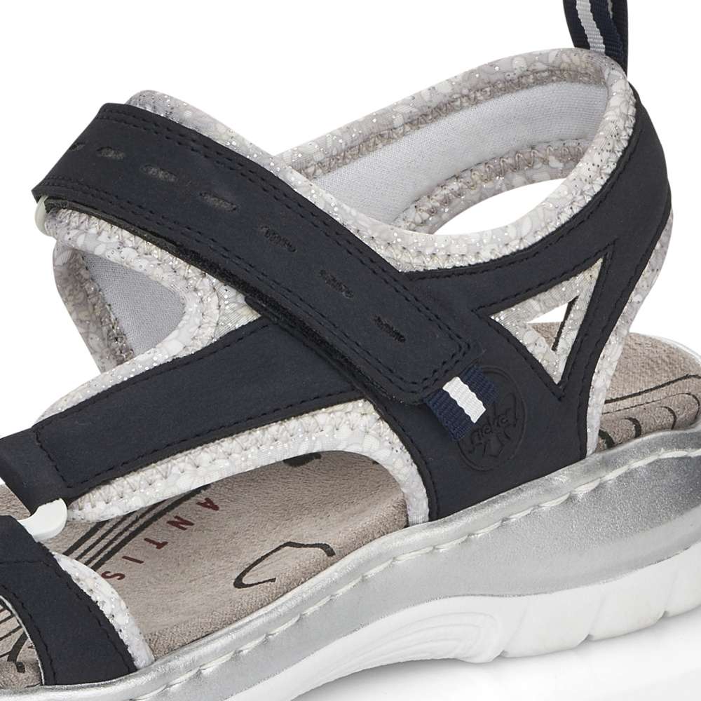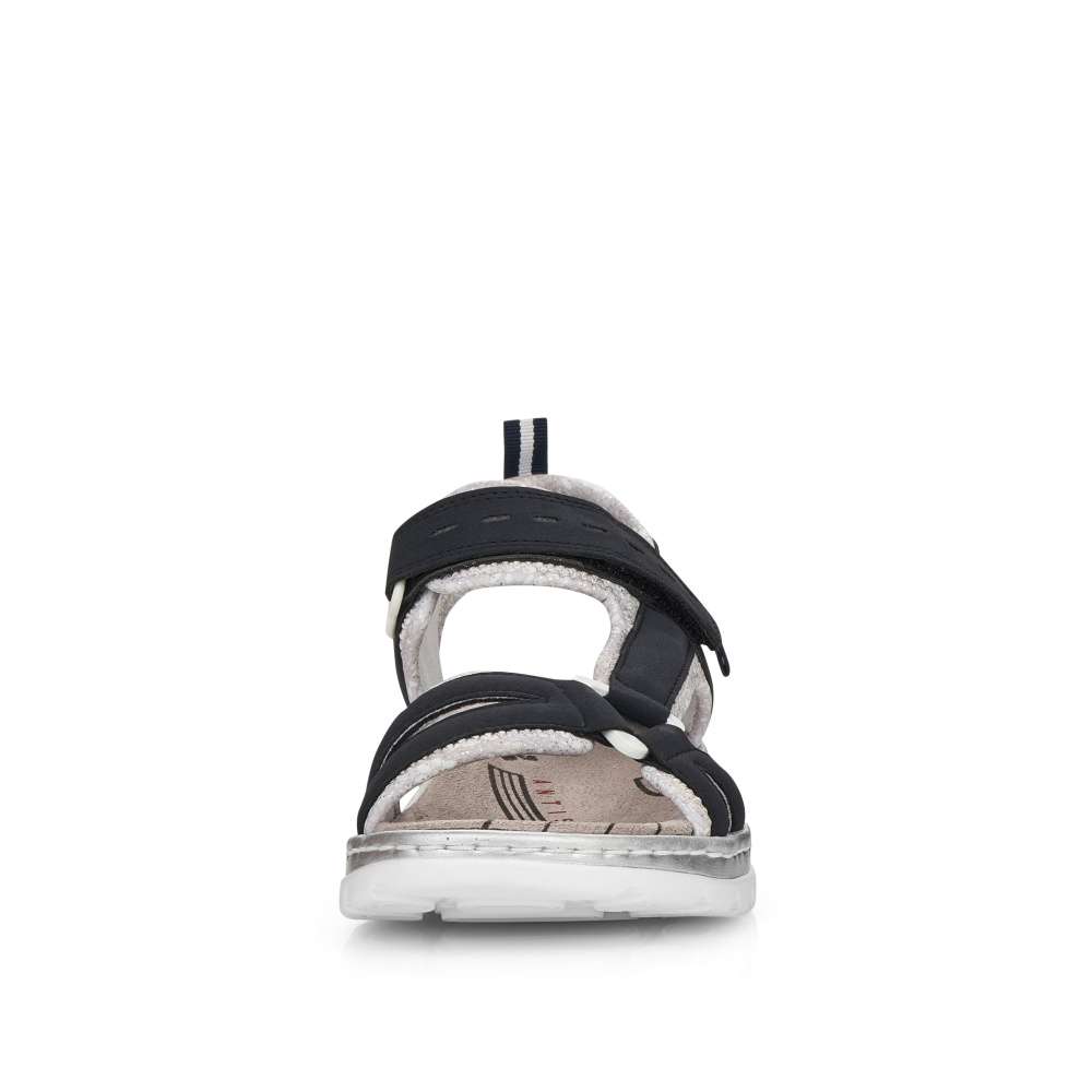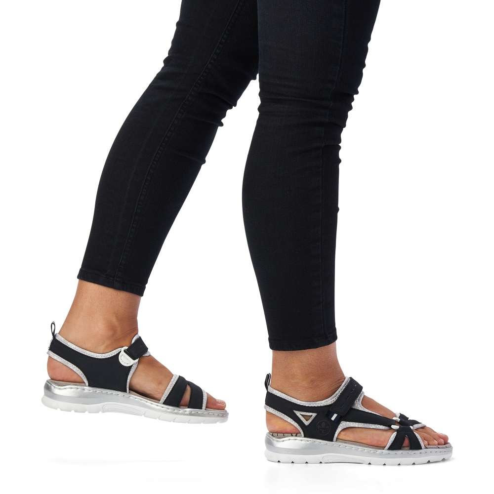Sportovnější vzhled těchto sandálků značky RIEKER z nich dělá obuv vhodnou snad ke každé příležitosti. Pásky s příjemně měkkou podšívku v kontrastní barvě je zdobná jemným prošíváním a vytlačeným logem značky. Snadné nazouvání a přizpůsobení obuvi zajistí nártový pásek se zapínáním na suchý zip. Zajisté oceníte nízkou podešev a měkkou stélku, díky které jsou vhodné pro celodenní nošení. Tyto sandálky unosíte jak na nákupy do města, tak i na letní dovolené.