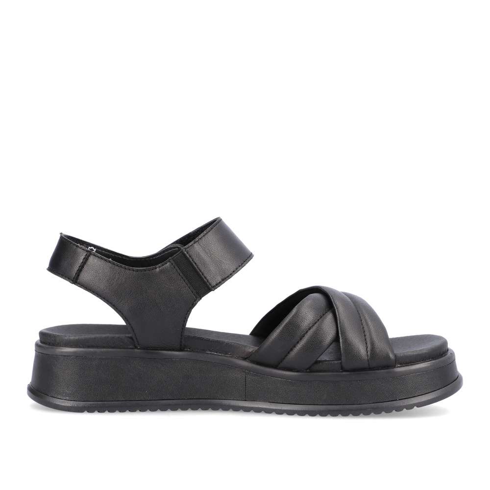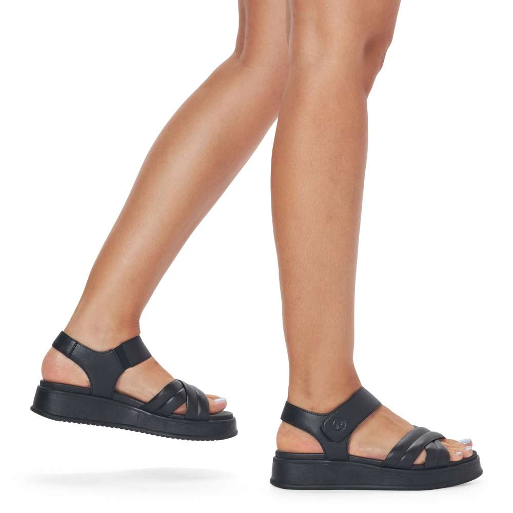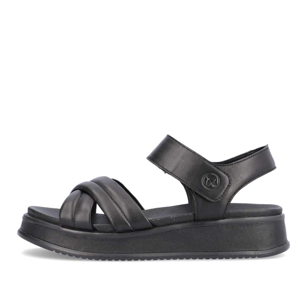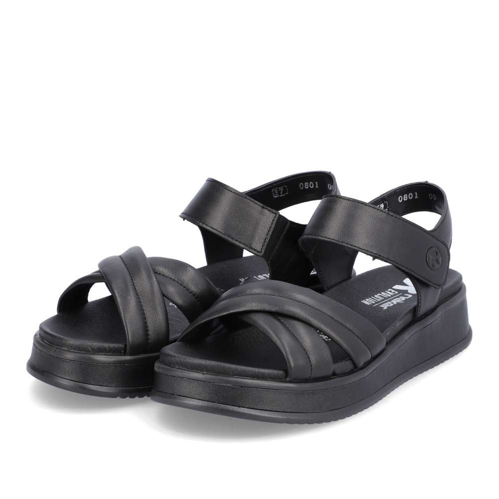 Rieker Revolution je nová řada moderní obuvi s obrovským důrazem na komfort a pohodlí i při celodenním nošení. Tyto černé sandály značky Rieker vyrobené z hladké kůže jsou dokonalým univerzálním kouskem této sezóny. Díky suchému zipu lze botu obout za okamžik. Nárazy absorbující a velmi lehká podrážka s extra měkkou stélkou zajišťuje pohodlné nošení. Nemusíte už přemýšlet co si obujete k sukni nebo šatům, vždy doladíte oblečení tímto kouskem.