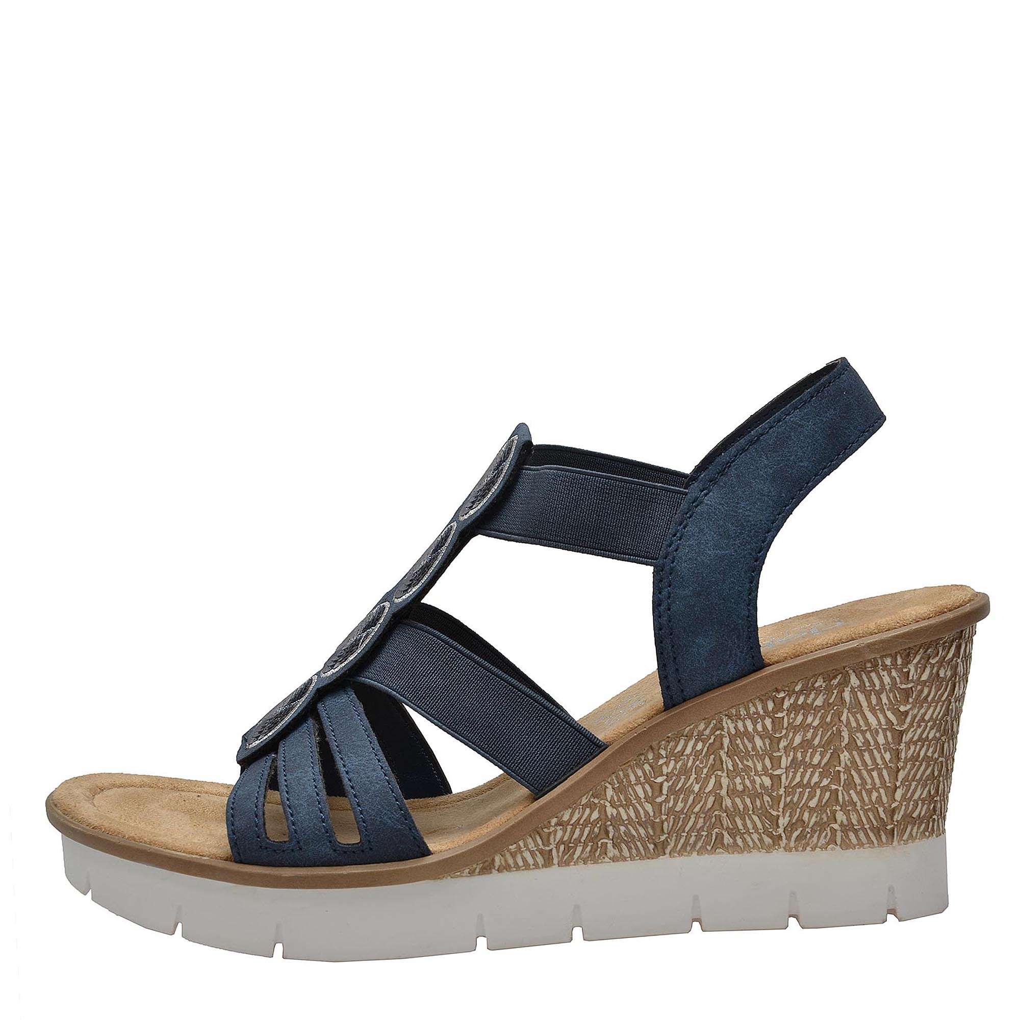 Dámské sandály modré barvy na klínu, značky RIEKER.