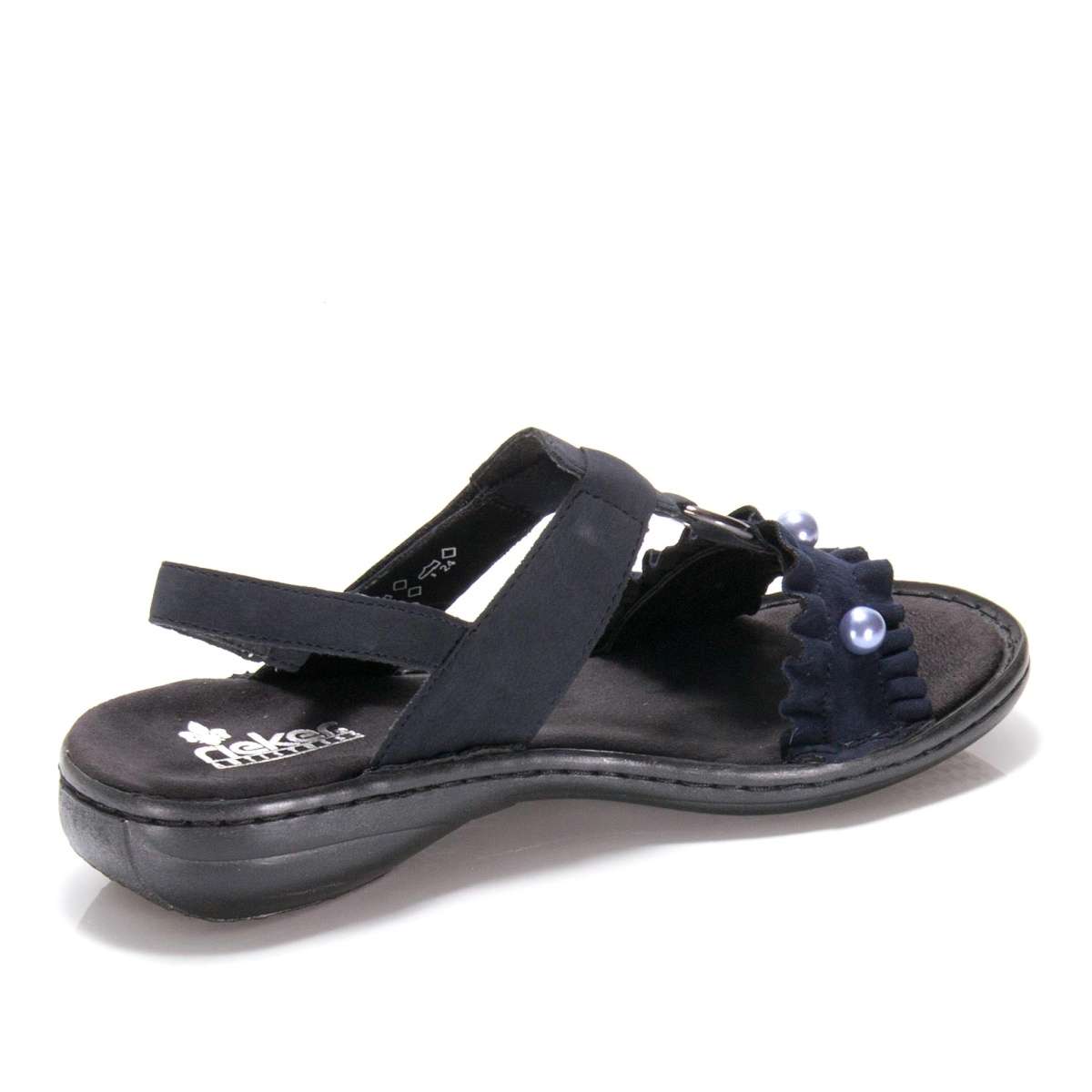 Dámské sandály s kovovou aplikací na nártu a předním páskem zdobeným perlami, značky RIEKER.