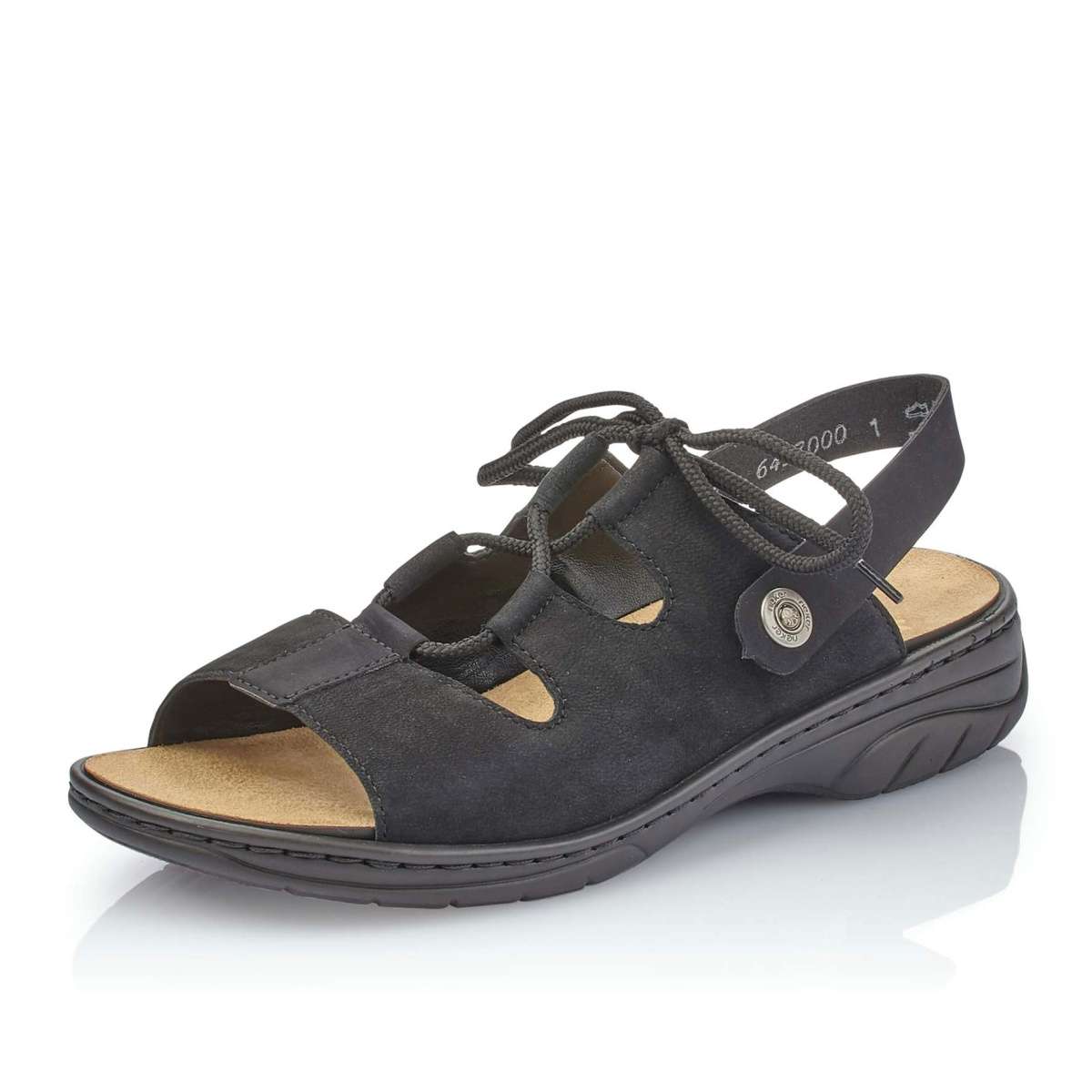 Dámské sandály černé barvy z pravé kůže, značky RIEKER.