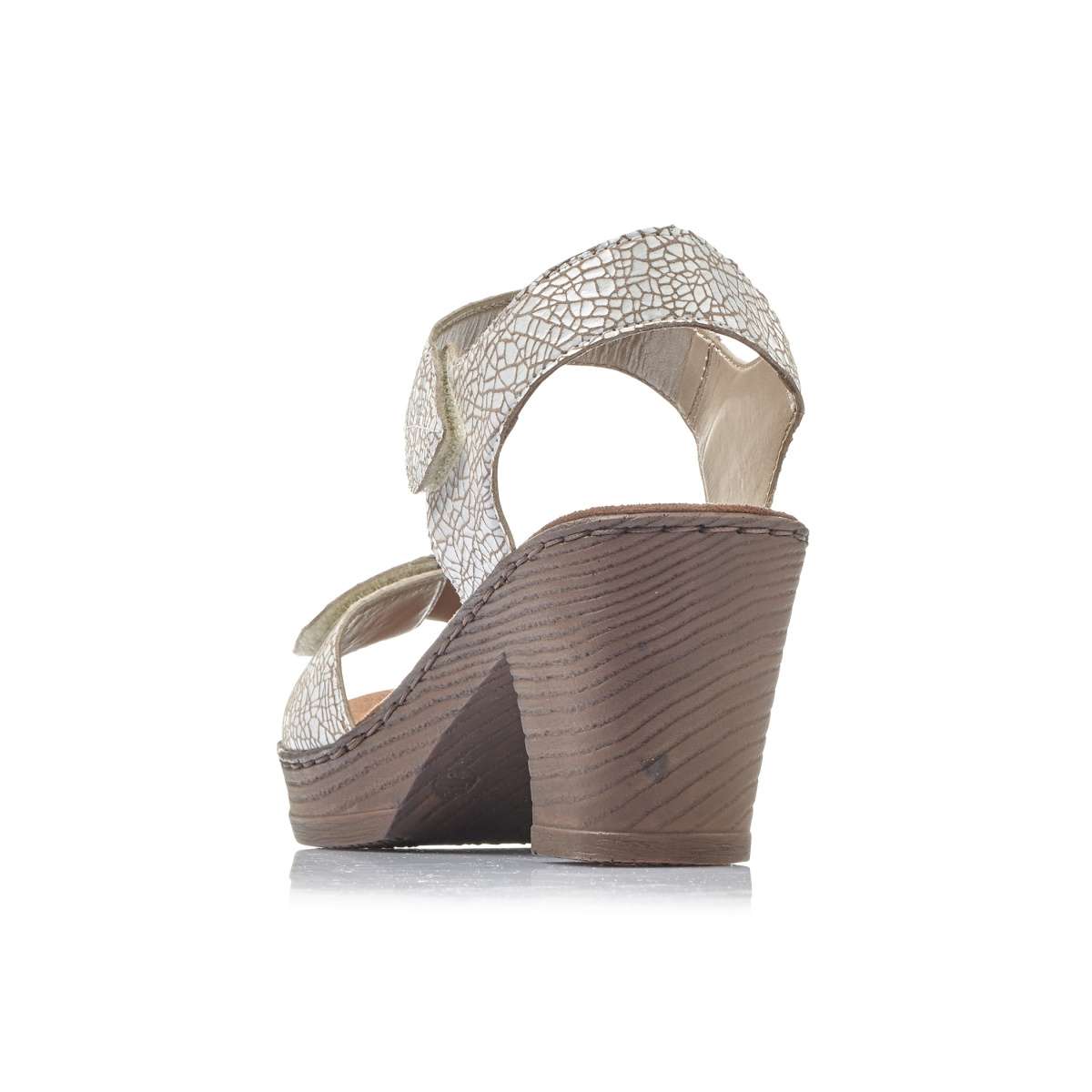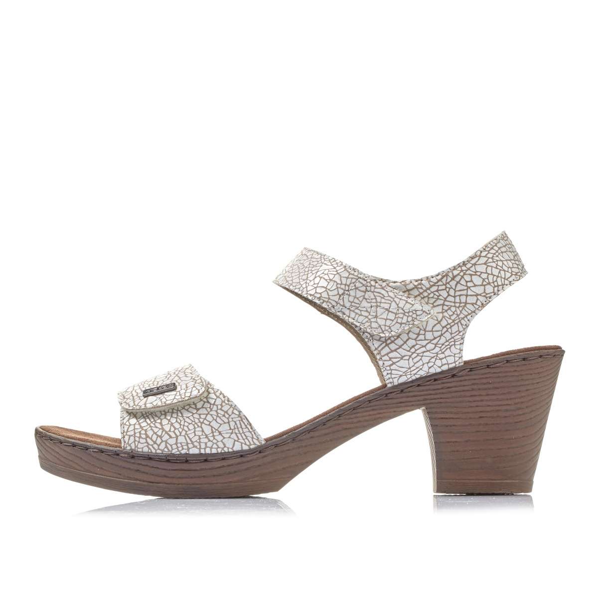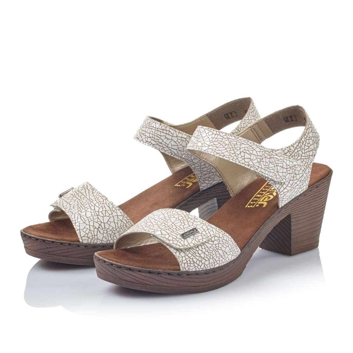 Dámský sandál světlé barvy na středním podpatku, značky RIEKER.