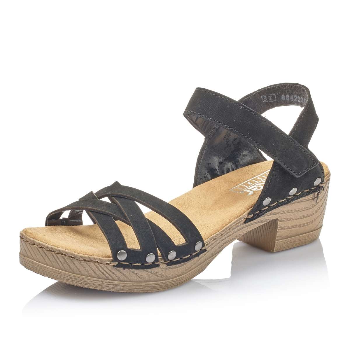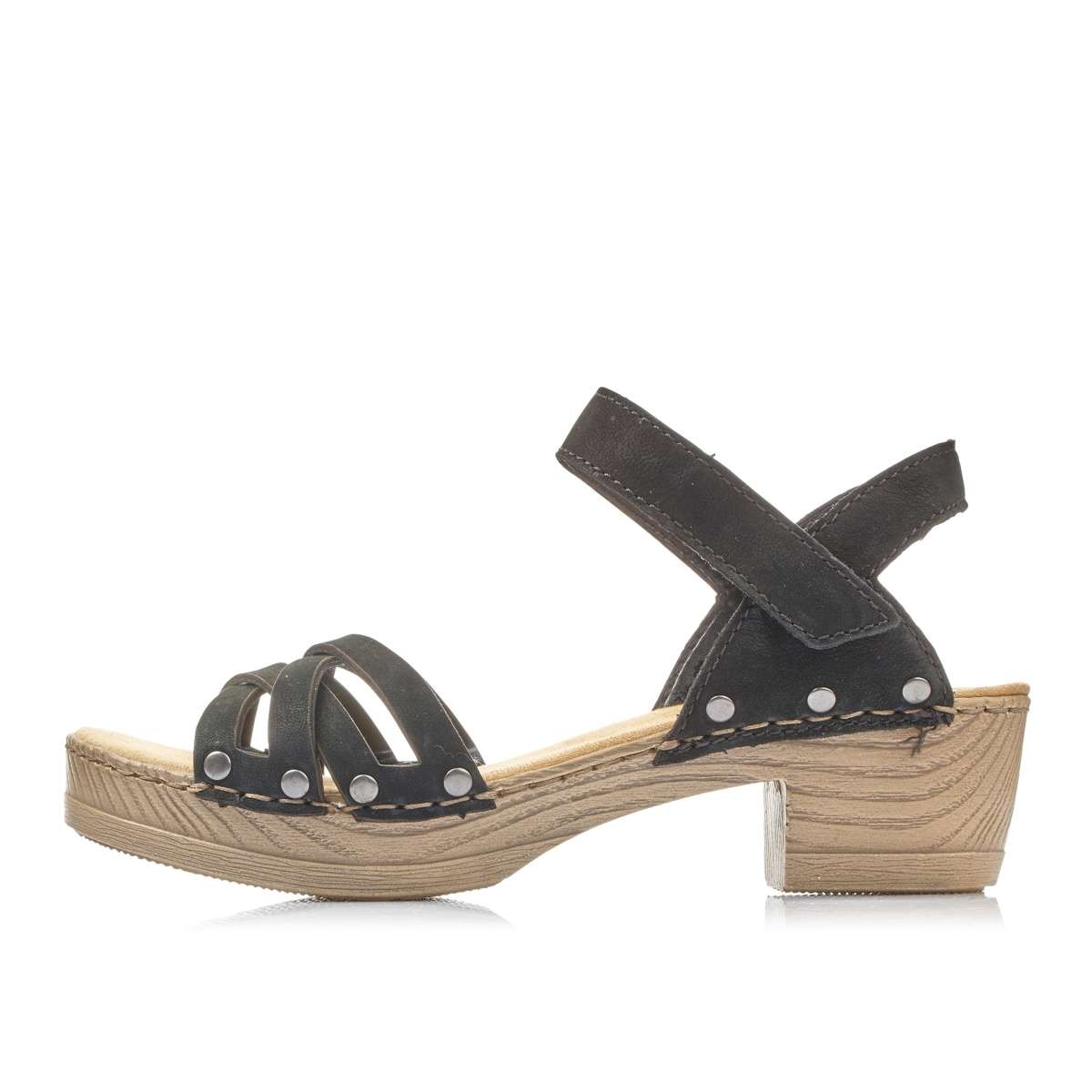 Dámské sandály černé barvy šité z pravé kůže jsou zdobené propletením předních pásků a designem podešve. Pásek kolem paty má suchý zip pro přizpůsobení přímo k Vaší noze. Nízký podpatek a pevná podešev jsou zde pro Vaše pohodlí na každém kroku. Tento model unosíte jak do práce, tak třeba na procházku či koupaliště s dětmi.